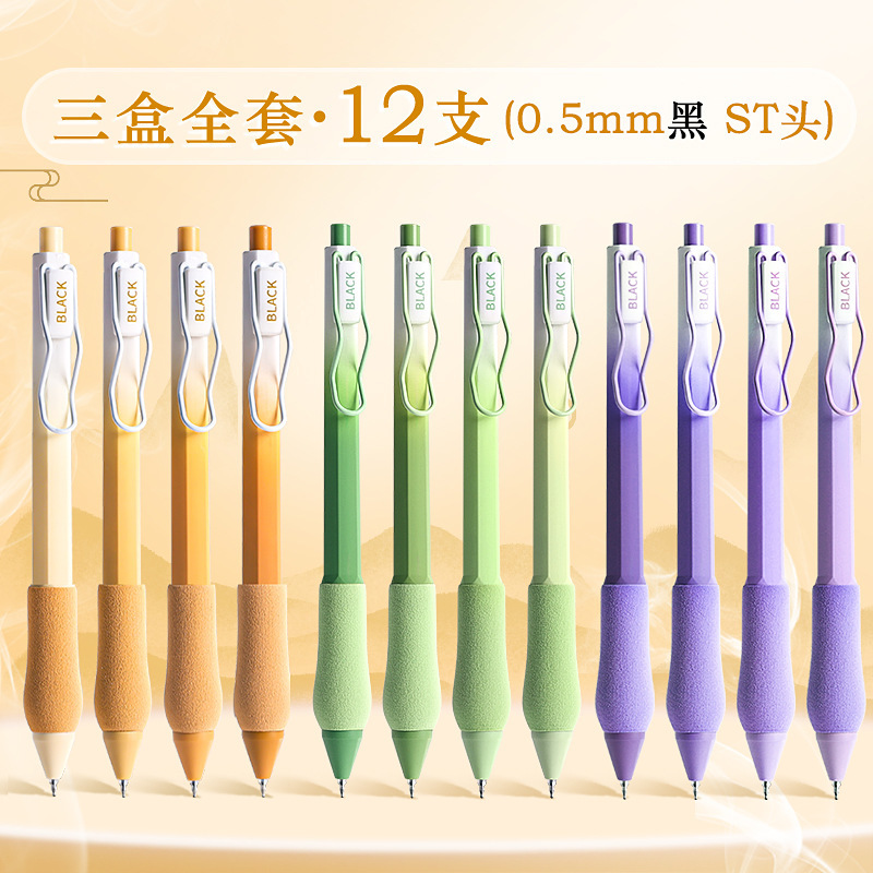 st软握学生按动中性笔笔头考试笔欧包刷题专用低高颜值重心速干