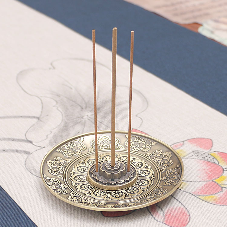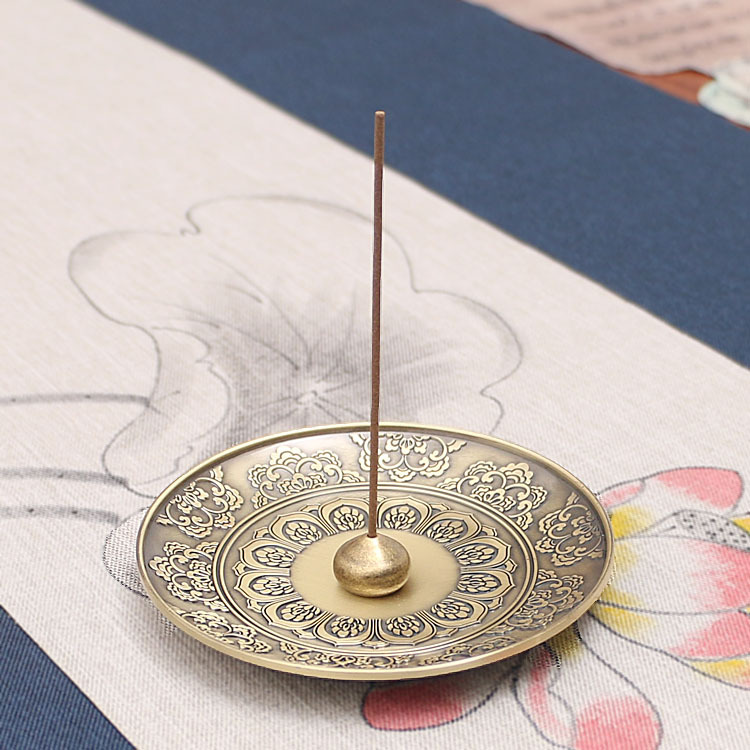 禅意莲花香插香盘香座中式仿古铜香炉插香古典龙凤熏香炉线香插托