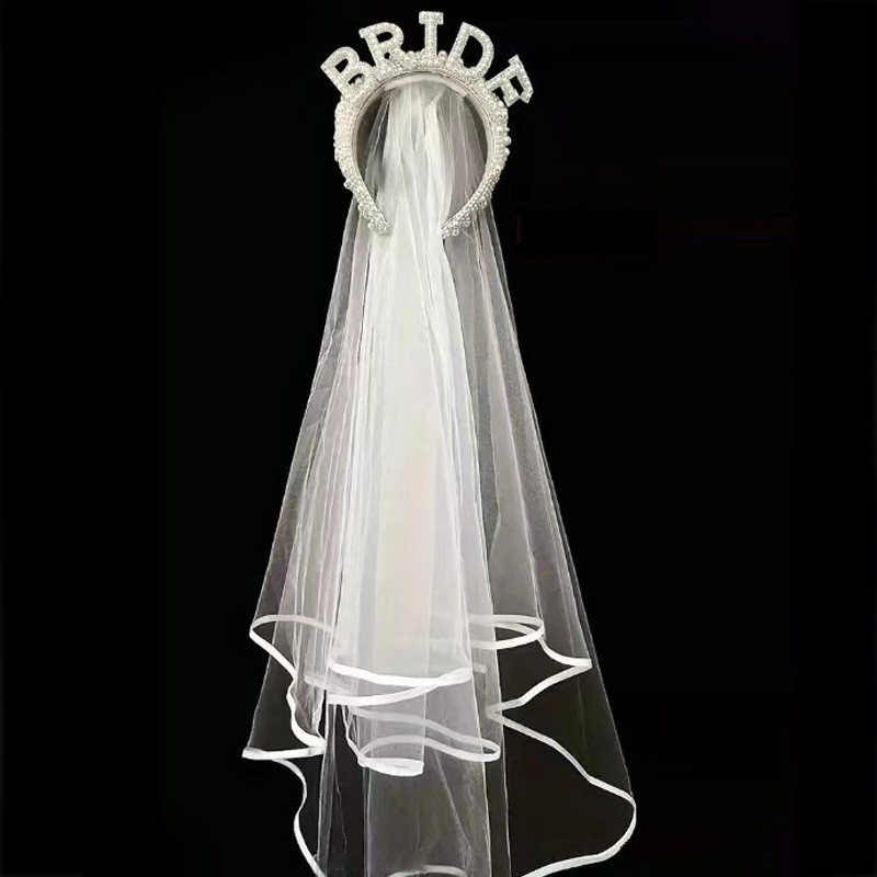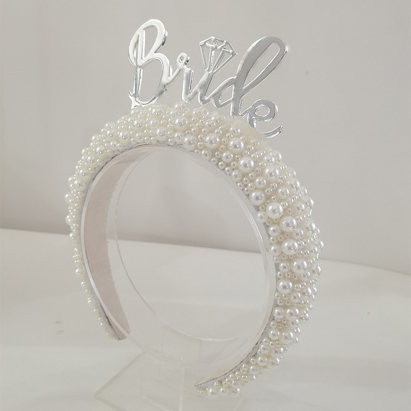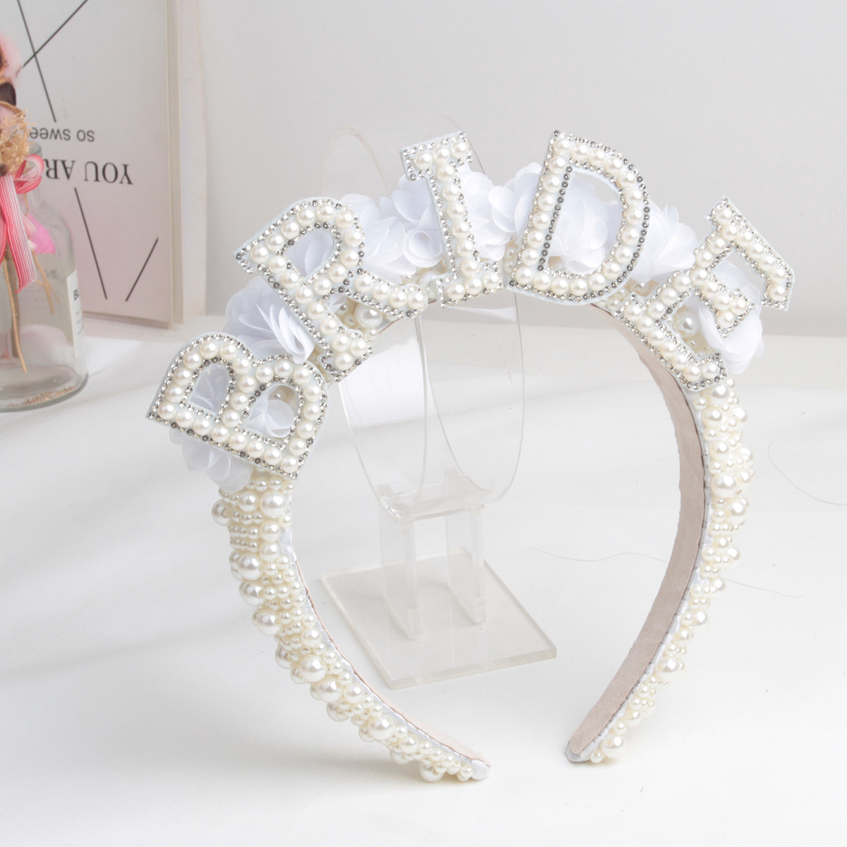 新款跨境亚马逊欧美bride珍珠发箍新婚派对字母皇冠头箍批发