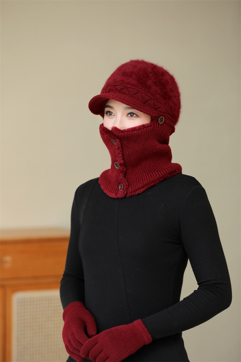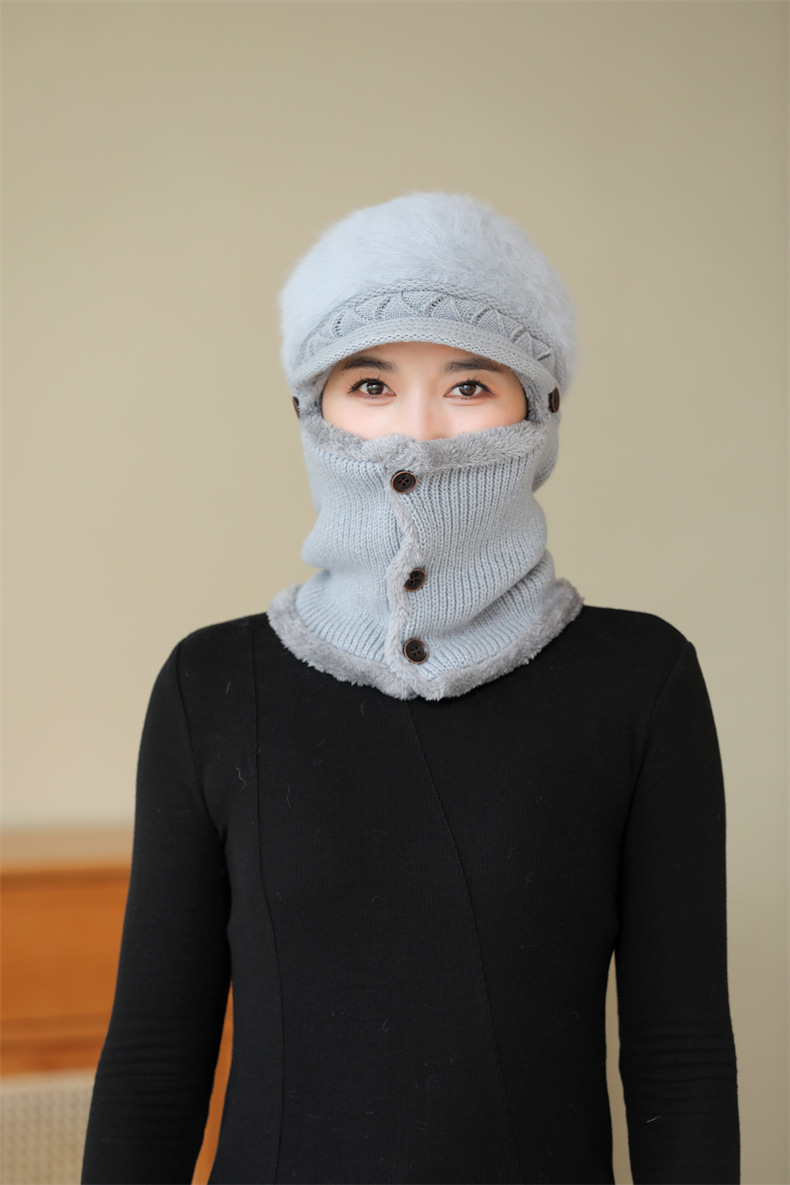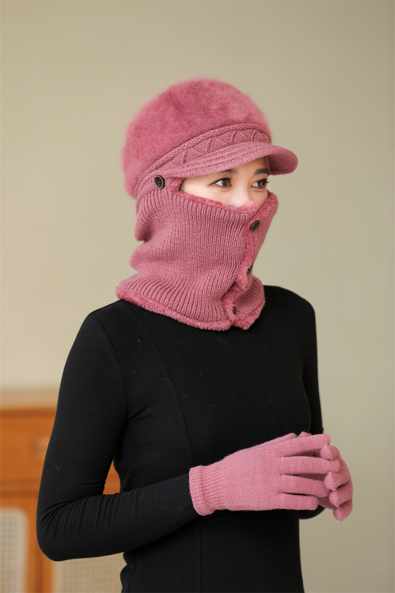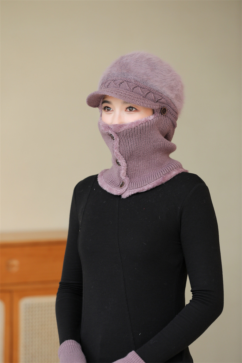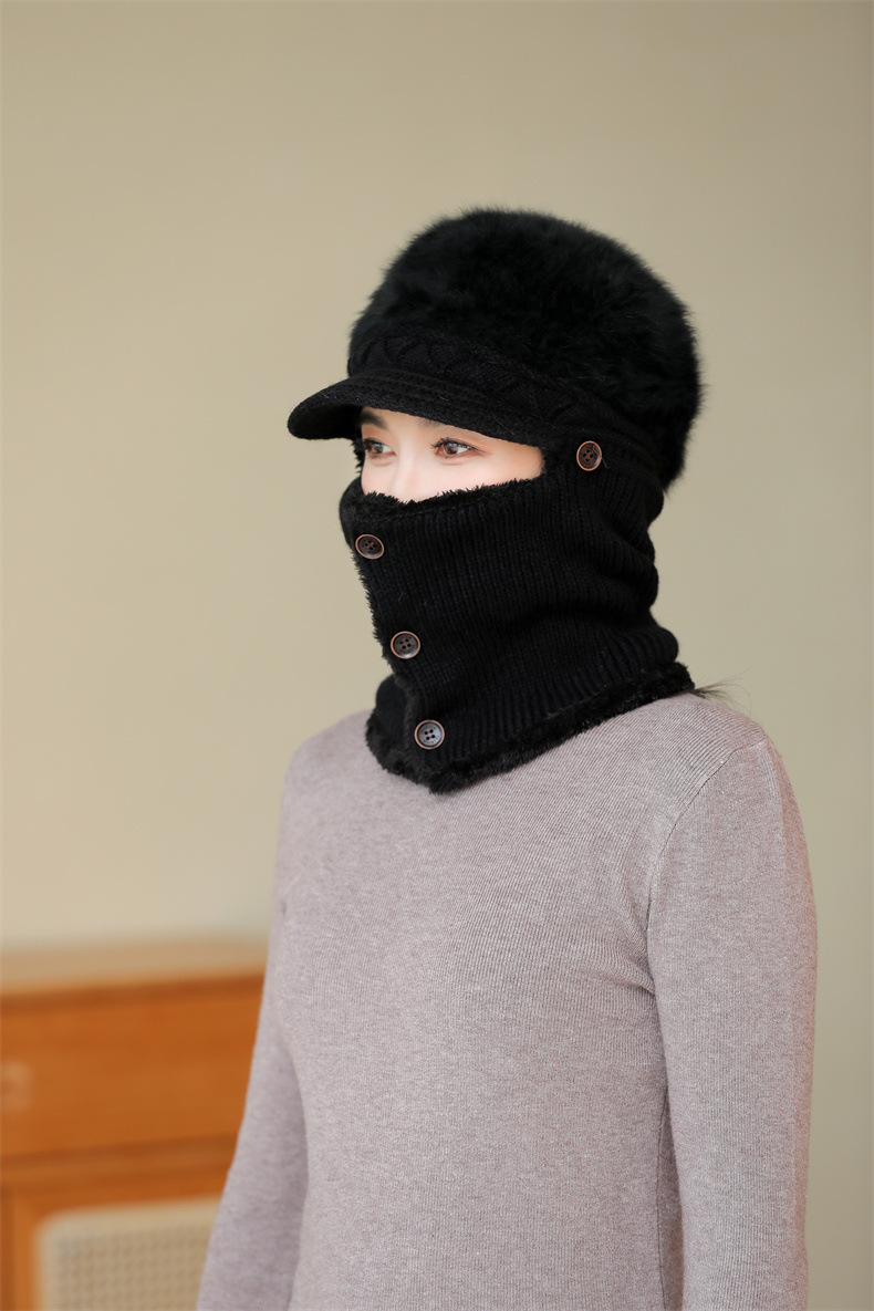 加绒围脖一体鸭舌帽子女士妈妈时尚保暖兔毛线针织连体帽中老年帽