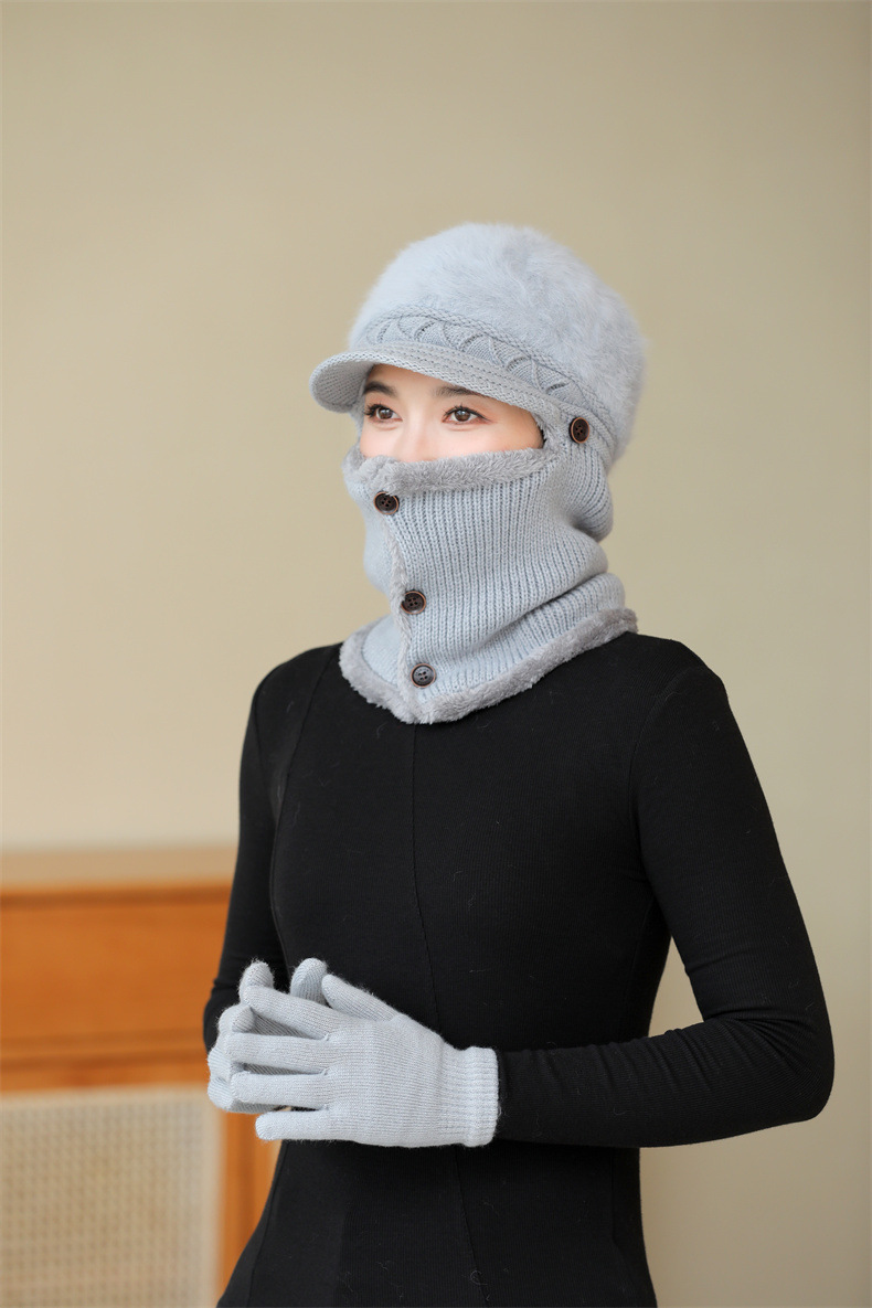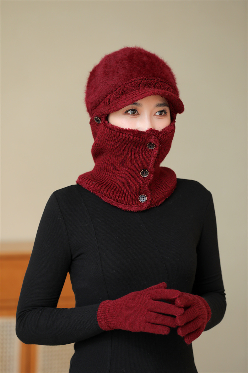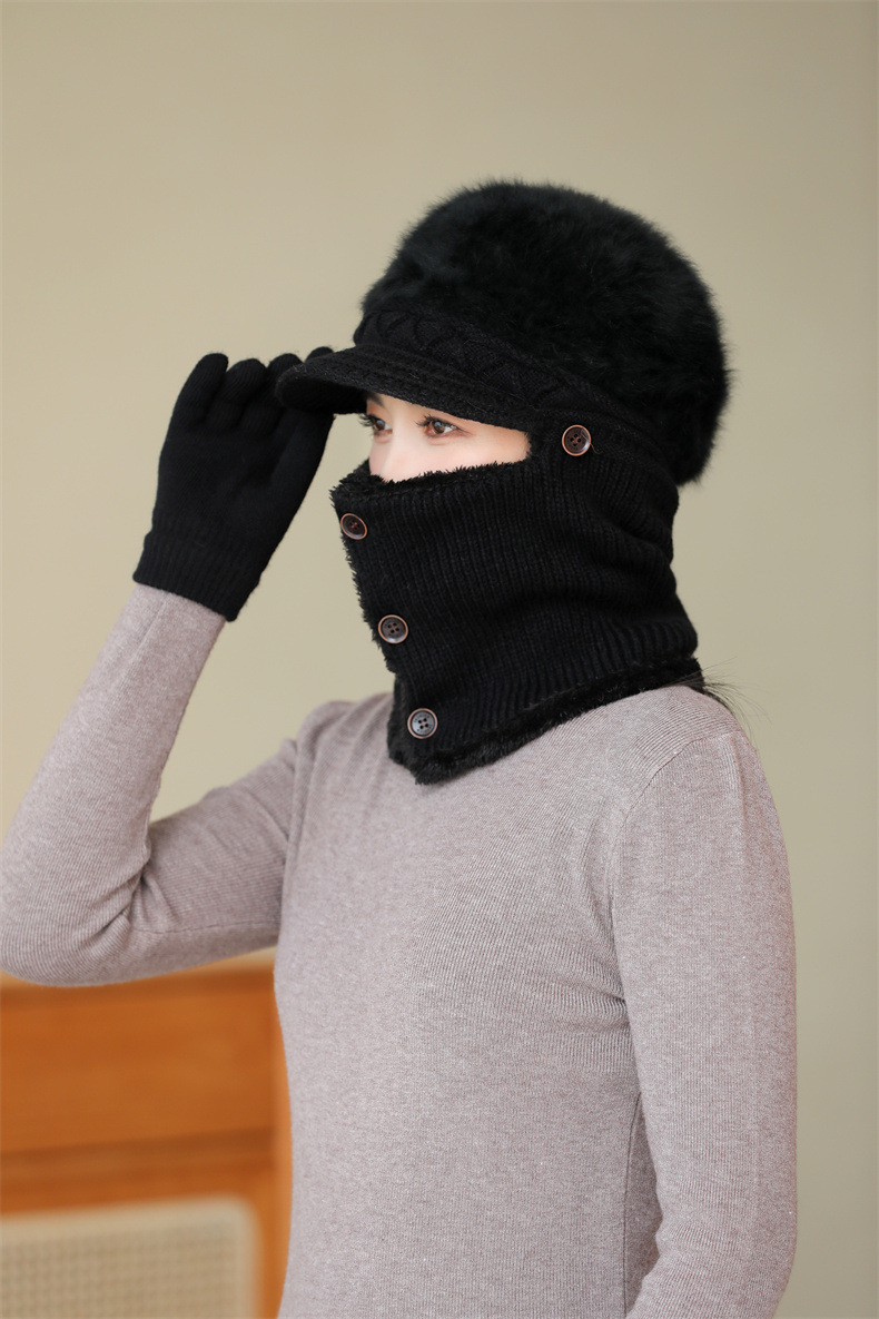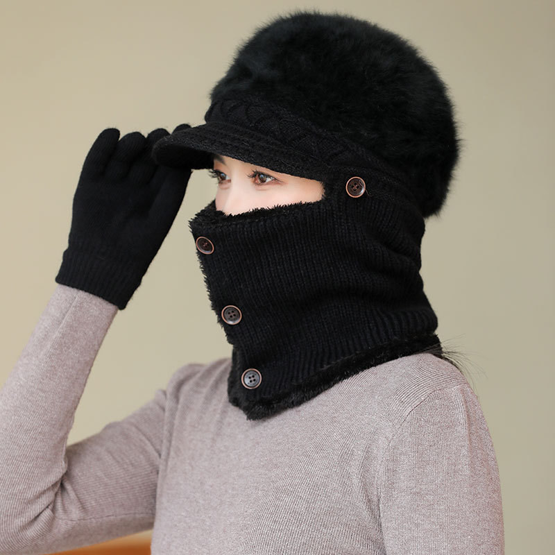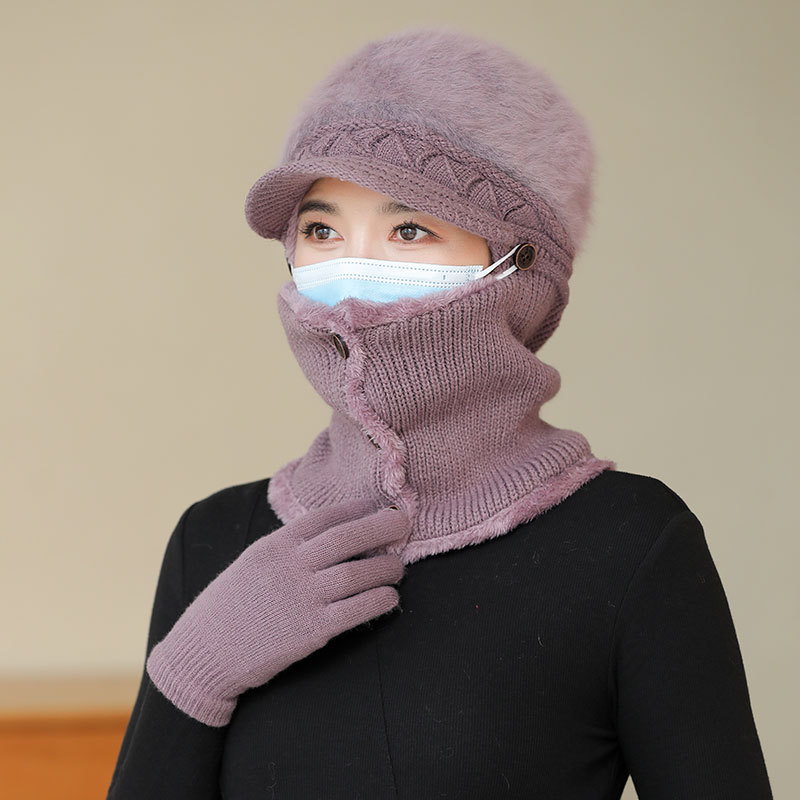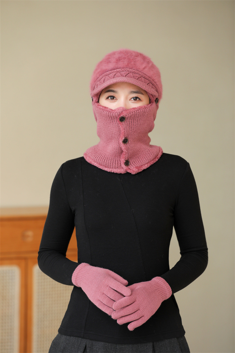 加绒围脖一体鸭舌帽子女士妈妈时尚保暖兔毛线针织连体帽中老年帽