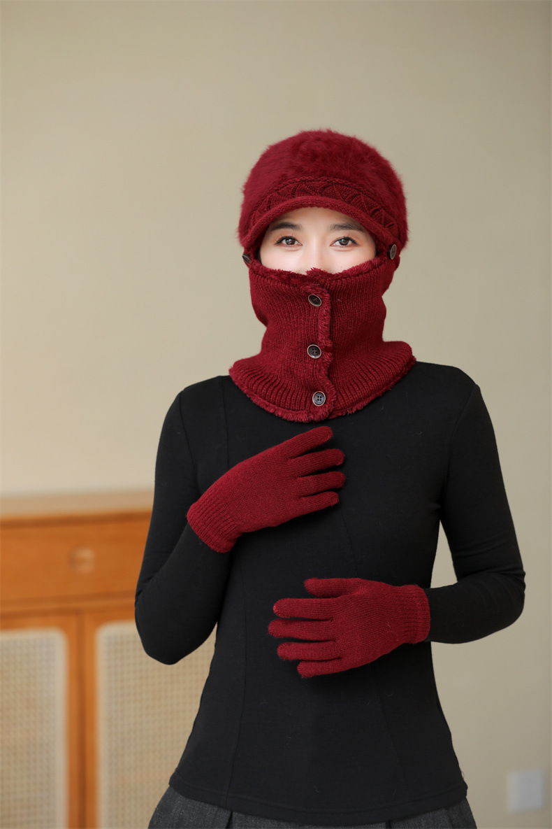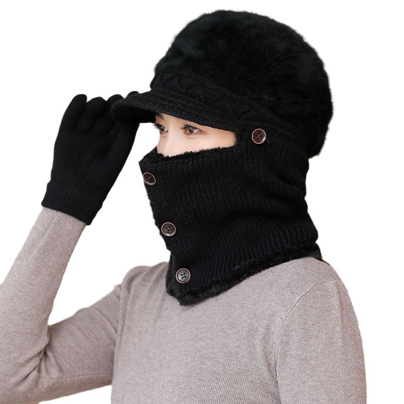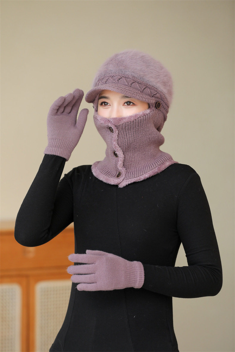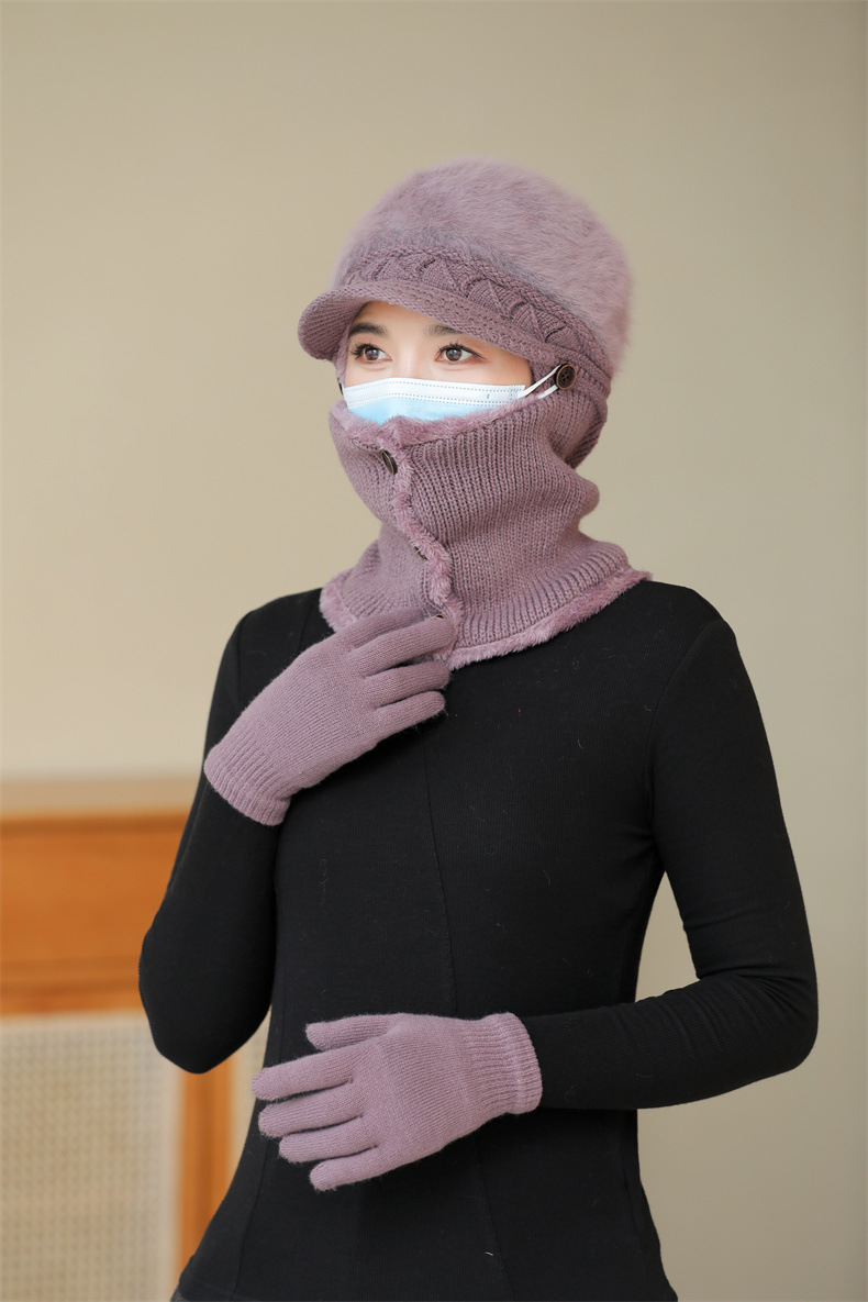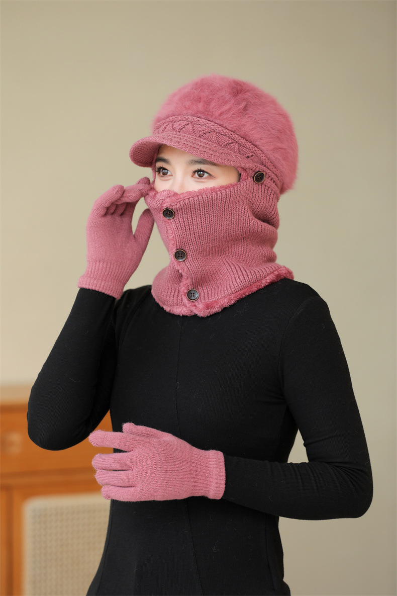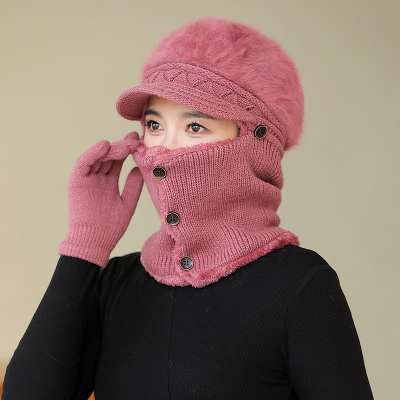 加绒围脖一体鸭舌帽子女士妈妈时尚保暖兔毛线针织连体帽中老年帽