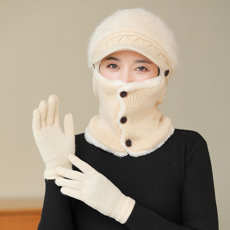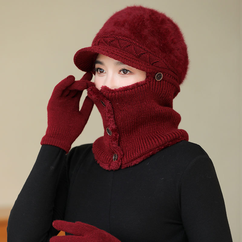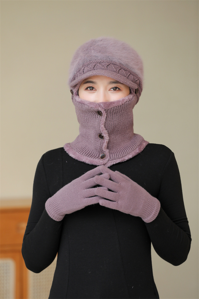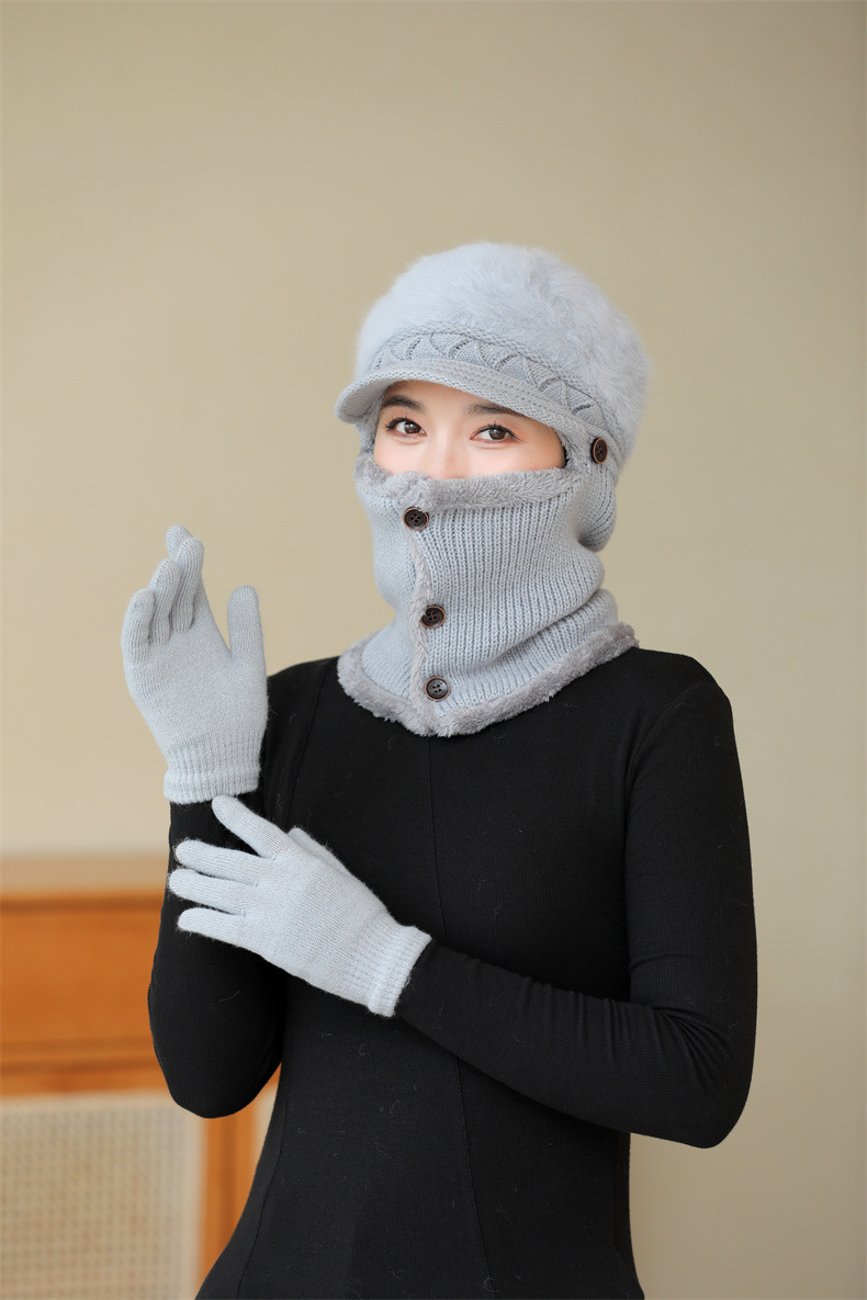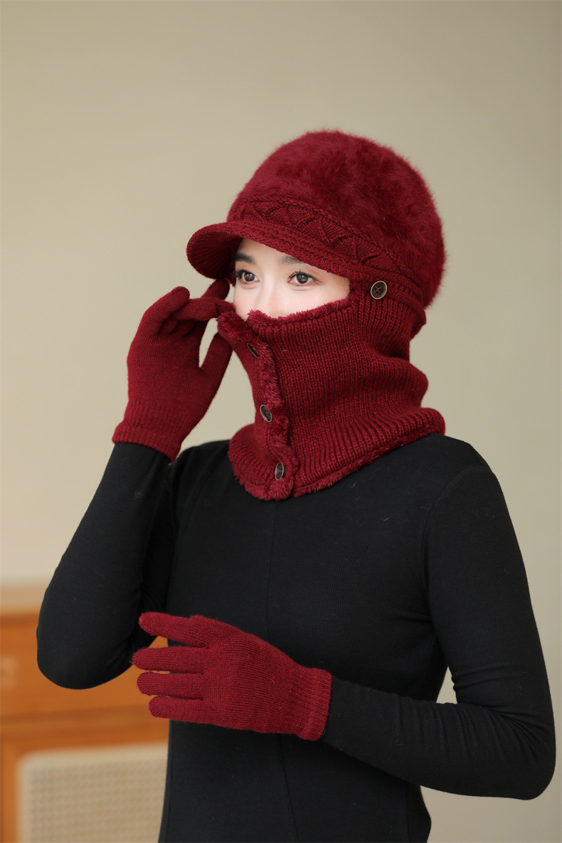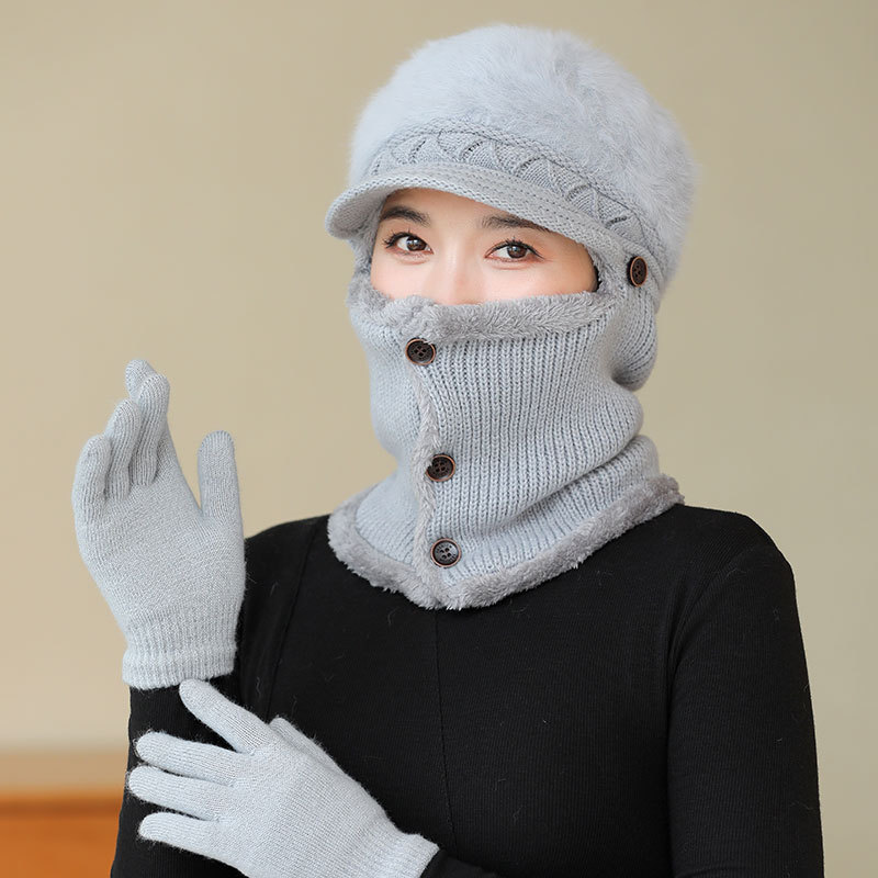 加绒围脖一体鸭舌帽子女士妈妈时尚保暖兔毛线针织连体帽中老年帽