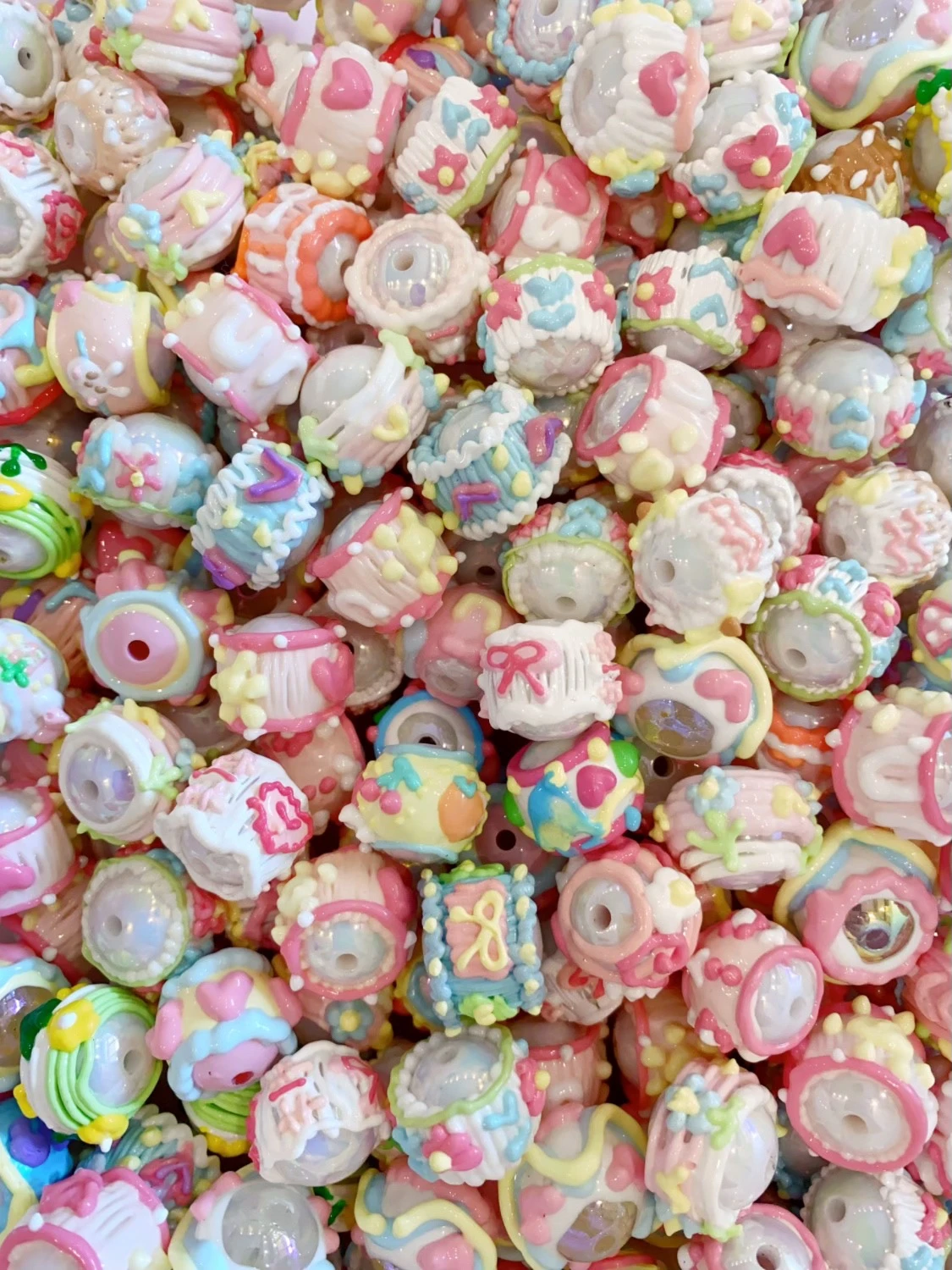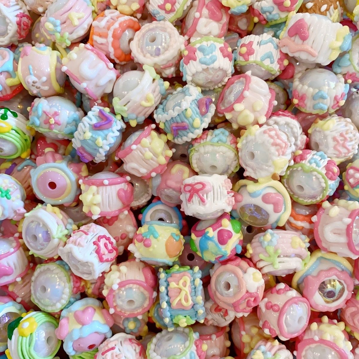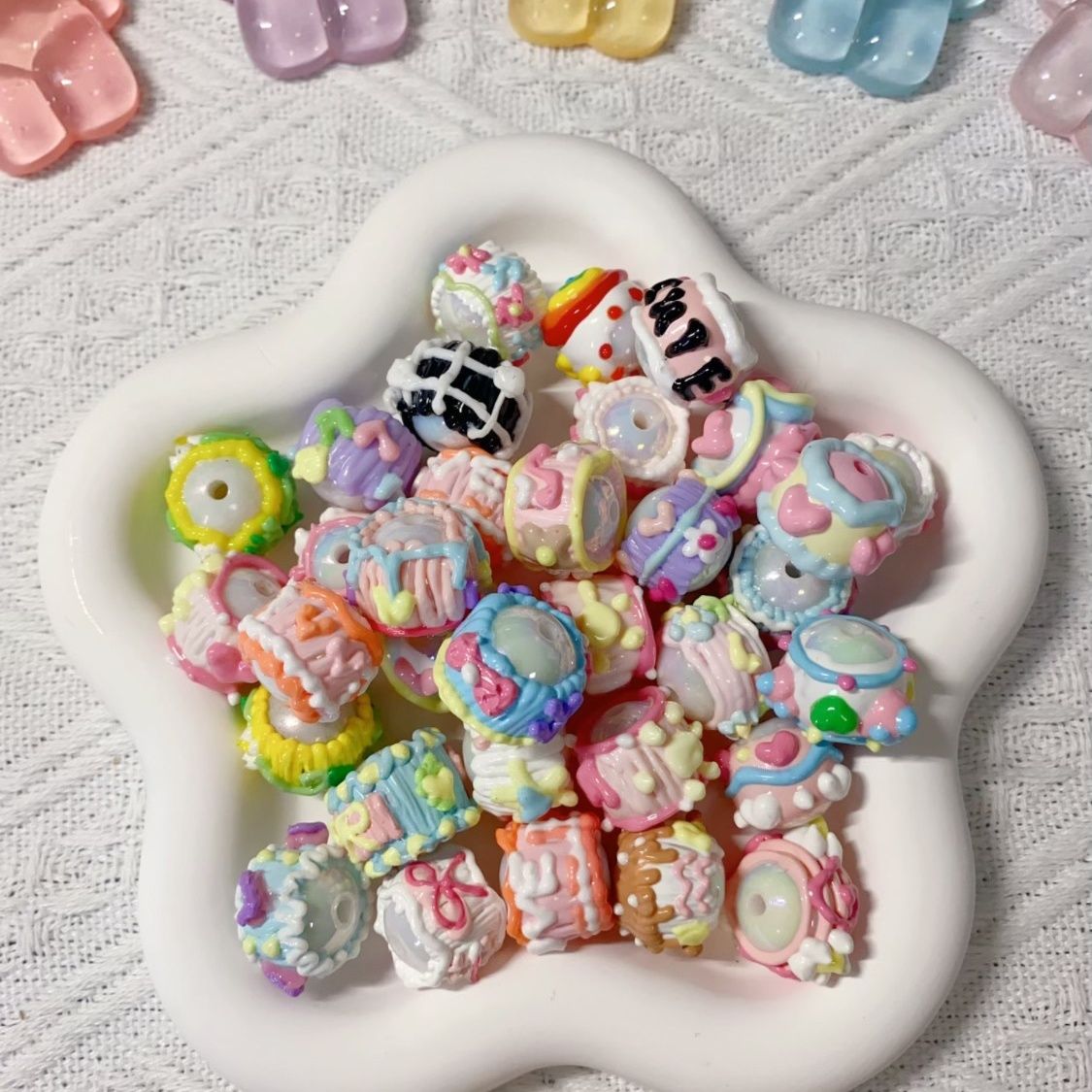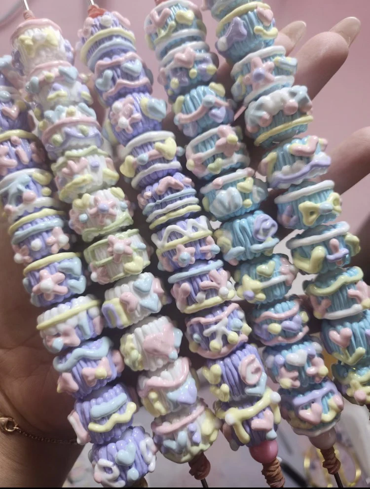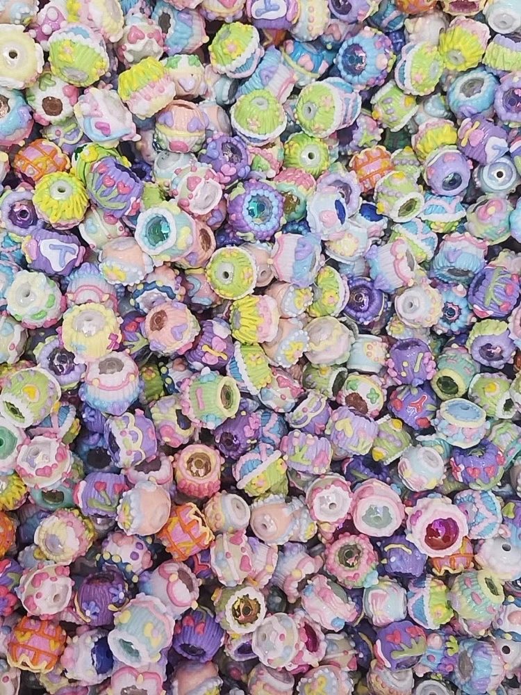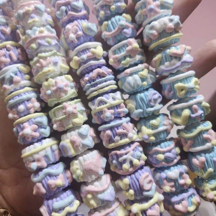 油画风手绘珠满圈马卡龙手绘珠重工手机链混装DIY串珠材料可爱