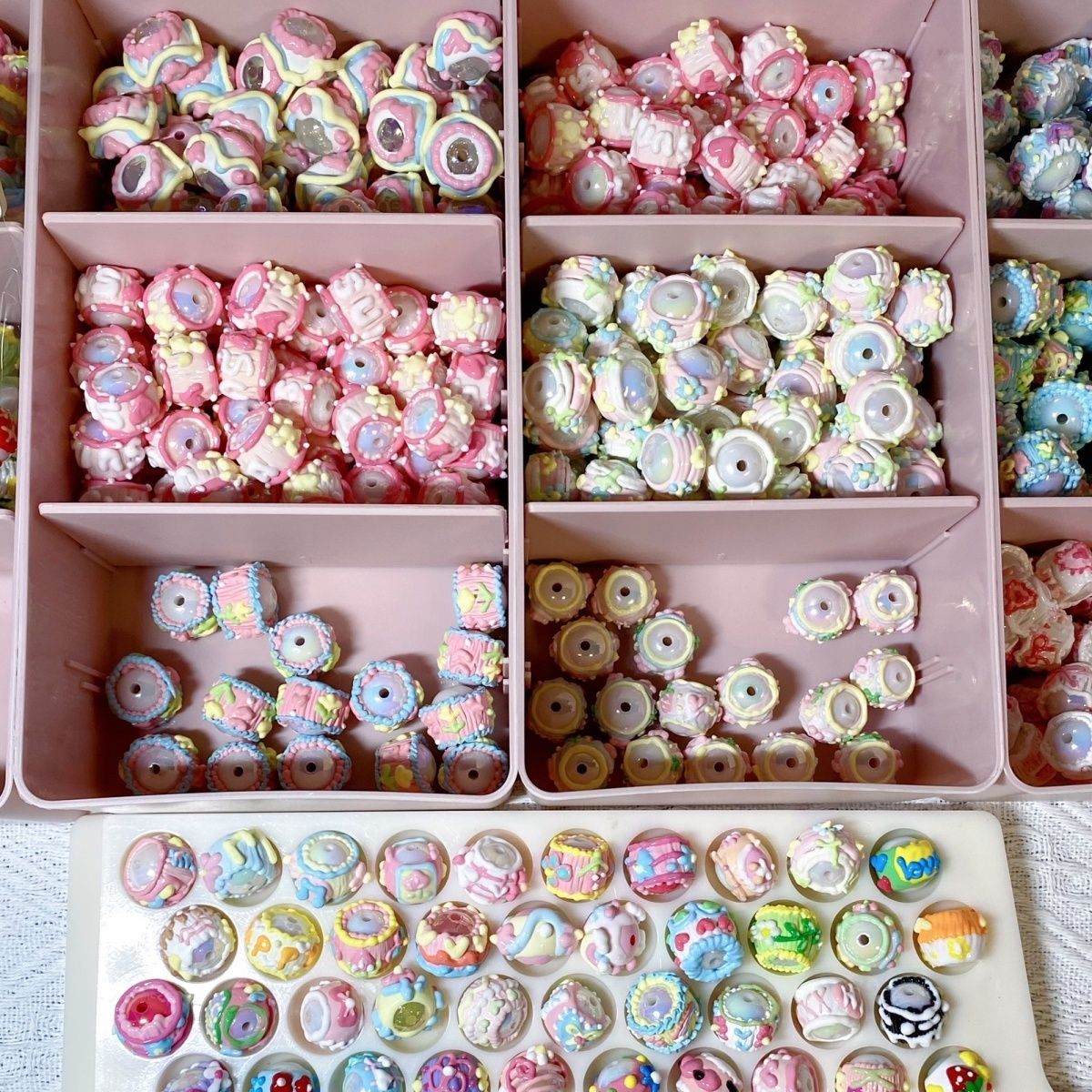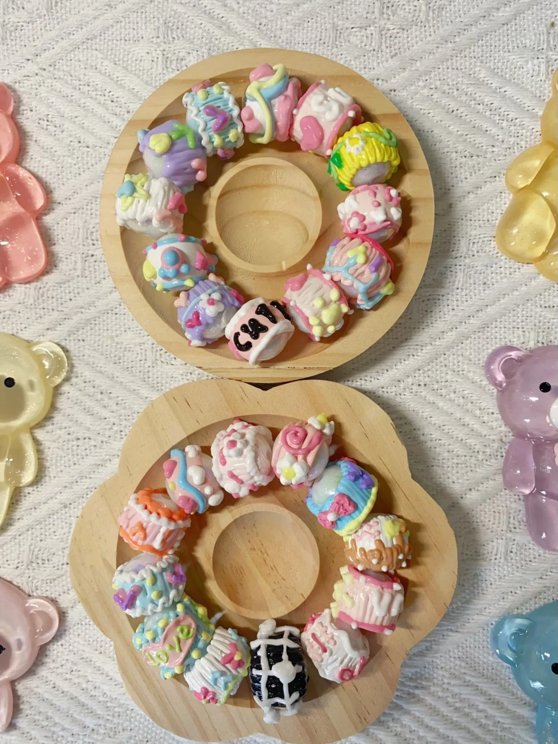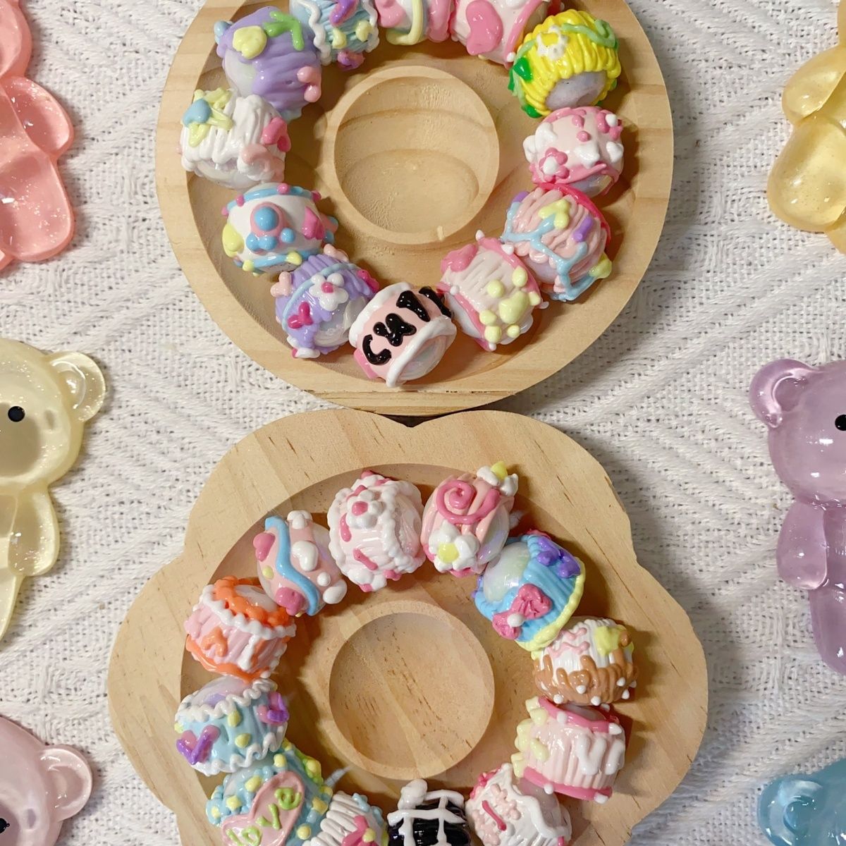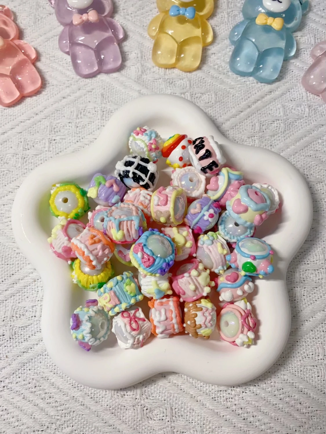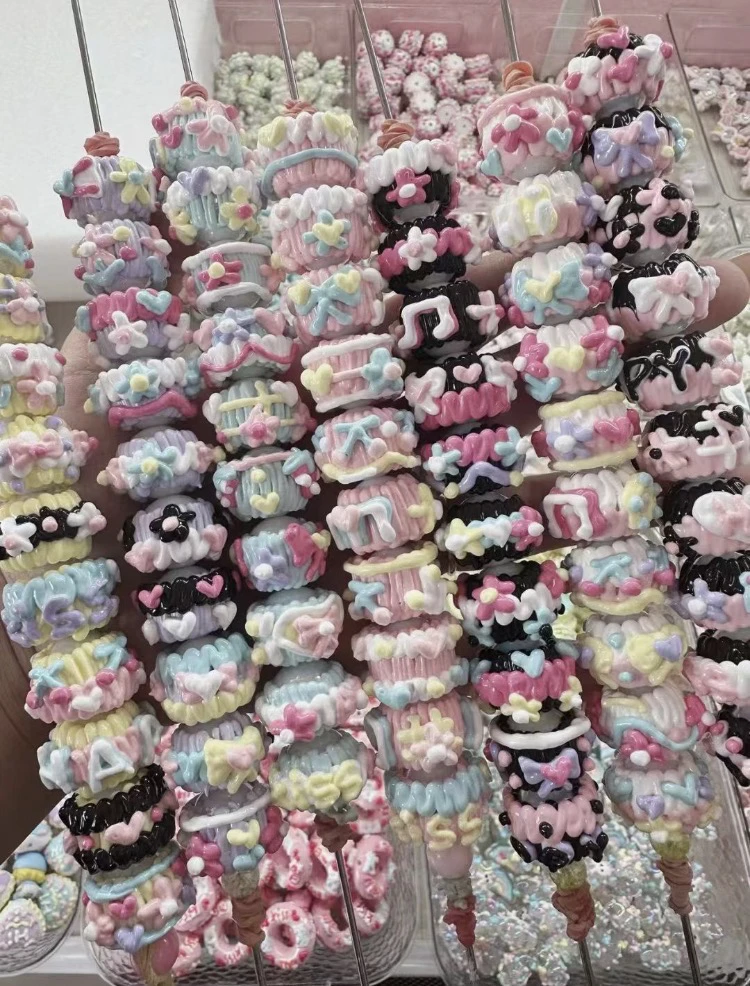 油画风手绘珠满圈马卡龙手绘珠重工手机链混装DIY串珠材料可爱