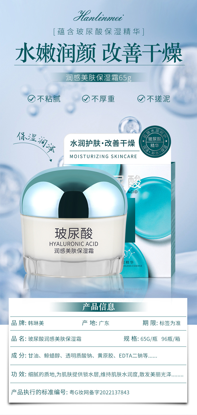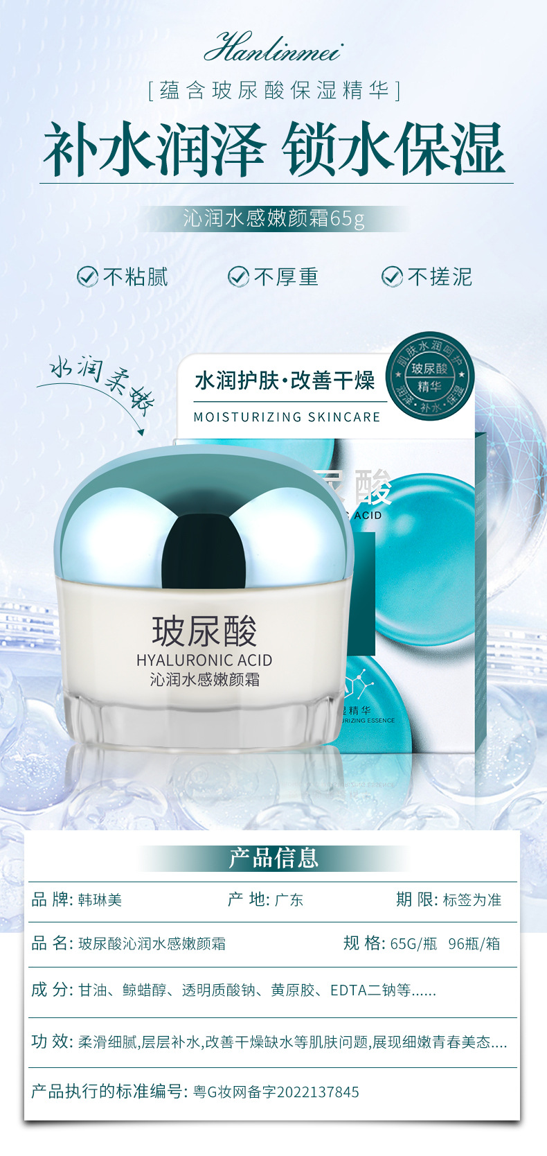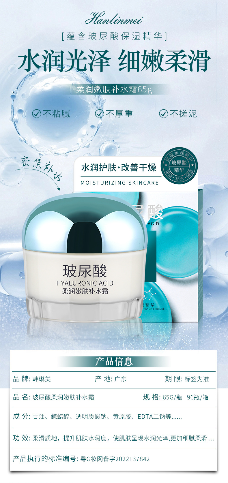 玻尿酸面霜高保湿补水水润护肤改善干燥面部护肤秋冬正品面霜