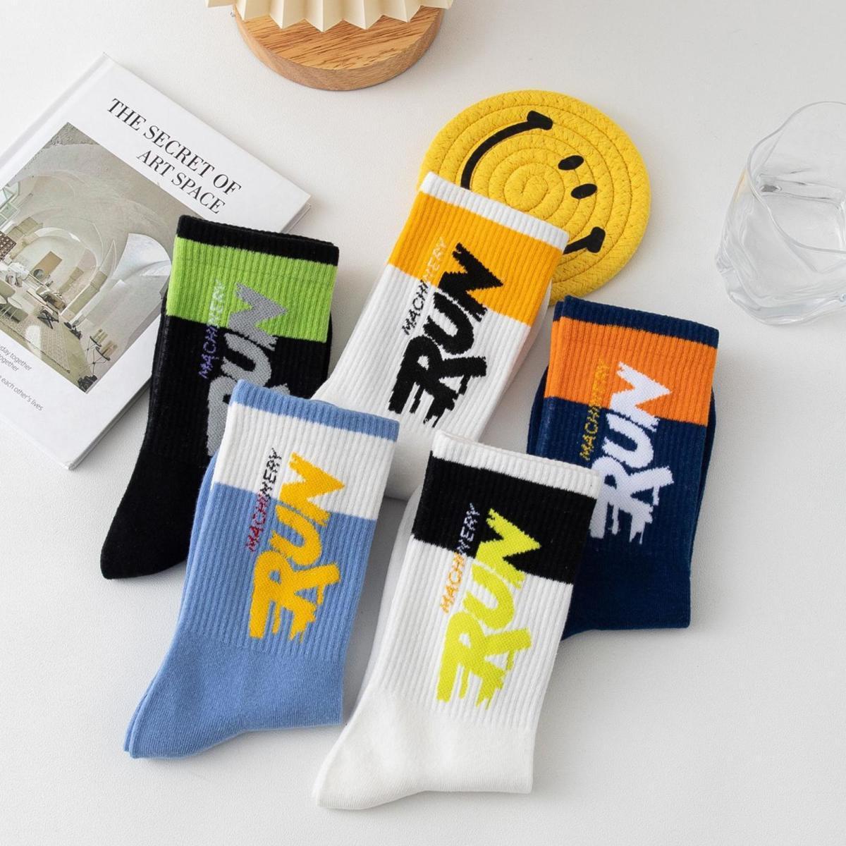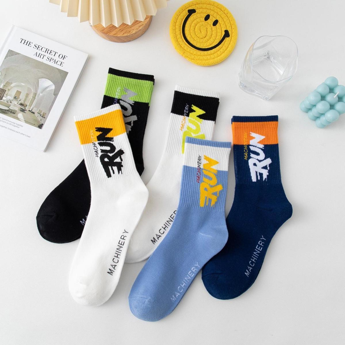 【5双装】袜子男士中筒运动潮袜吸汗透气青少年篮球袜春夏长筒袜