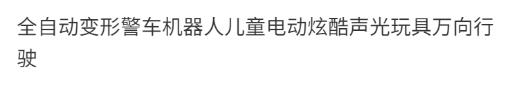 | automatic deformation police car (ordinary battery)(自动变形警车(普通电池)) | USD $7.17 | 99999 piece available |