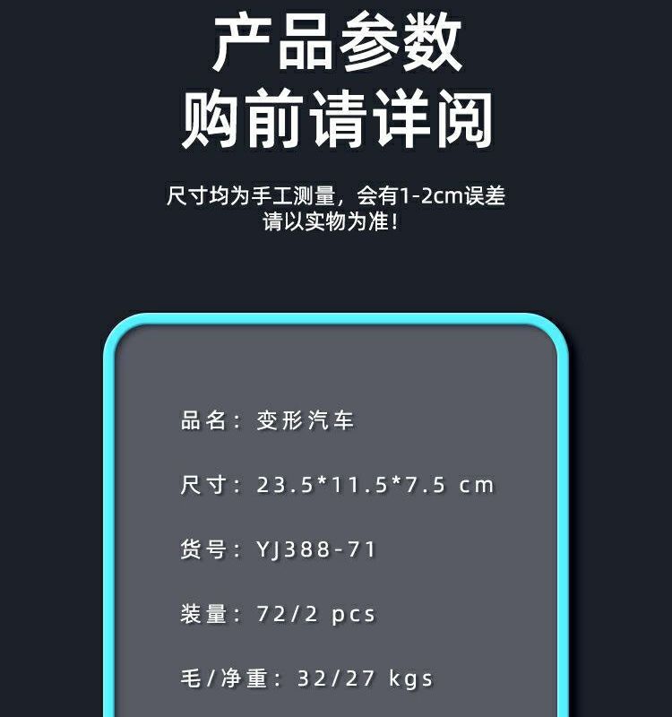 | automatic deformation police car (rechargeable battery)(自动变形警车(充电电池)) | USD $9.01 | 99999 piece available |