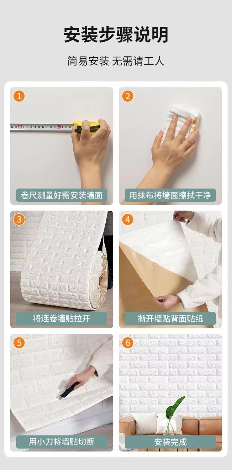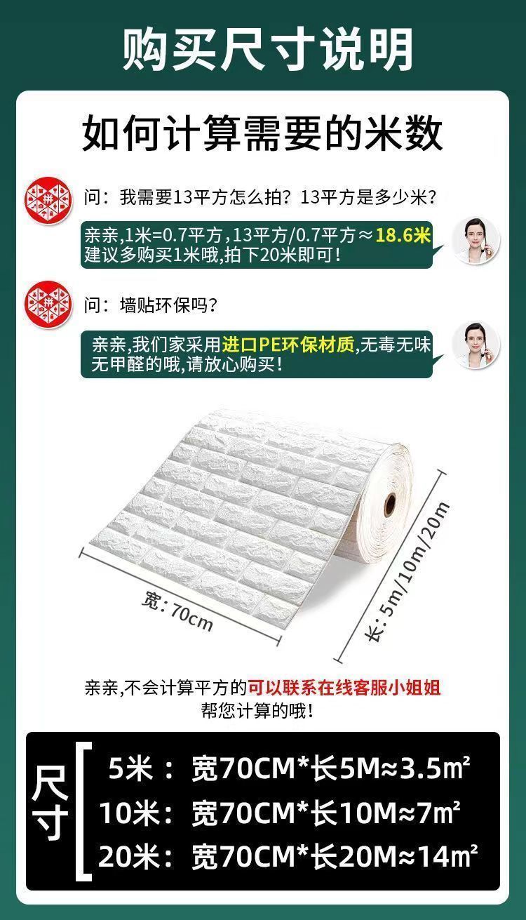 墙纸自粘3d立体墙贴卧室温馨装饰背景墙面壁纸泡沫砖防水防潮贴纸