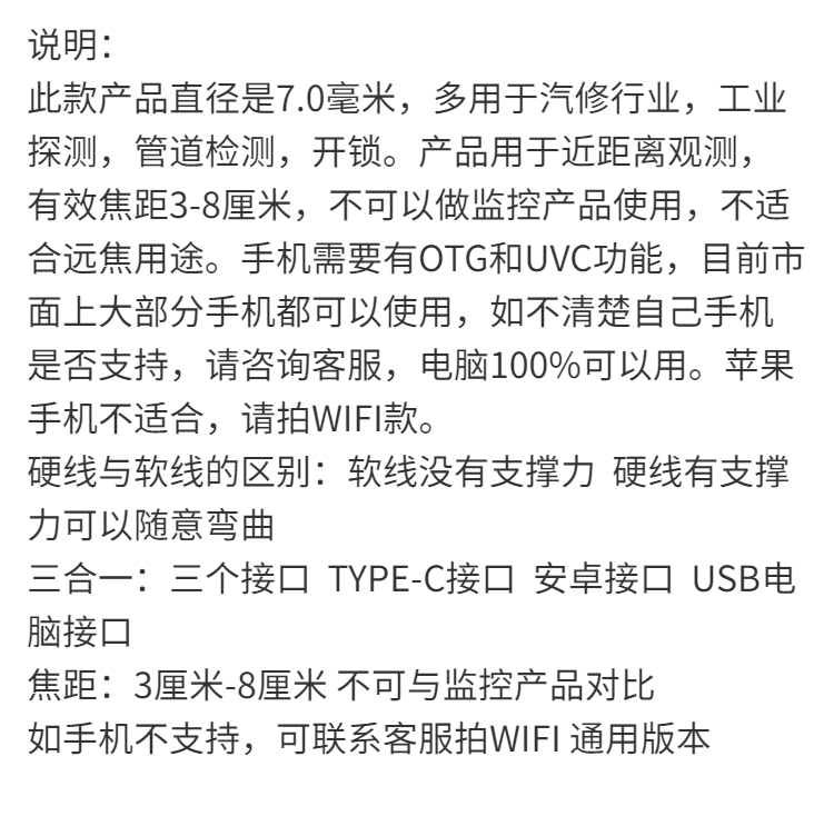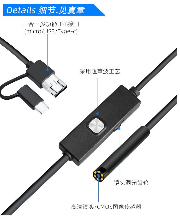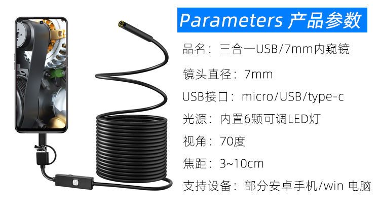 高清内窥镜探测汽车维修管道摄像头检测口腔检修可视神器