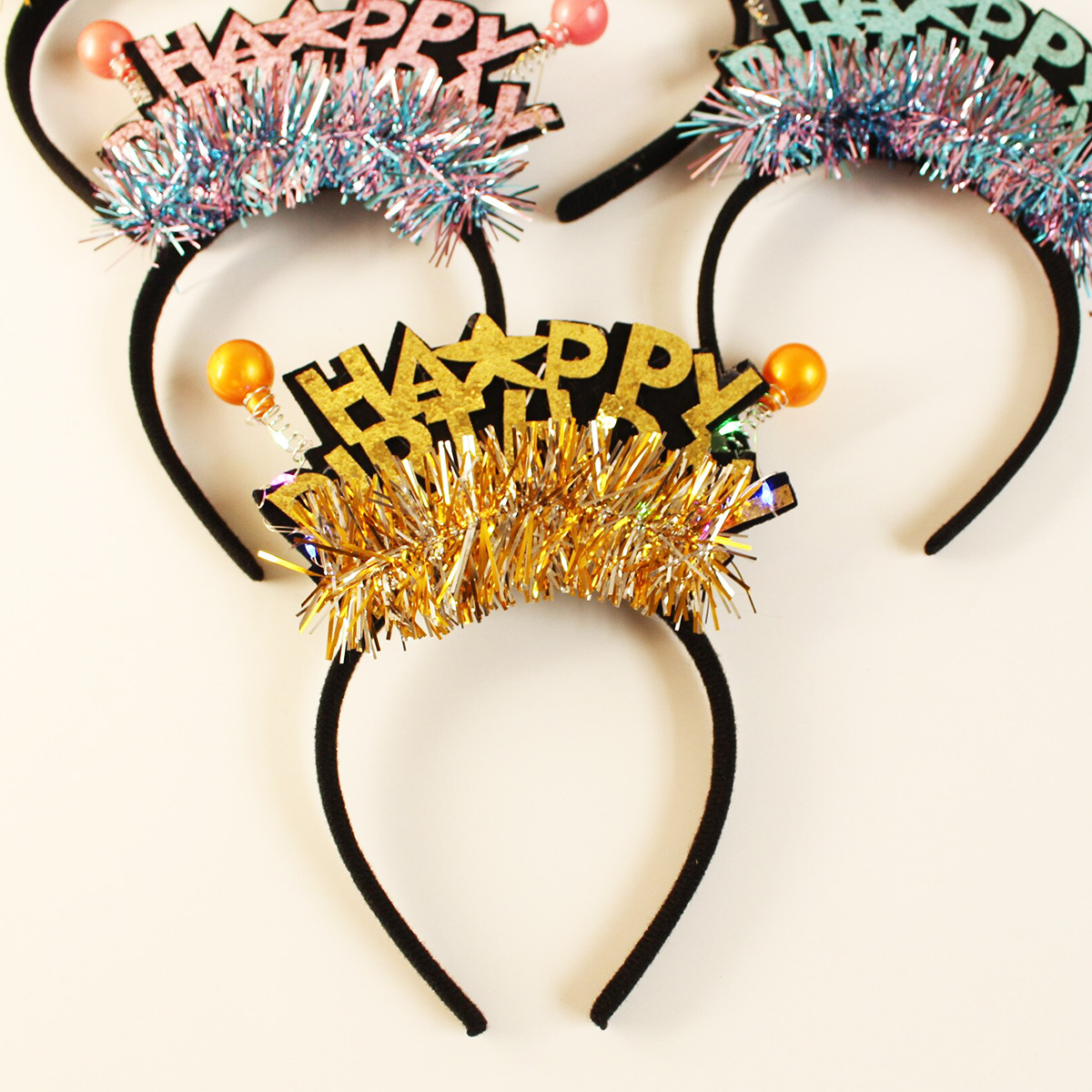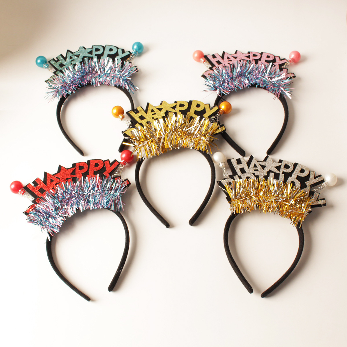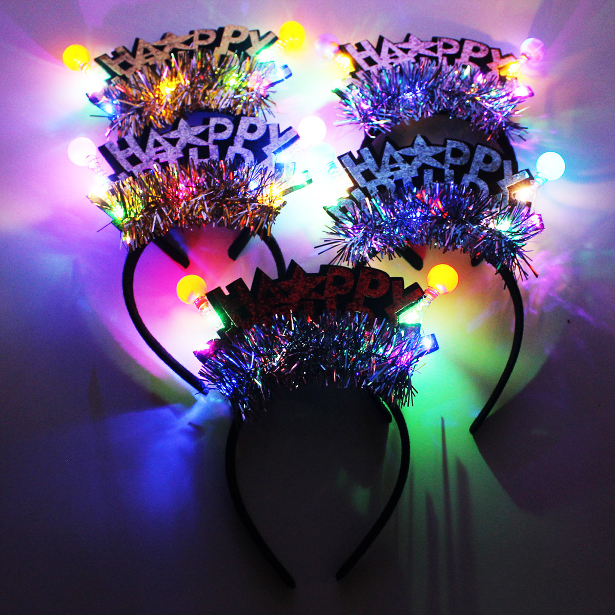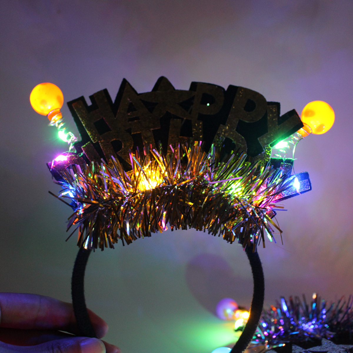 新款会发光的雨丝亮片头箍儿童成人派对聚会装饰生日英文字母发箍