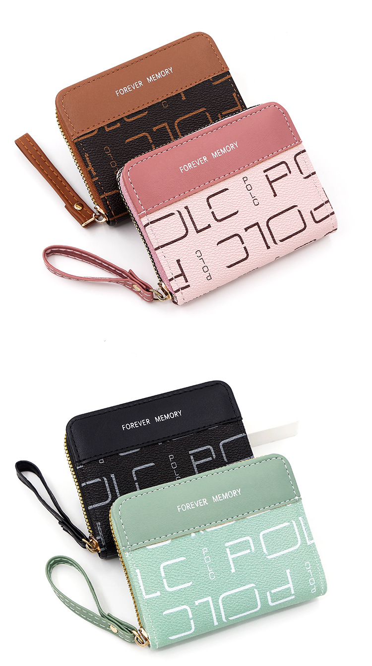 时尚女士多功能拉链包便携式大容量字母图案复古拼色多款零钱包