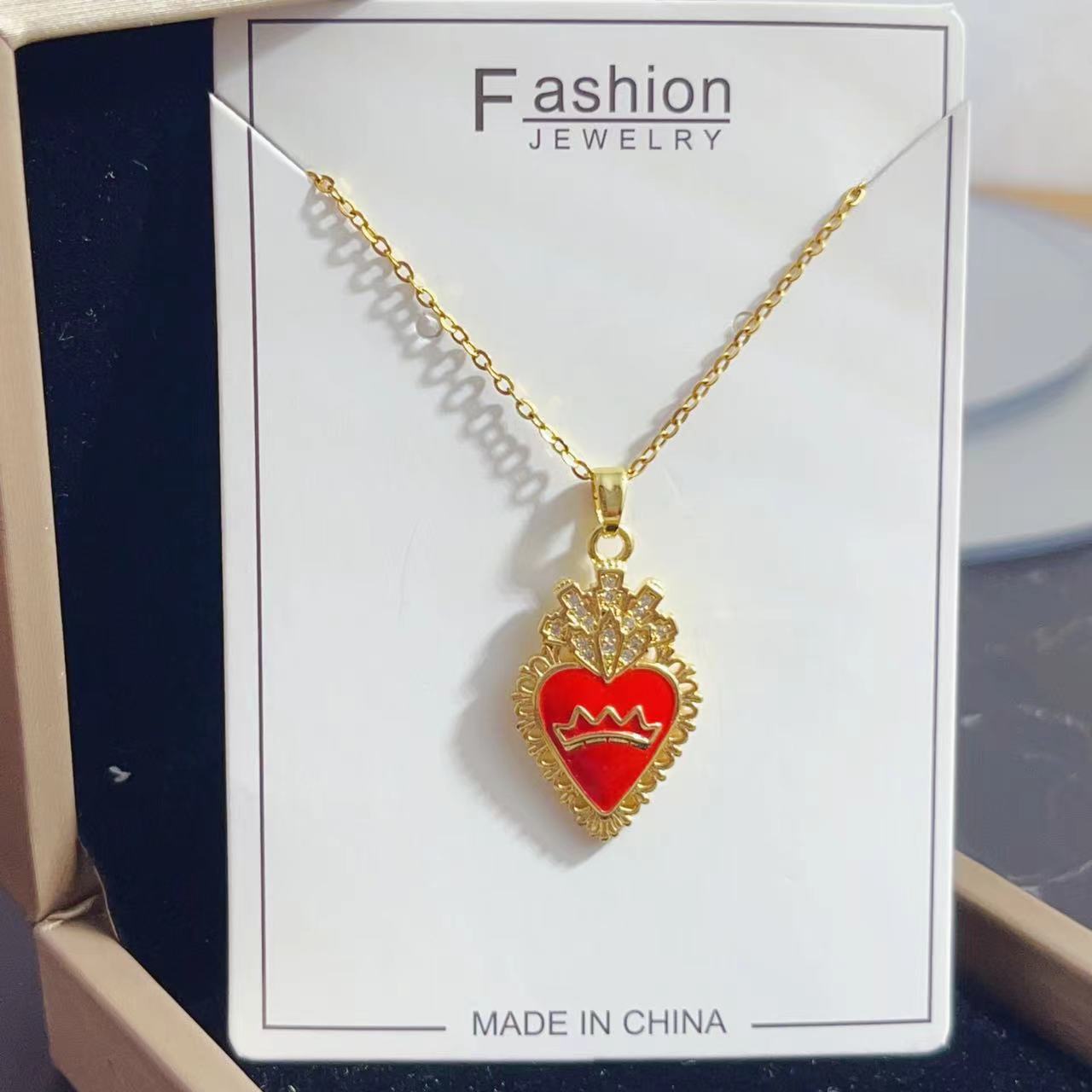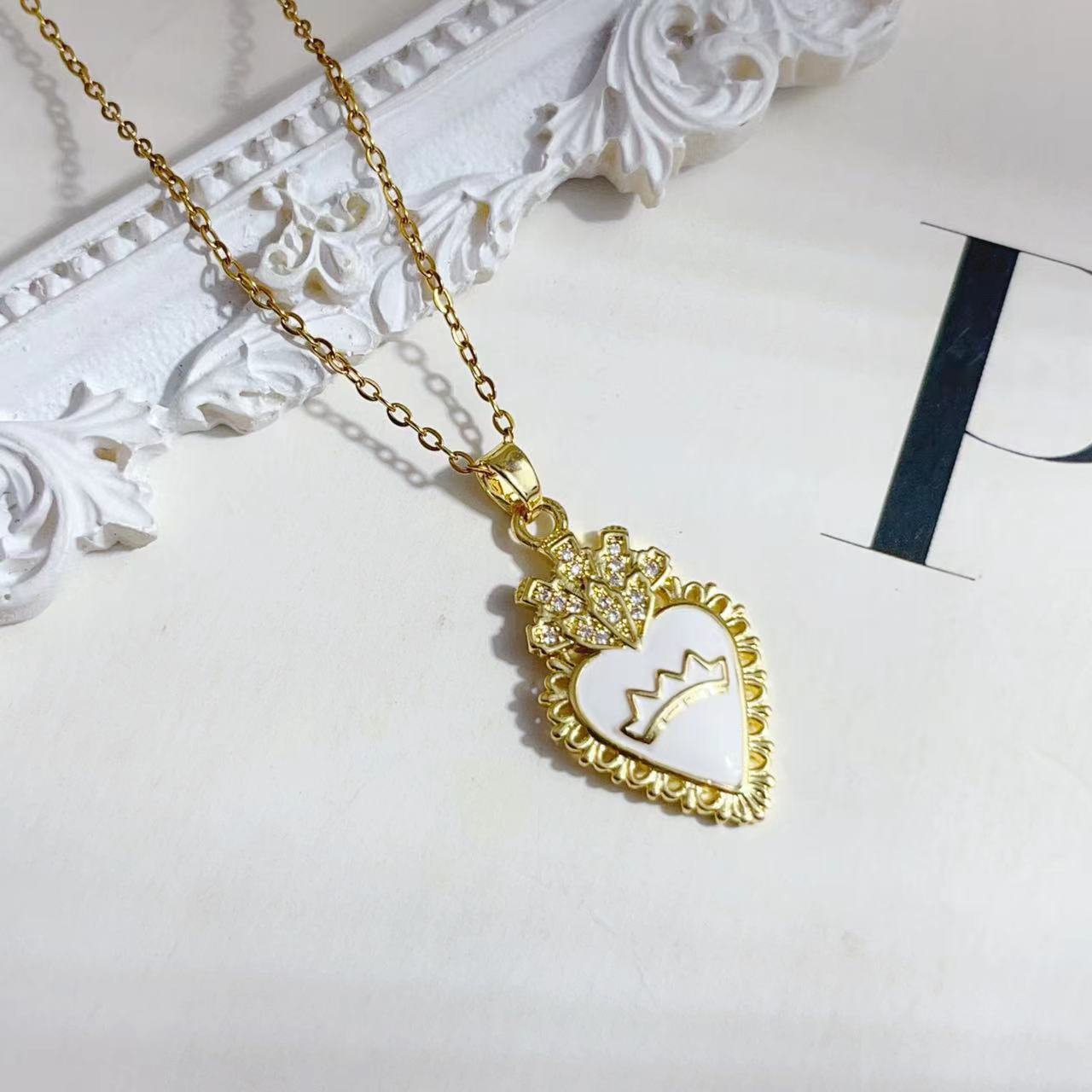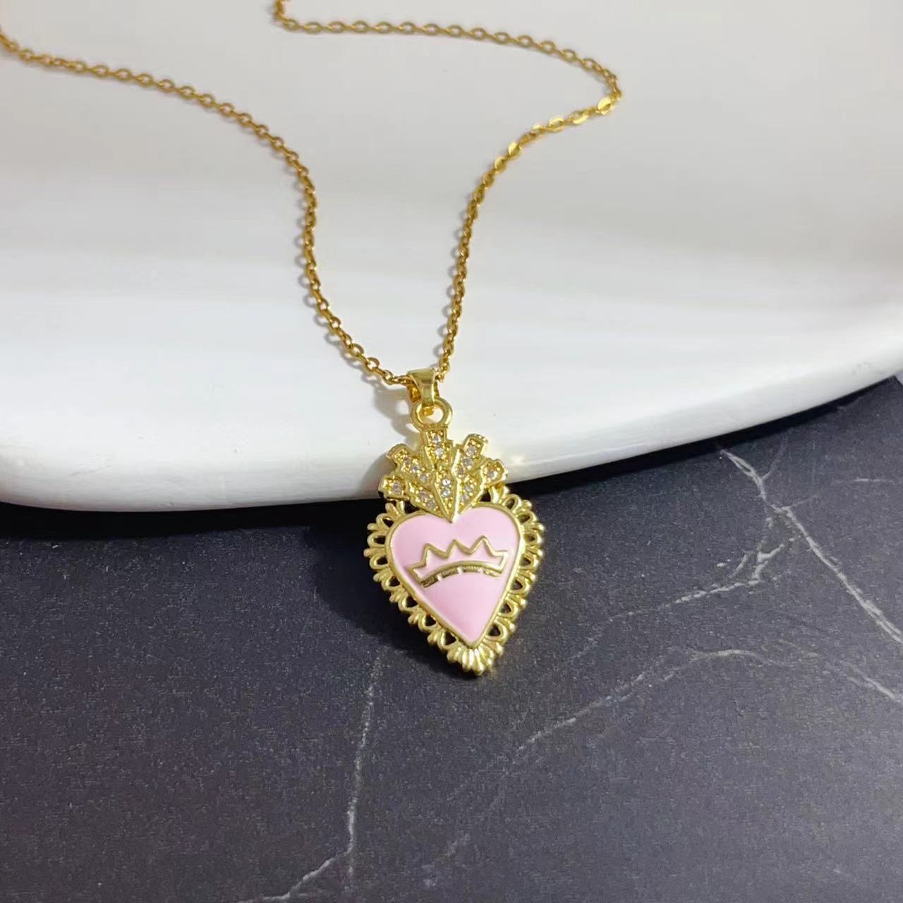 欧美爱心铜镀真金皇冠项链女小众高级感时尚百搭滴油桃心项链女