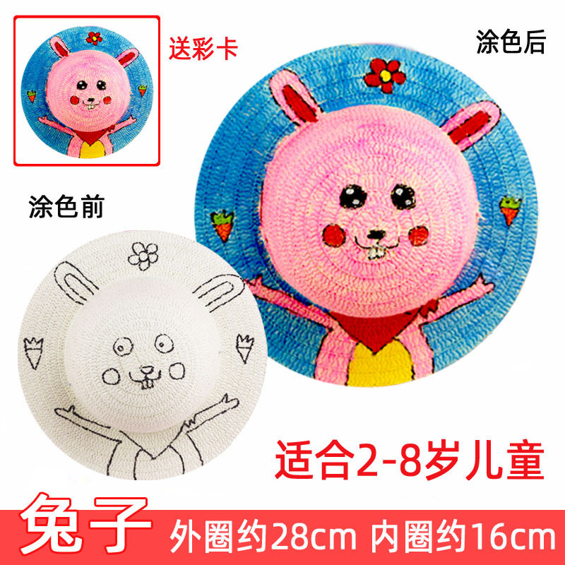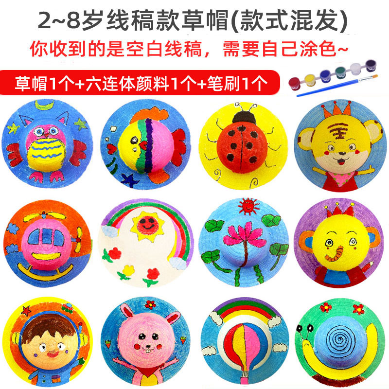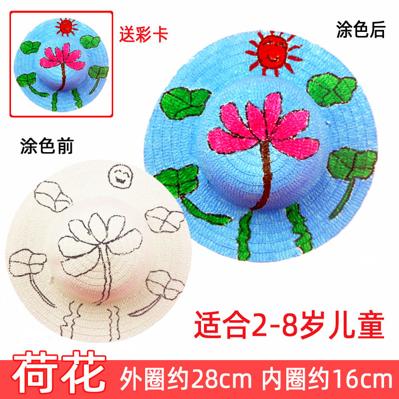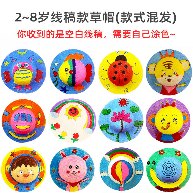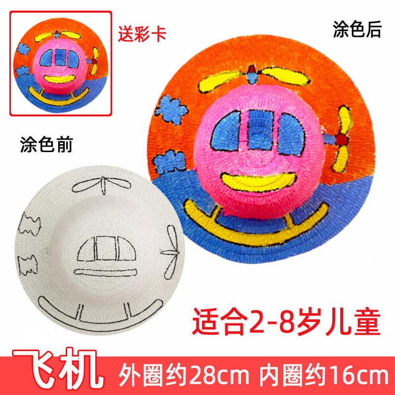 儿童绘画草帽diy手工幼儿园亲子活动创意美术手绘涂鸦帽子