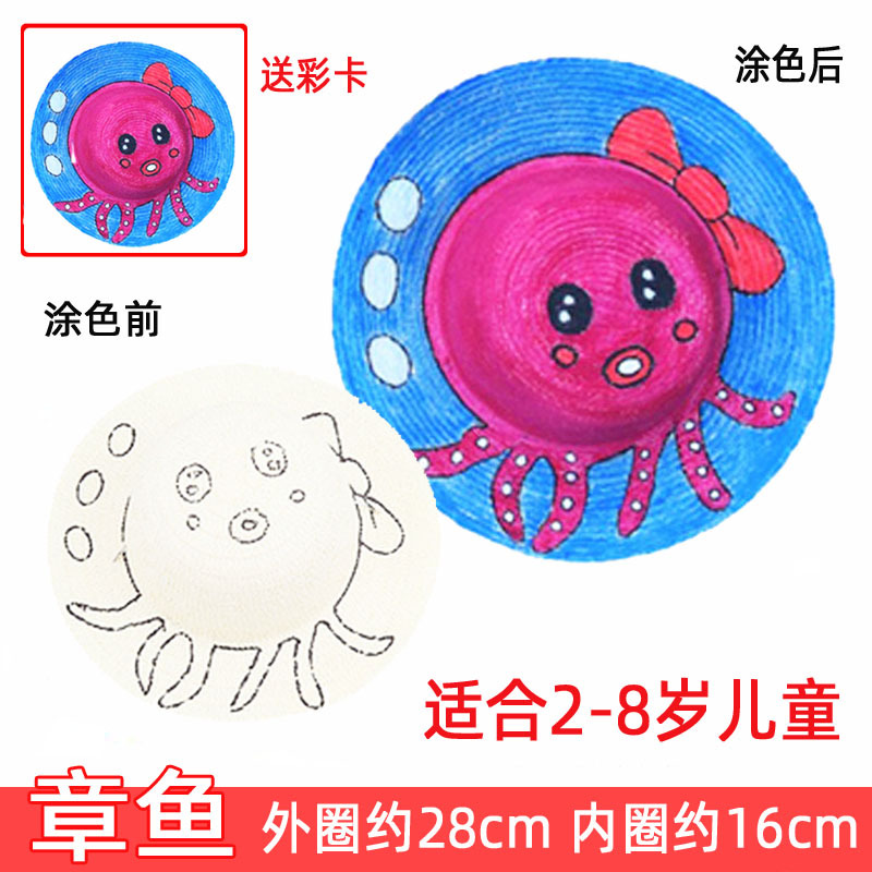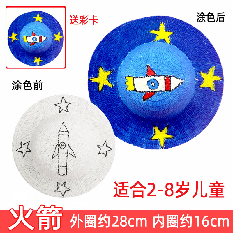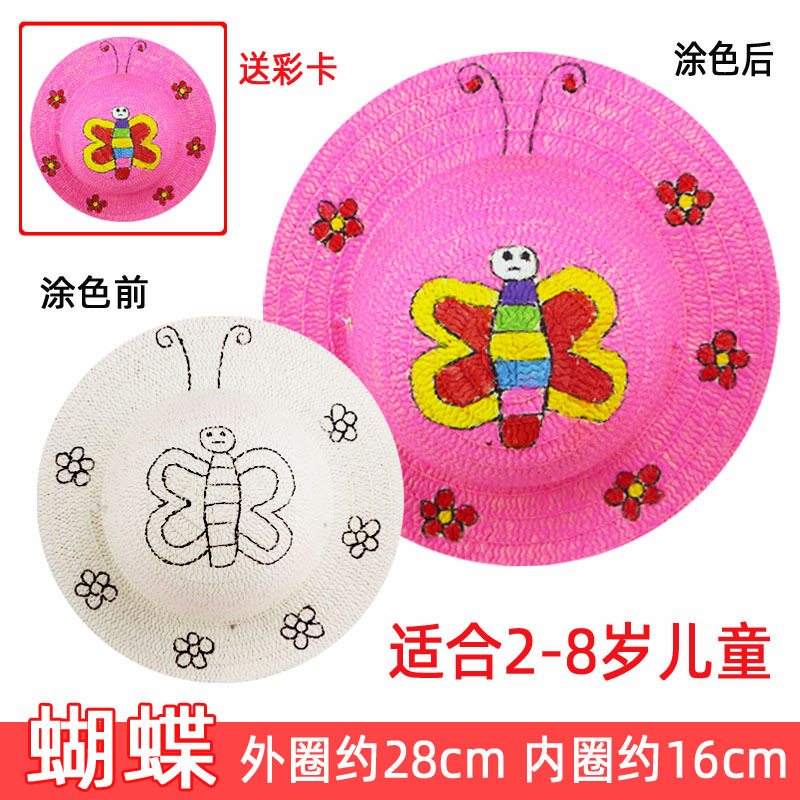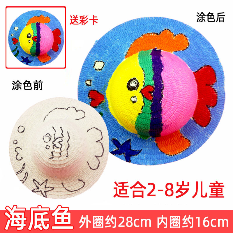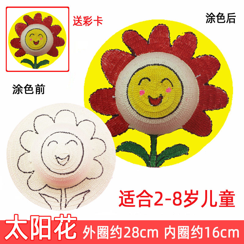 儿童绘画草帽diy手工幼儿园亲子活动创意美术手绘涂鸦帽子
