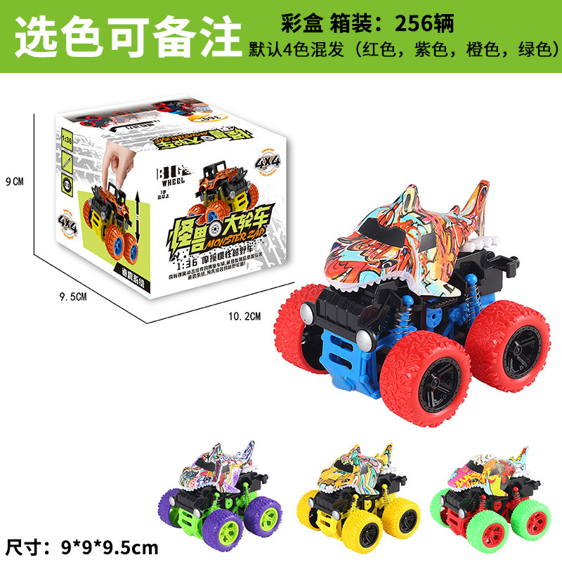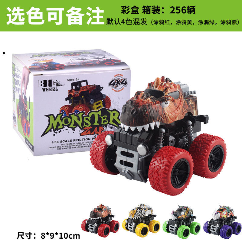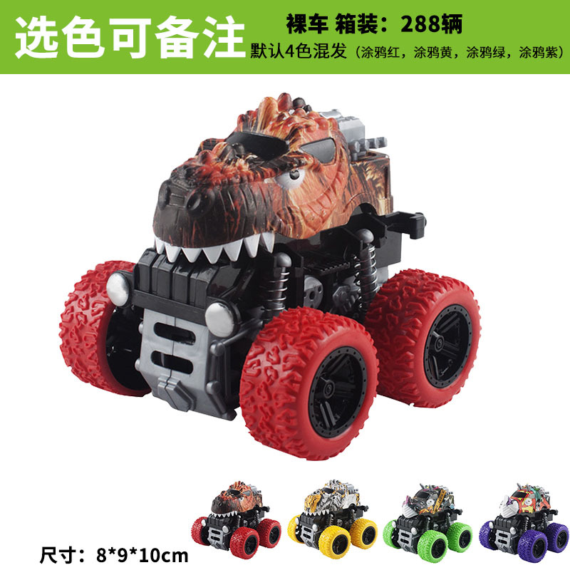跨境热销儿童玩具车批发工程惯性车四驱越野车恐龙回力小汽车模型