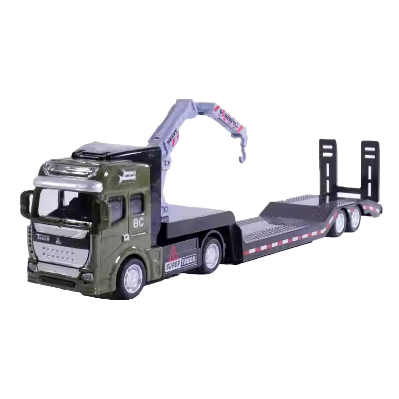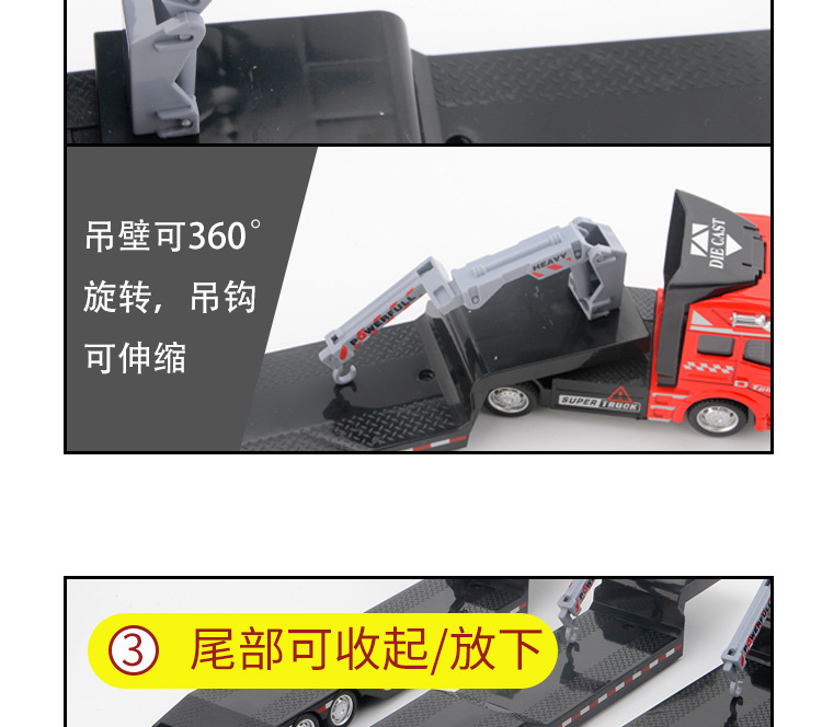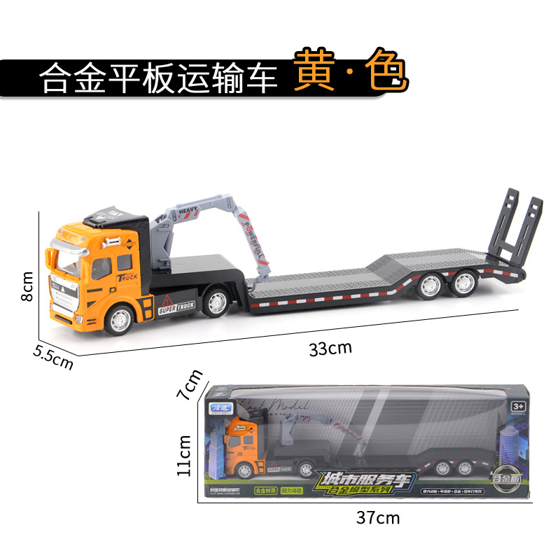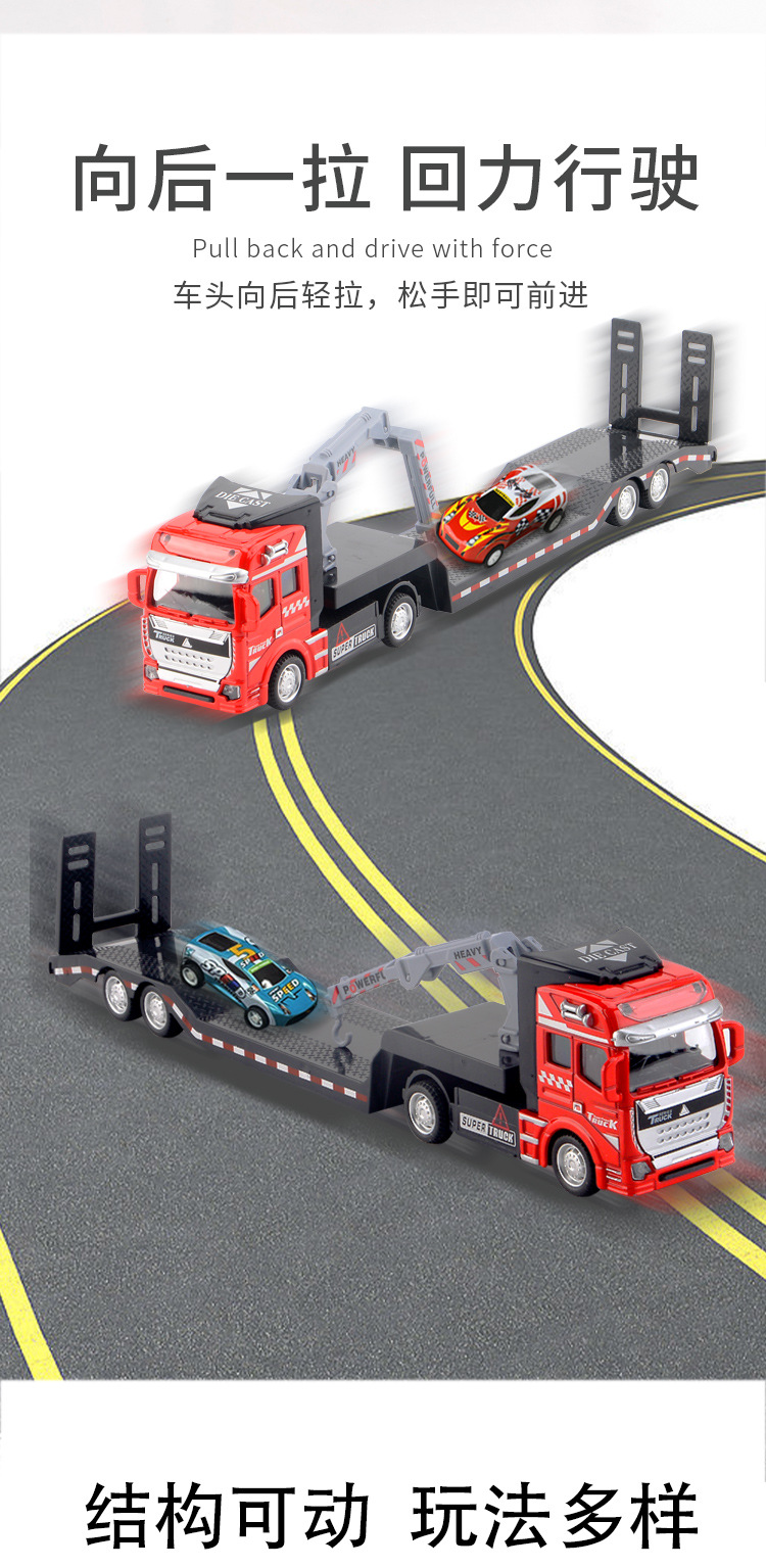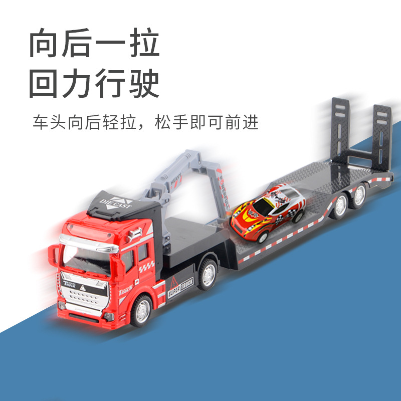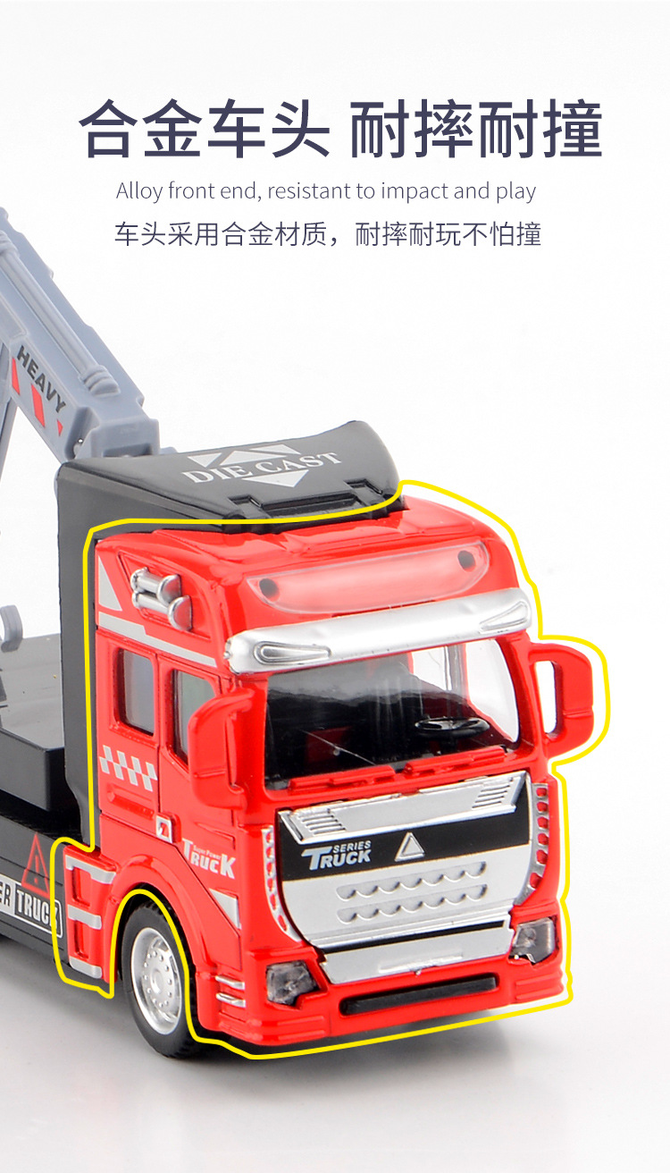 儿童合金车头平板拖车带起重钩仿真救援运输车回力模型男孩玩具