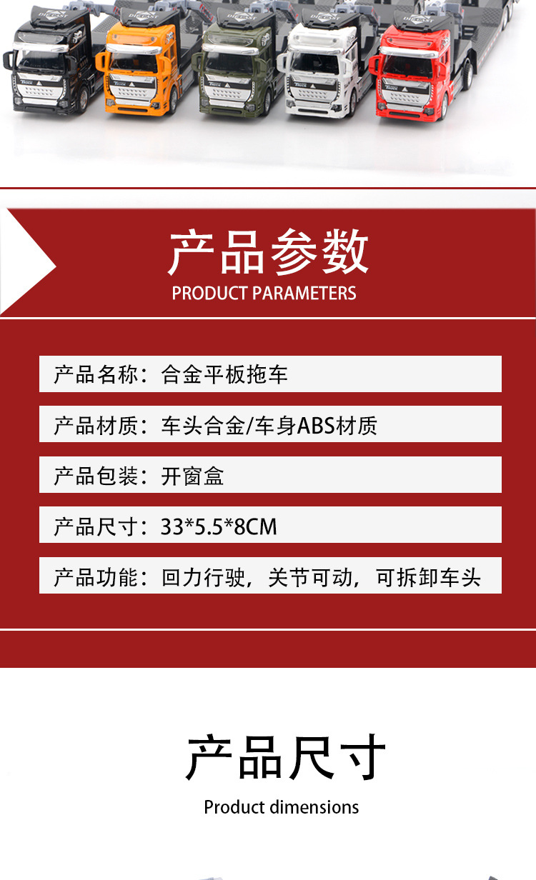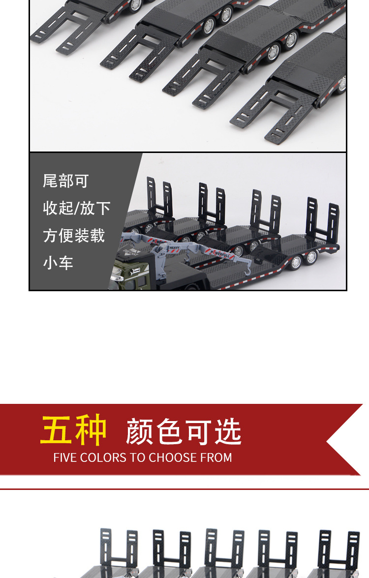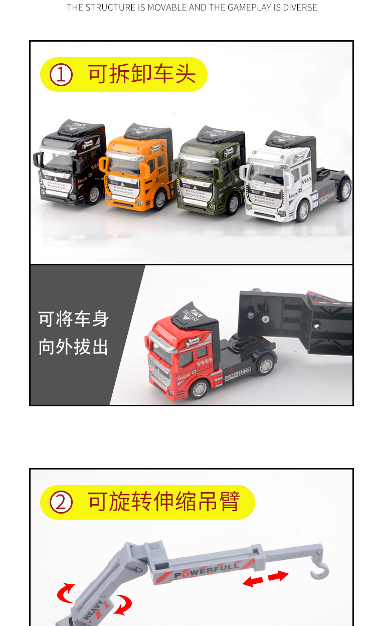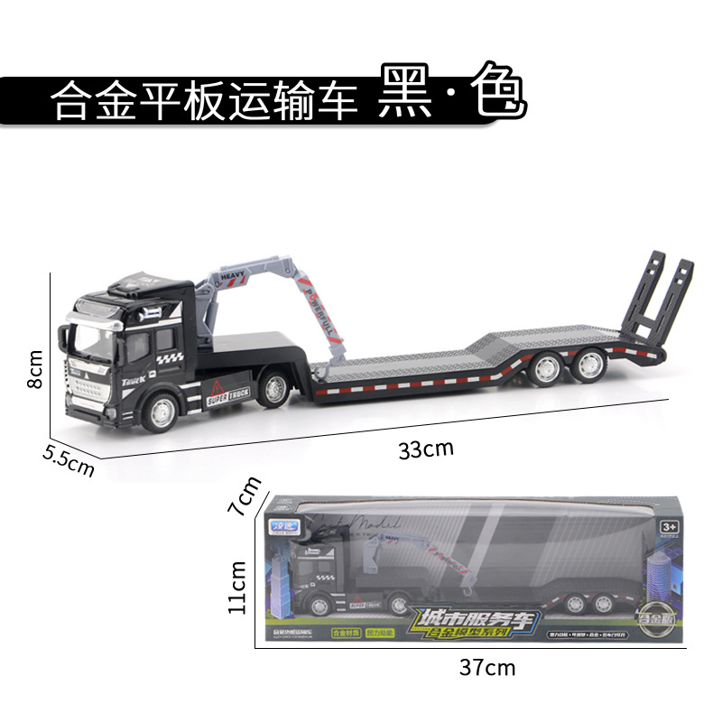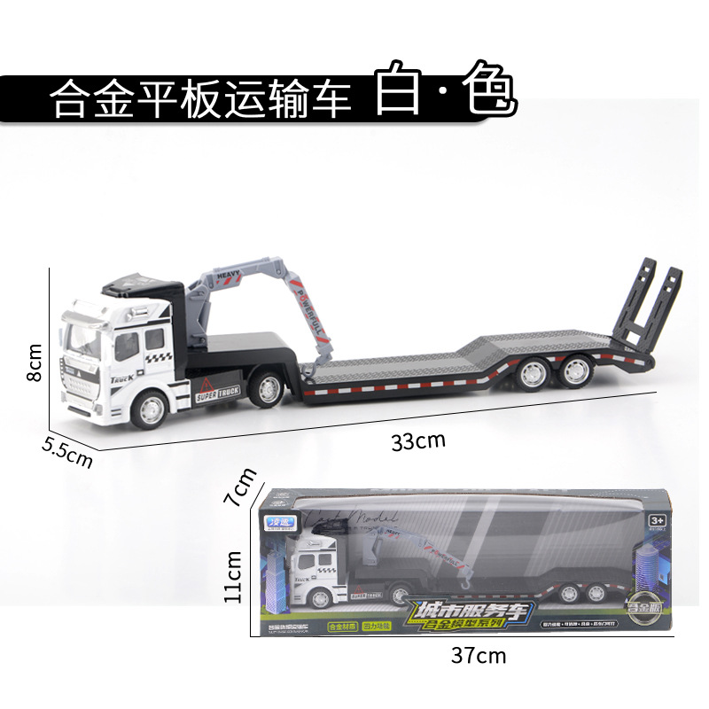 儿童合金车头平板拖车带起重钩仿真救援运输车回力模型男孩玩具