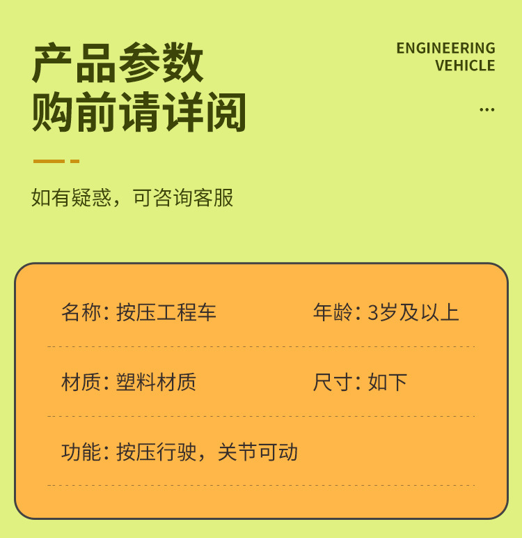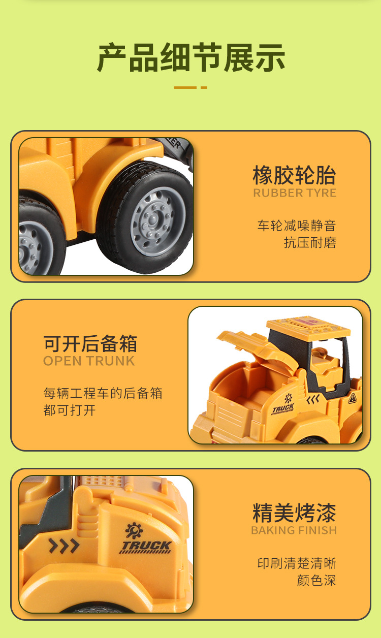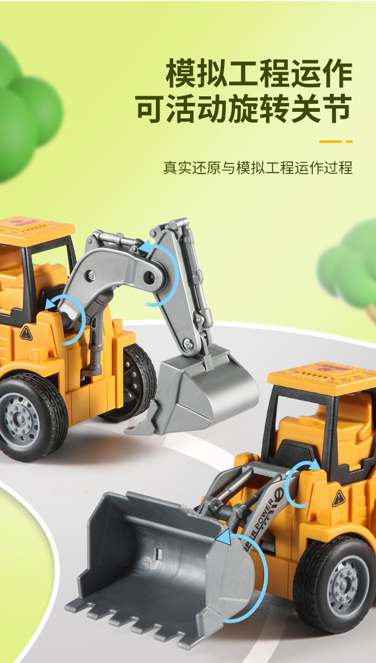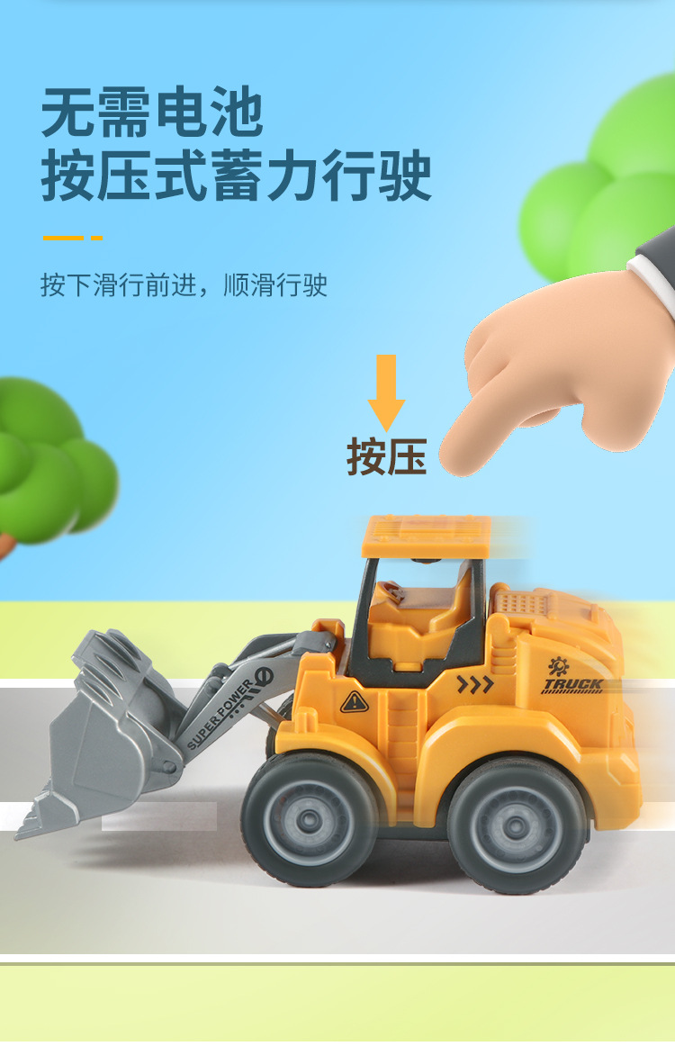 热卖按压工程车儿童玩具挖掘机推土车男孩生日礼物益智滑行惯性