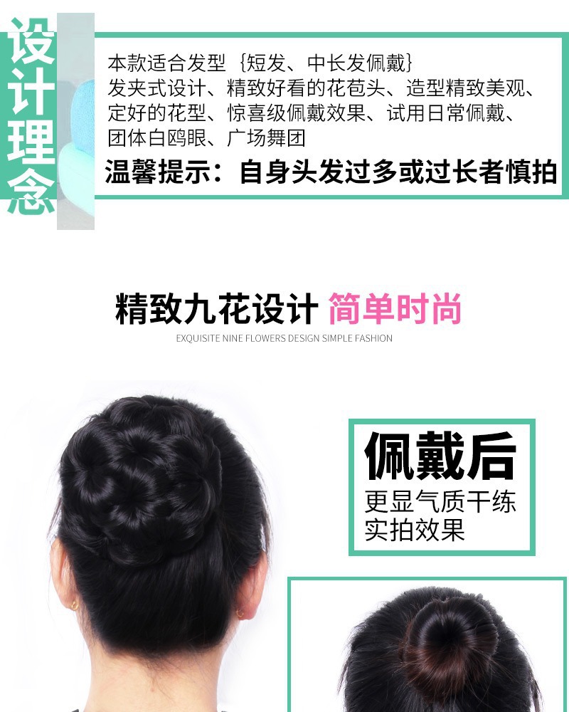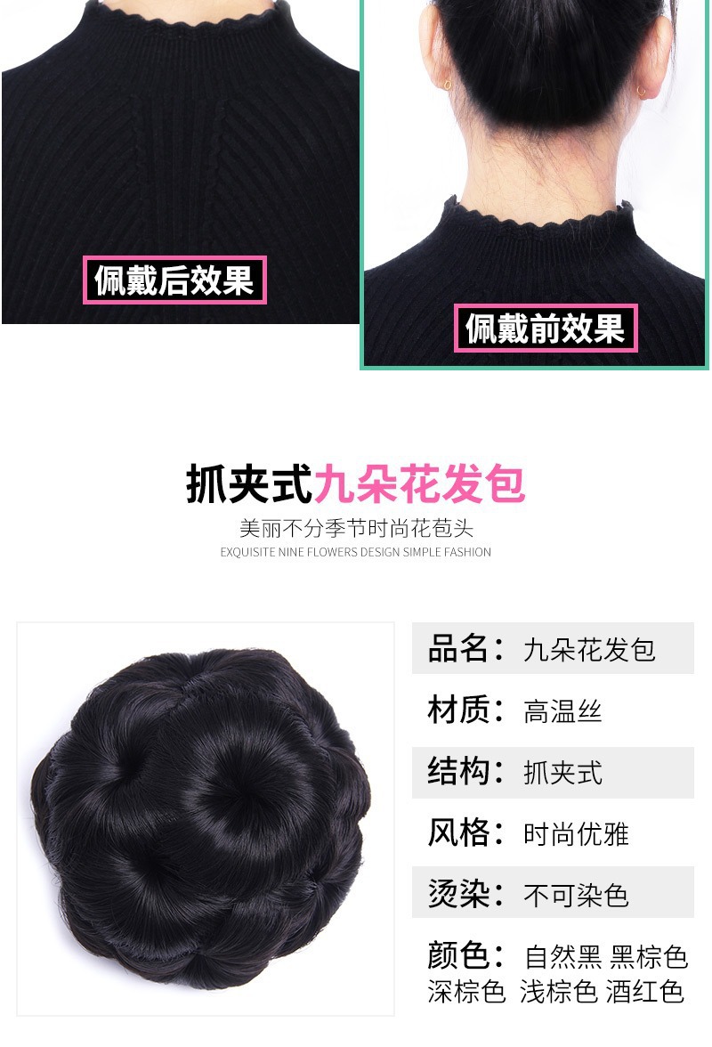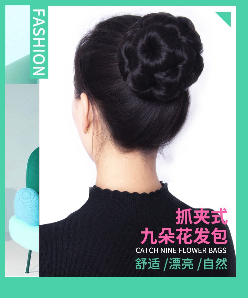 九朵花假发发苞抓夹丸子头花发包抓夹盘发器夹子卷发发饰假头发