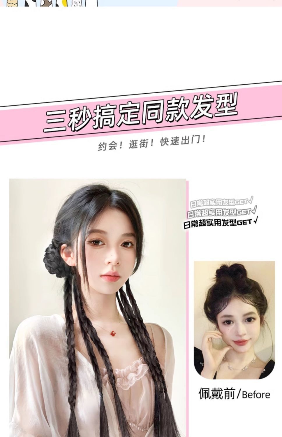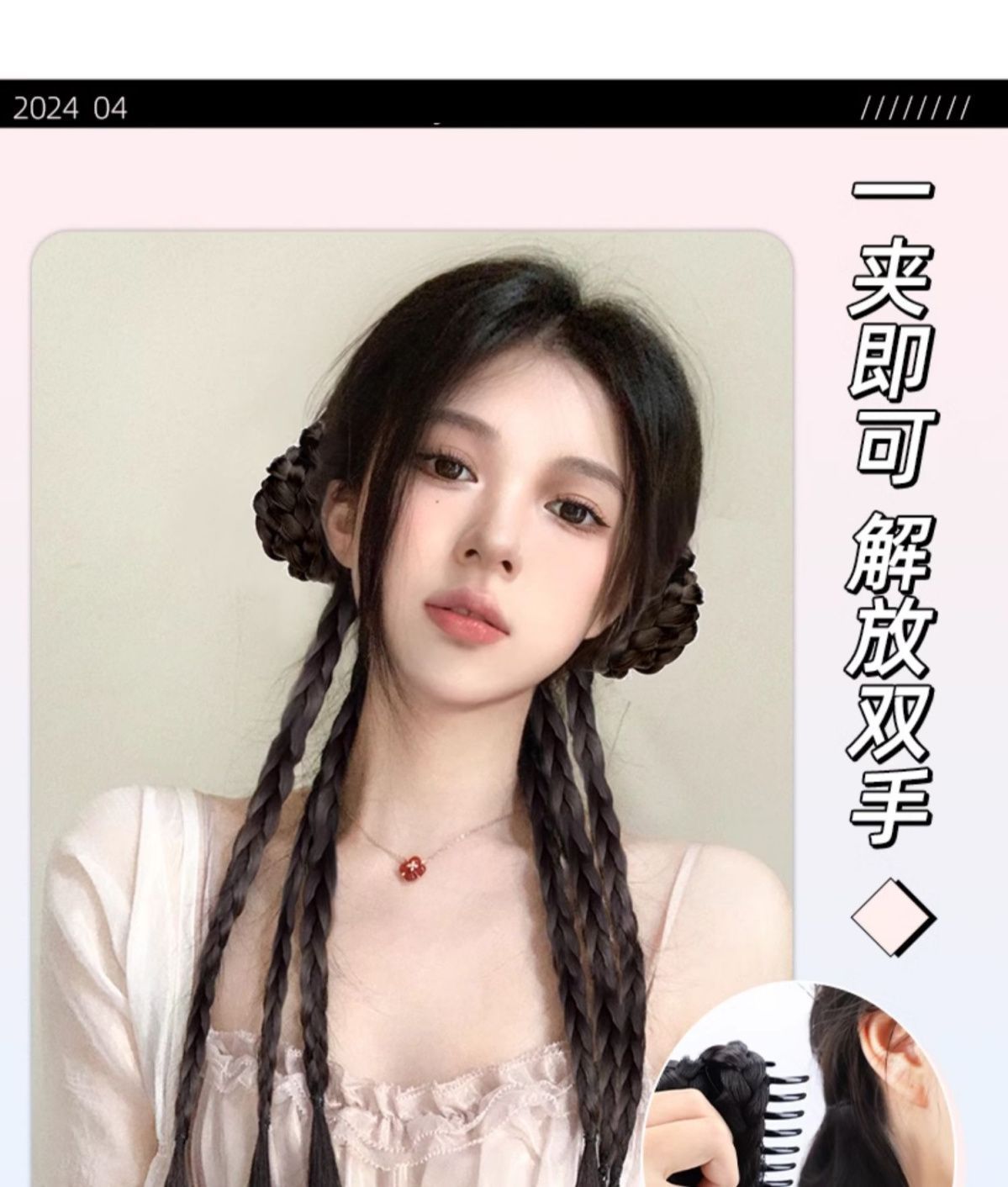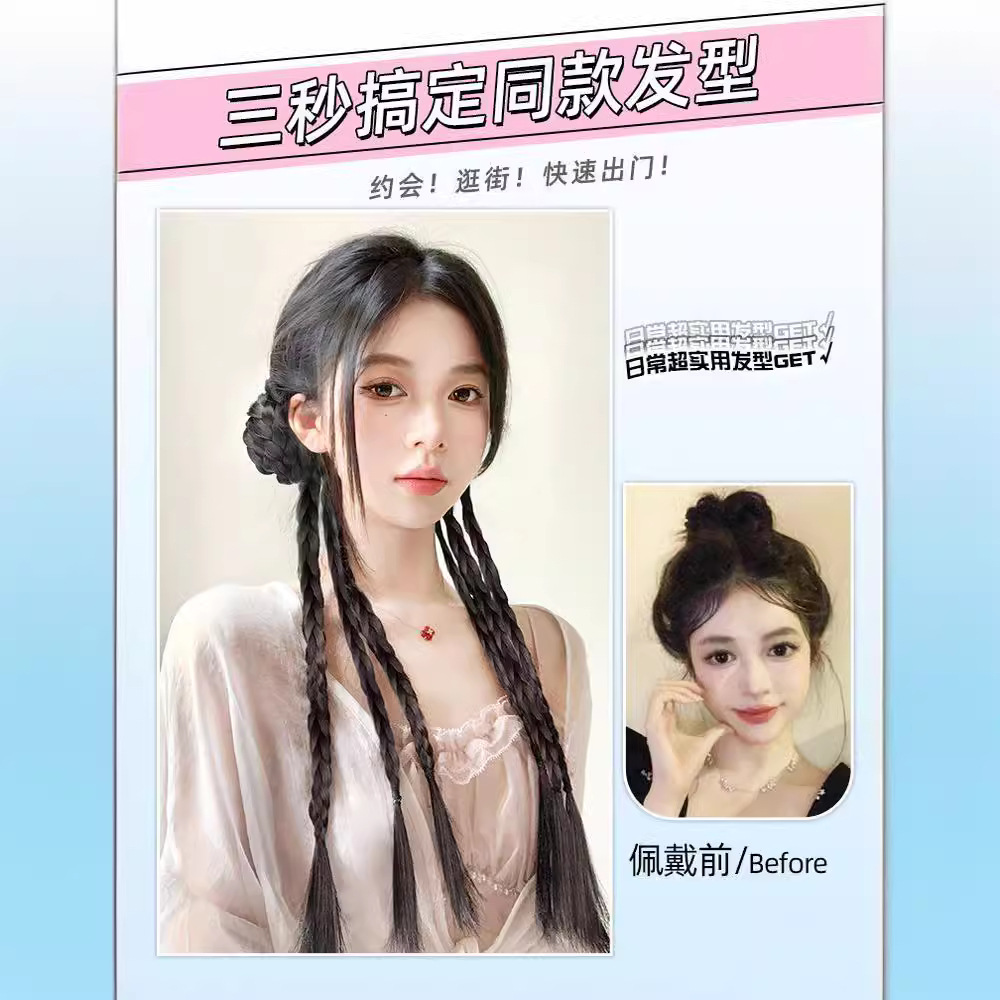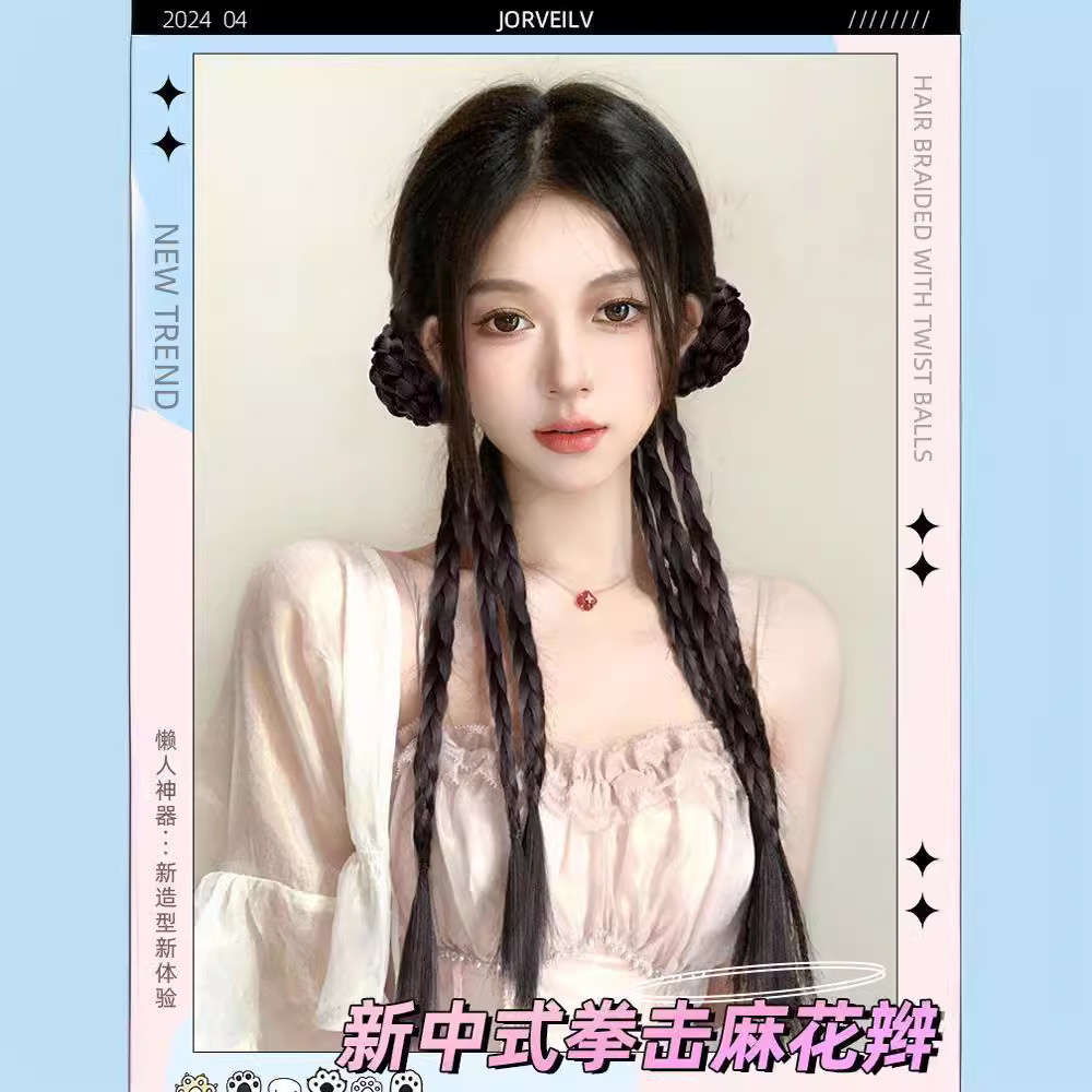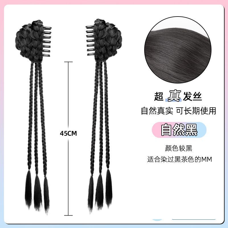 chinese style grip balls twist braid-natural black-one-pair package(中式抓夹丸子麻花辫-自然黑-一对装) USD $2.35 98810 box available
