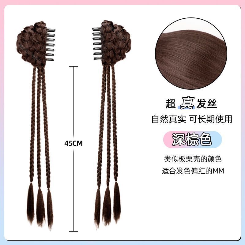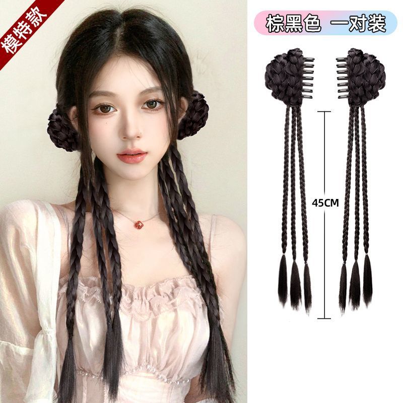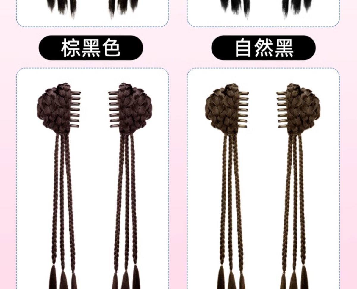 chinese style grip balls twist braid-brown black-one-pair package(中式抓夹丸子麻花辫-棕黑色-一对装) USD $2.35 99698 box available