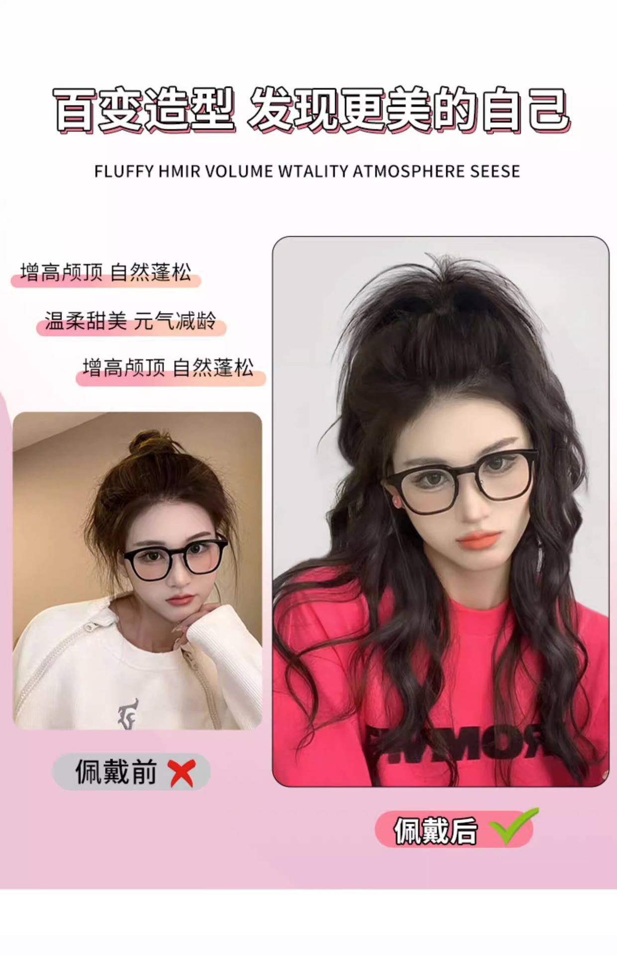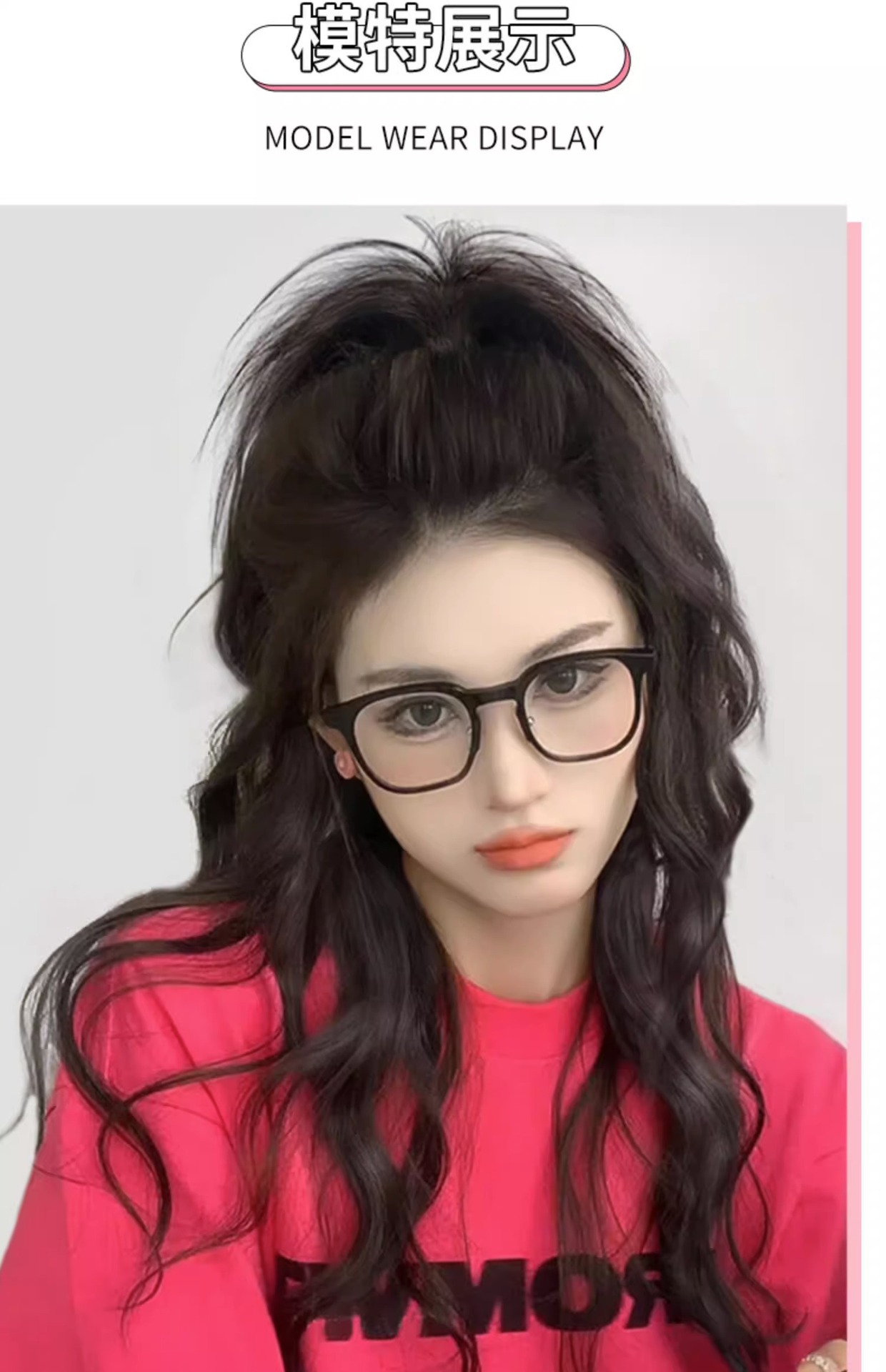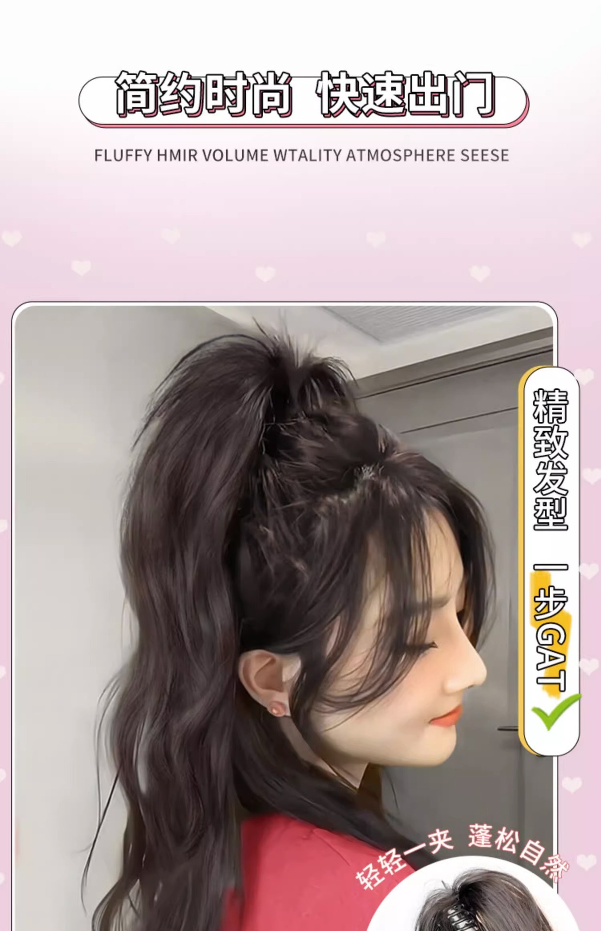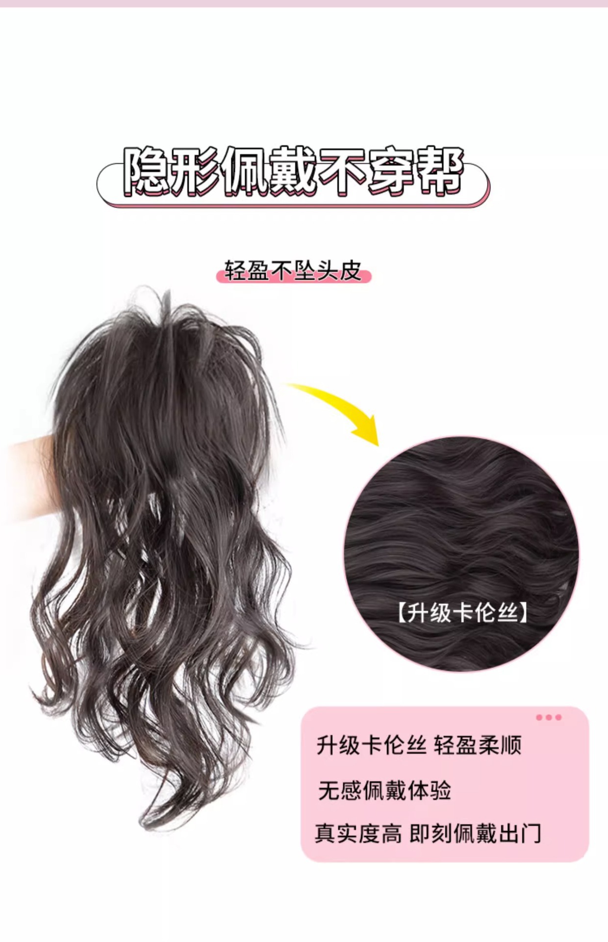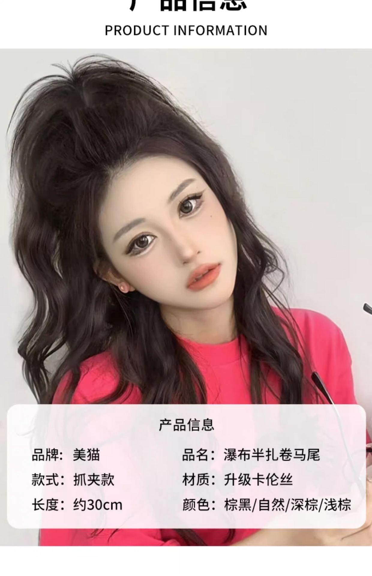 半扎瀑布高马尾假发抓夹女仿真人发懒人辫子自然蓬松卷发假马尾