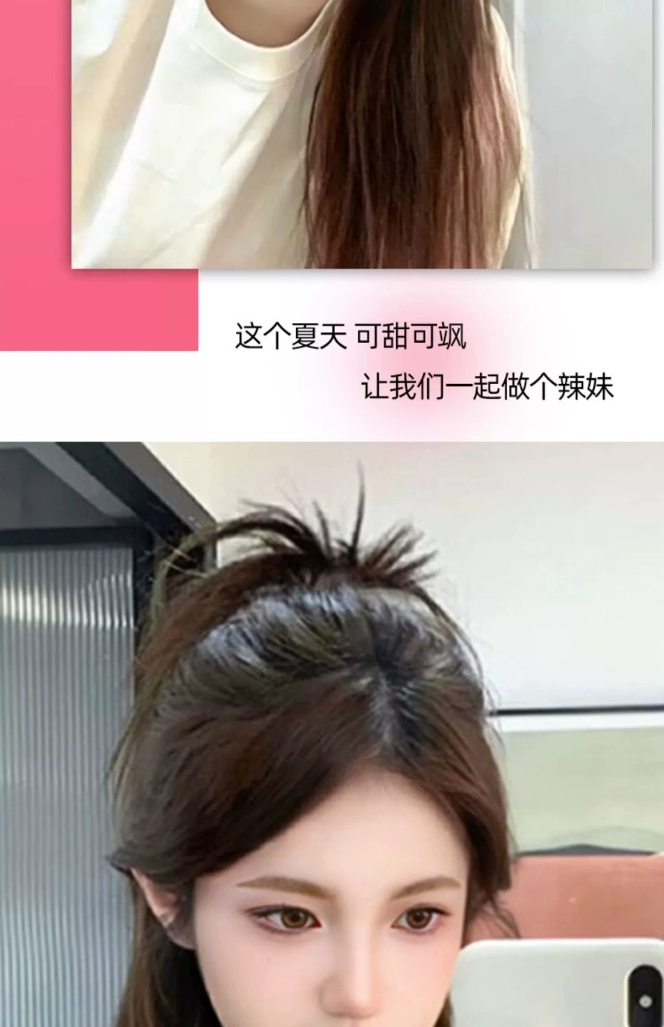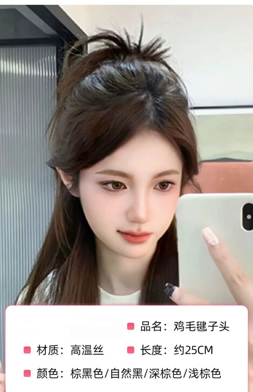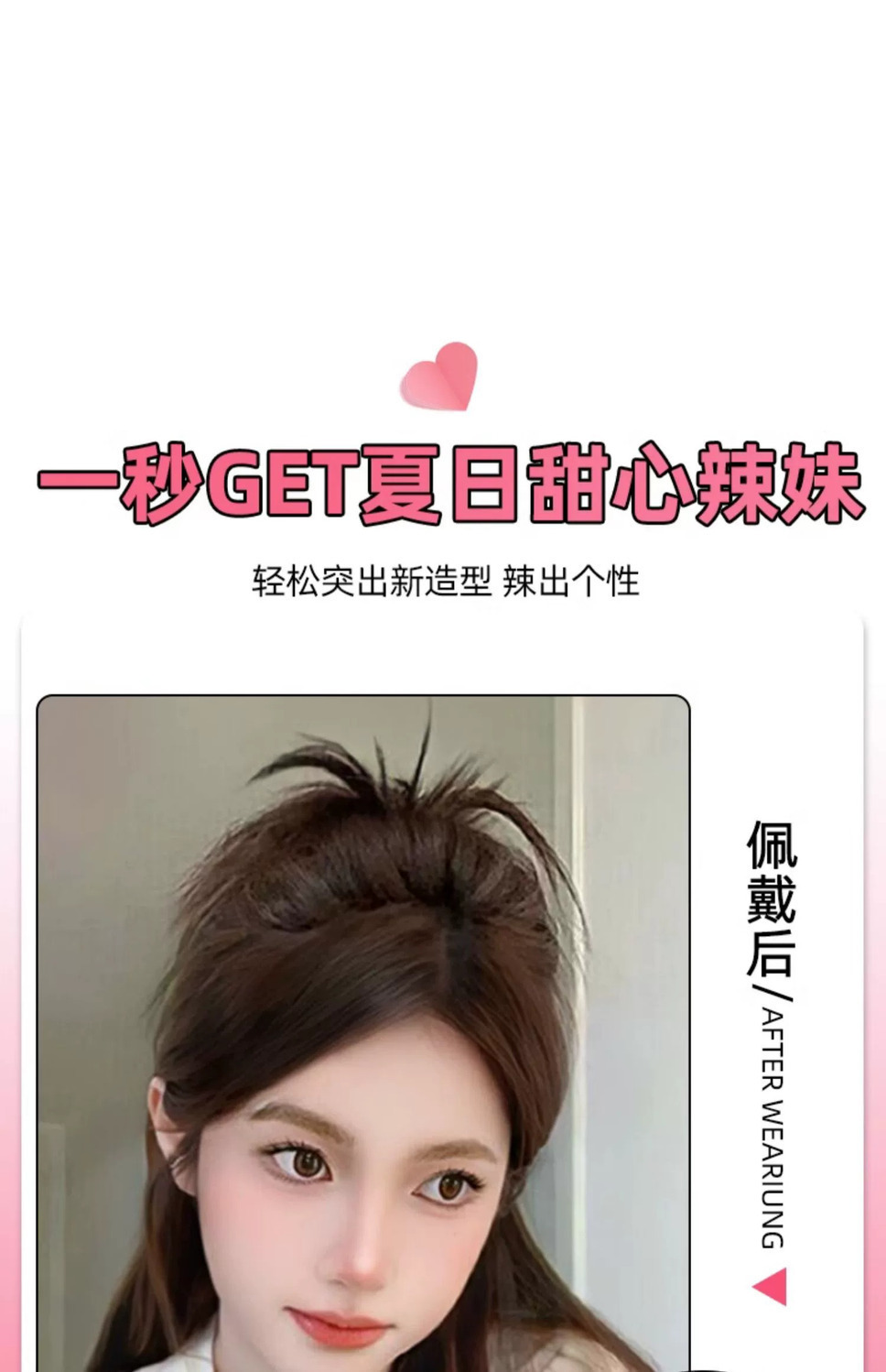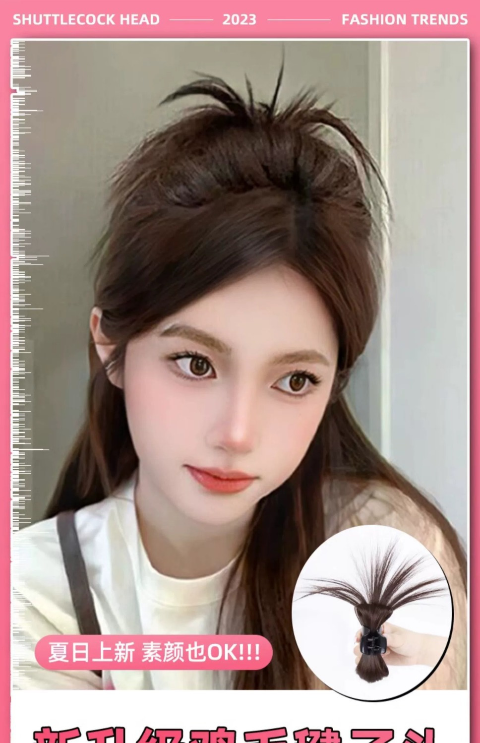 假发女丸子头抓夹慵懒风鸡毛毽子头高马尾辣妹鸡毛半扎发假发发包