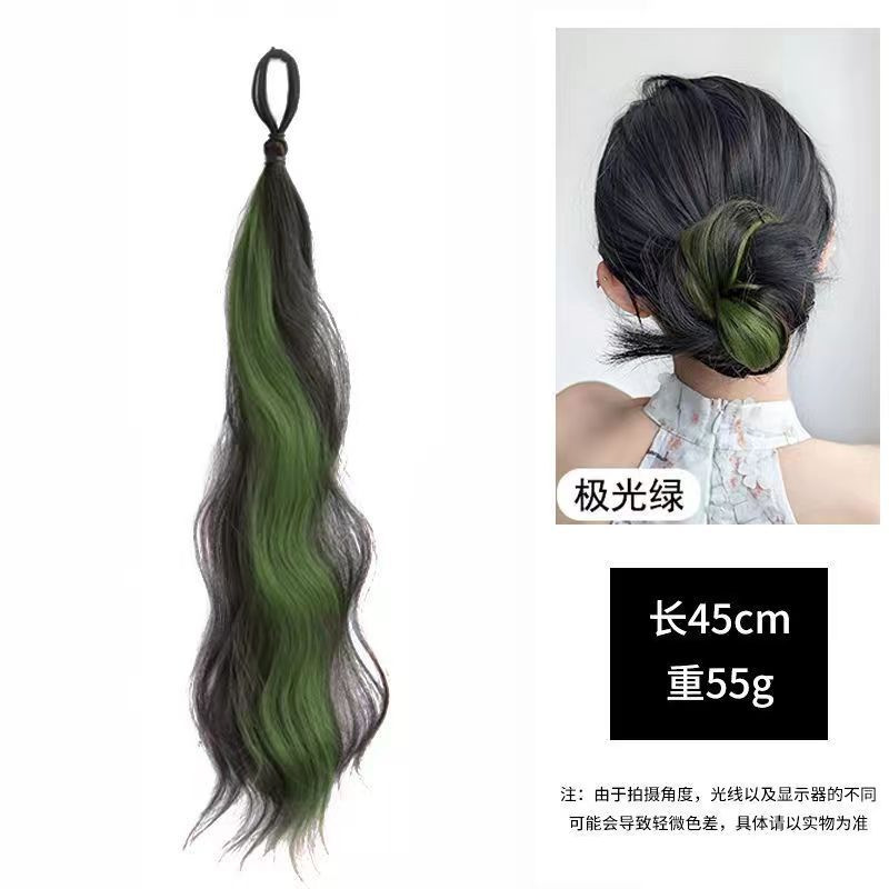 self-winding bun hair band-curly hair-highlight aurora green-one pack(自绕丸子头发束-卷发-挑染极光绿-一条装) USD $0.58 93494 piece available
