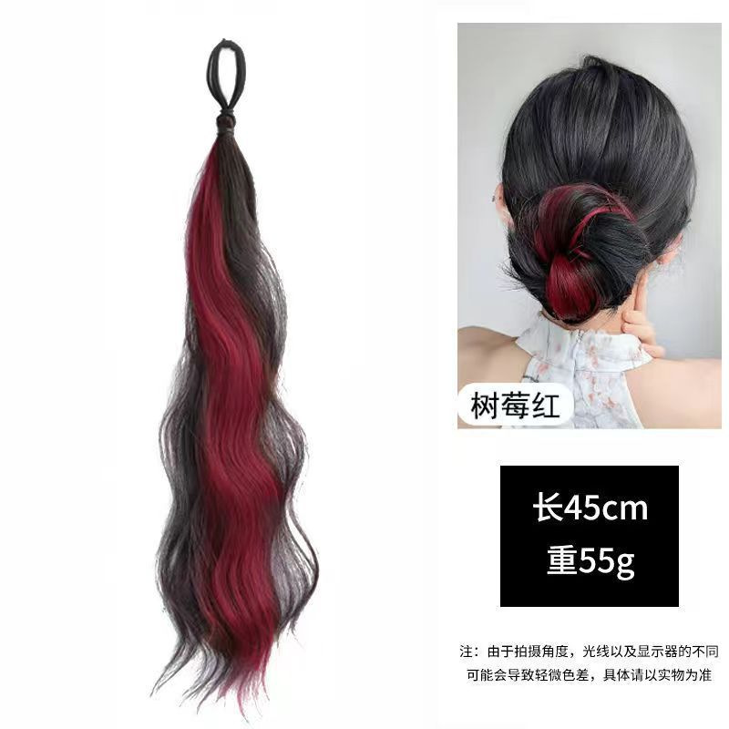 self-winding bun hair band-curly hair-highlight raspberry red-one pack(自绕丸子头发束-卷发-挑染树莓红-一条装) USD $0.58 95179 piece available