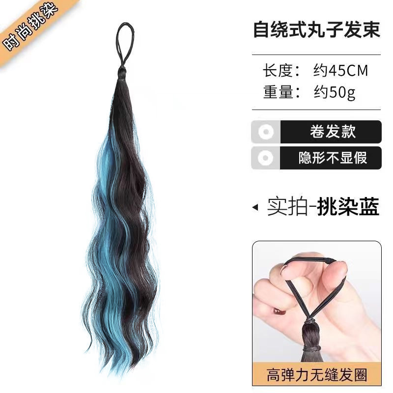 self-winding bun hair band-curly hair-highlight smokey blue-one pack(自绕丸子头发束-卷发-挑染烟灰蓝-一条装) USD $0.58 93403 piece available