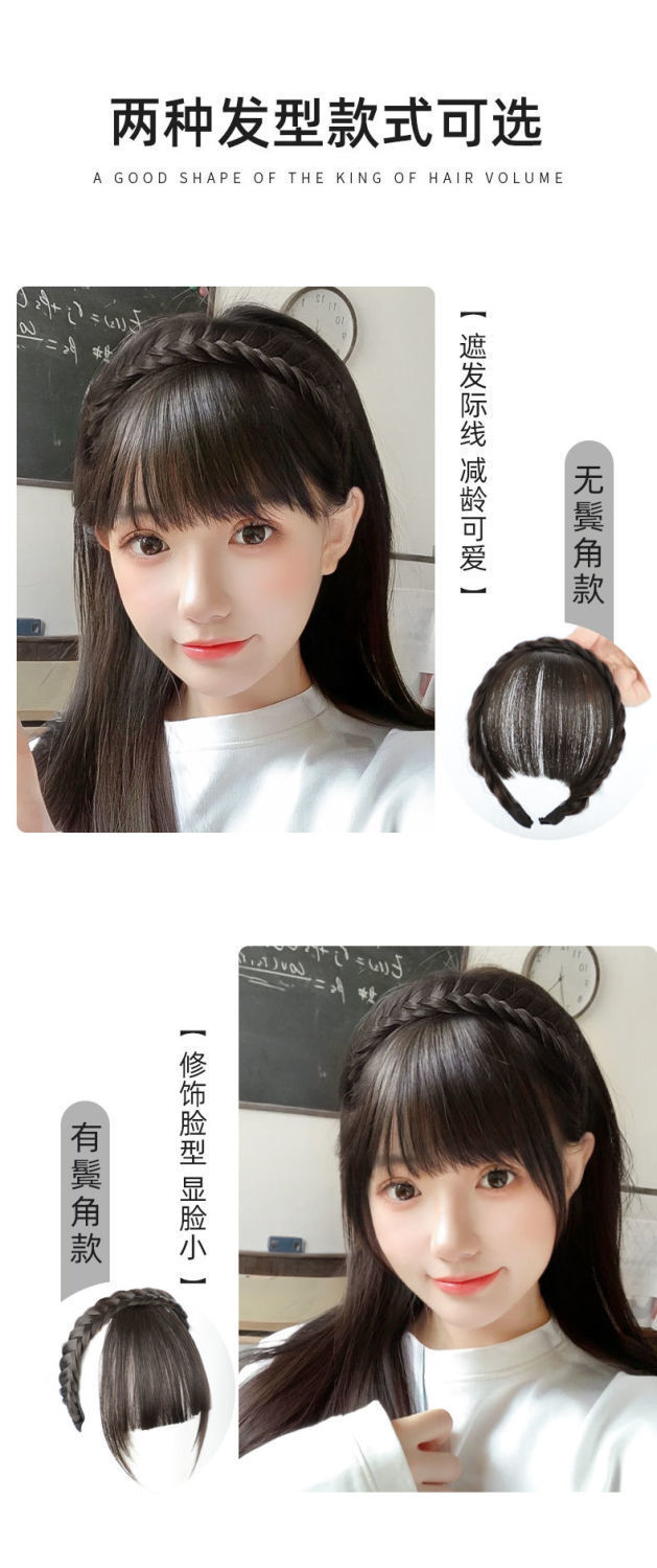 鱼骨辫发箍空气刘海假发女一体自然无痕仿真发遮白发增加发量头帘