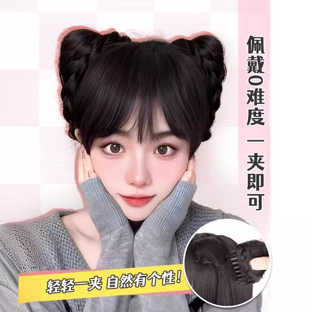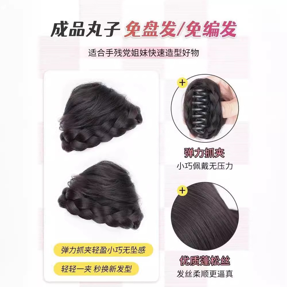 许昌猫耳朵假发抓夹丸子头发包可爱双丸子发饰盘发花苞头假发包
