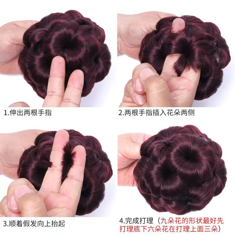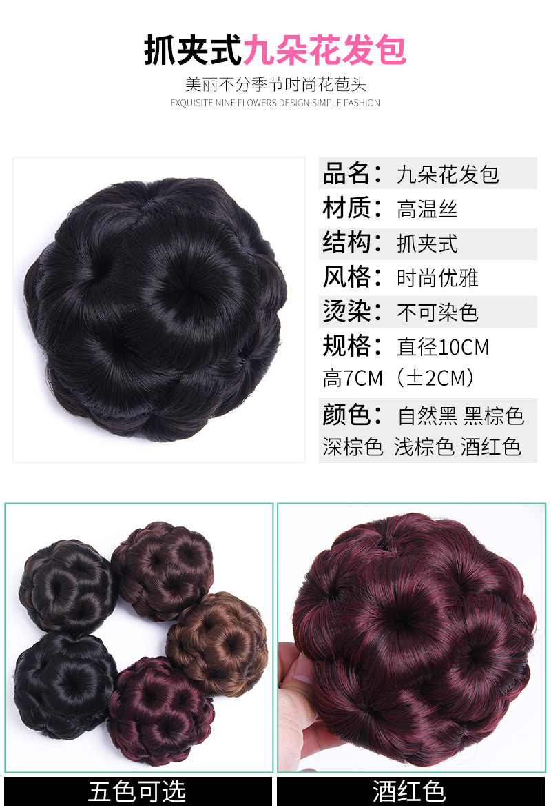 假发发包盘头花苞发饰抓夹式九朵花卷发包丸子头盘发器五色大号