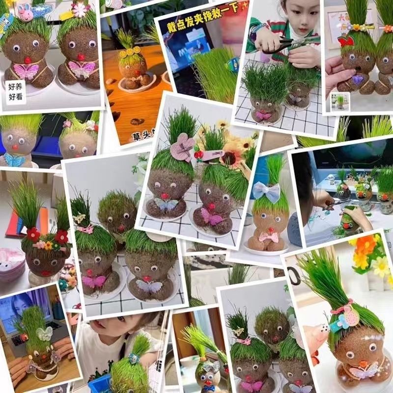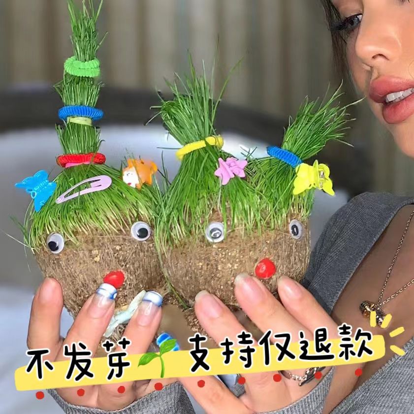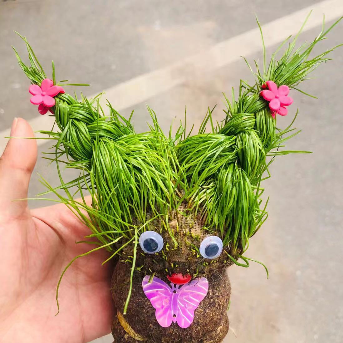 【厂家批发】长草娃娃货源100个50个草头娃儿童节礼品绿植摆地摊