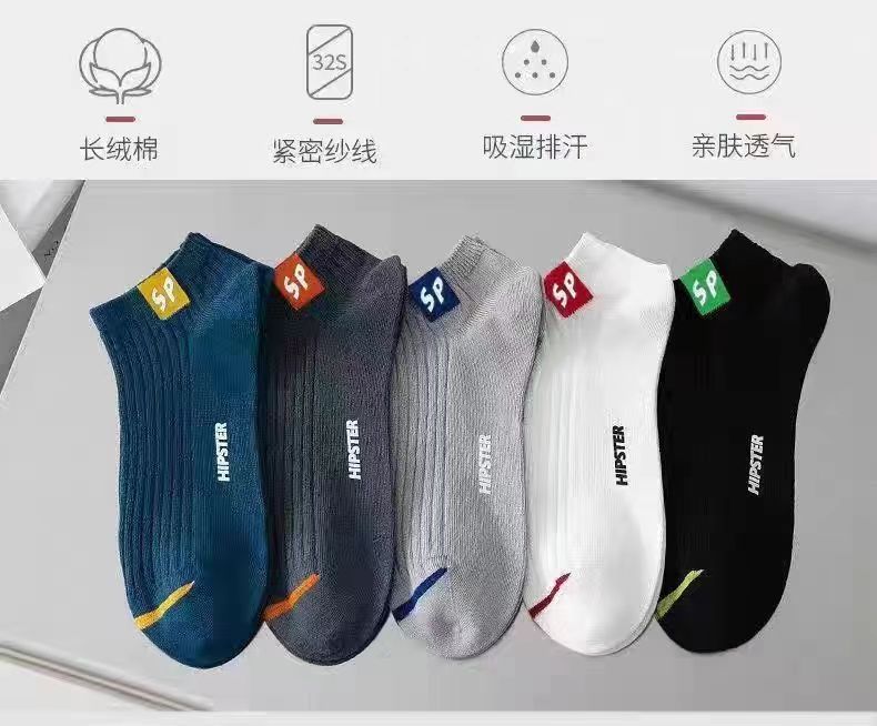 SP春秋袜子男士棉袜短筒袜子批发厂家潮流款船袜竖条浅口吸汗棉袜