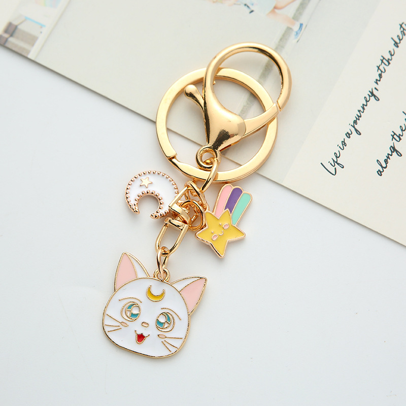 卡通合金猫咪钥匙扣小巧月亮星星金属小挂件可爱个性情侣包包挂饰