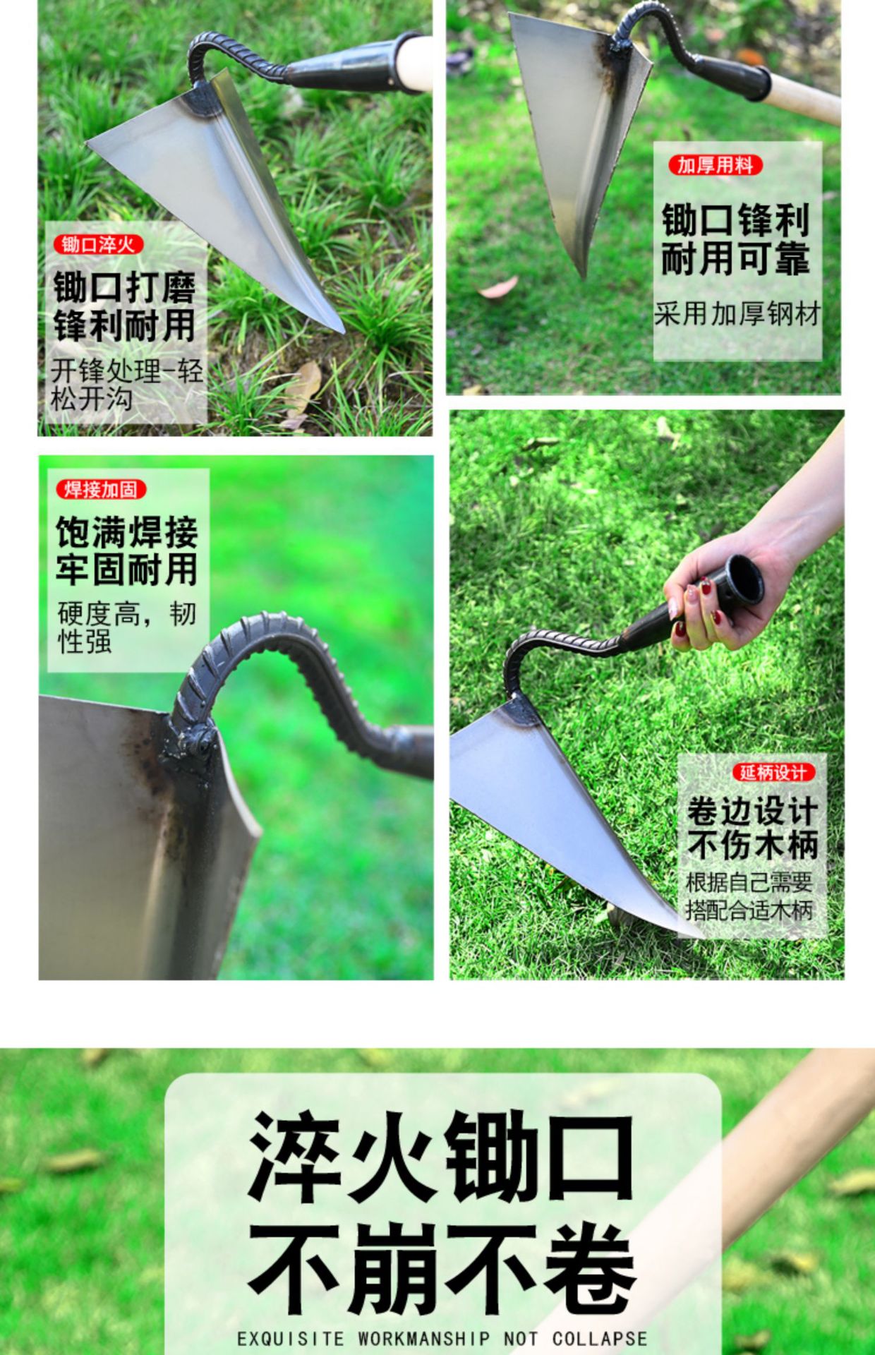 开沟锄头起垄锄手拉犁三角锄翻地鹤嘴锄松土沟锄尖头锄种菜尖嘴锄