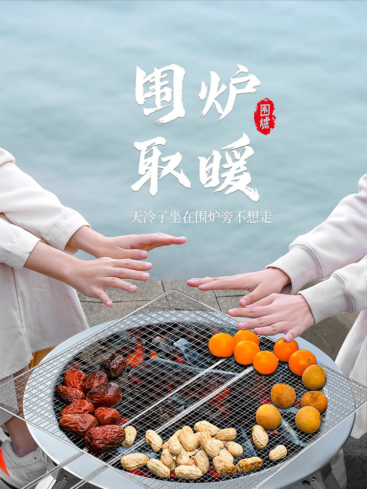 烤火盆围炉煮茶家用户外农村碳火盆烧烤架烤火炉木炭冬天取暖炭盆
