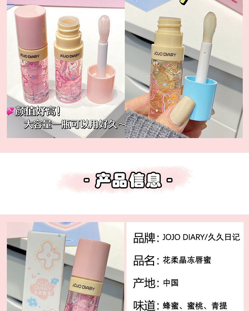 久久日记护唇油女透明玻璃唇去死皮滋润保湿镜面淡化唇纹平价跨境
