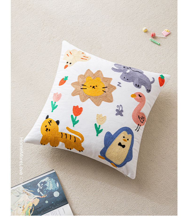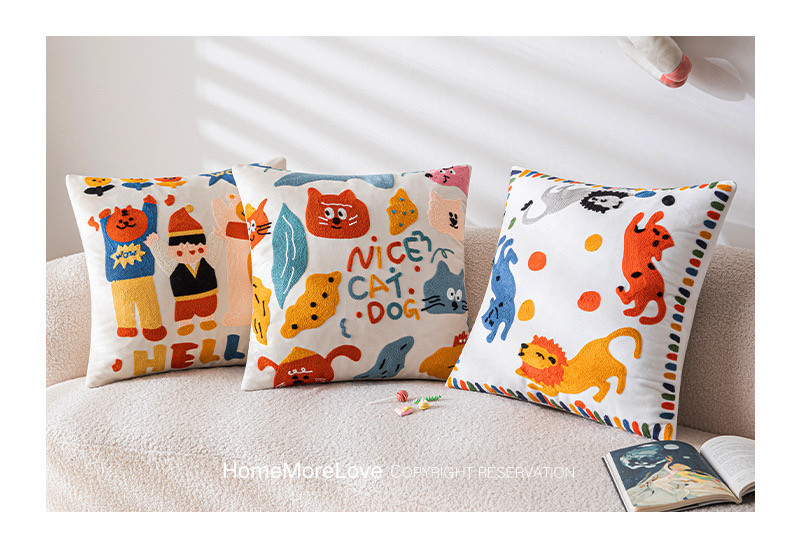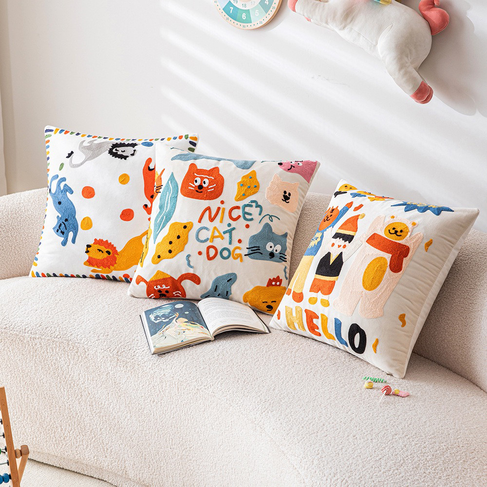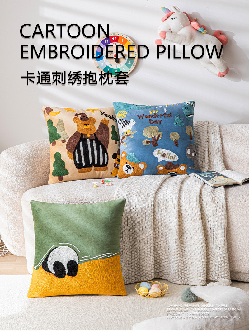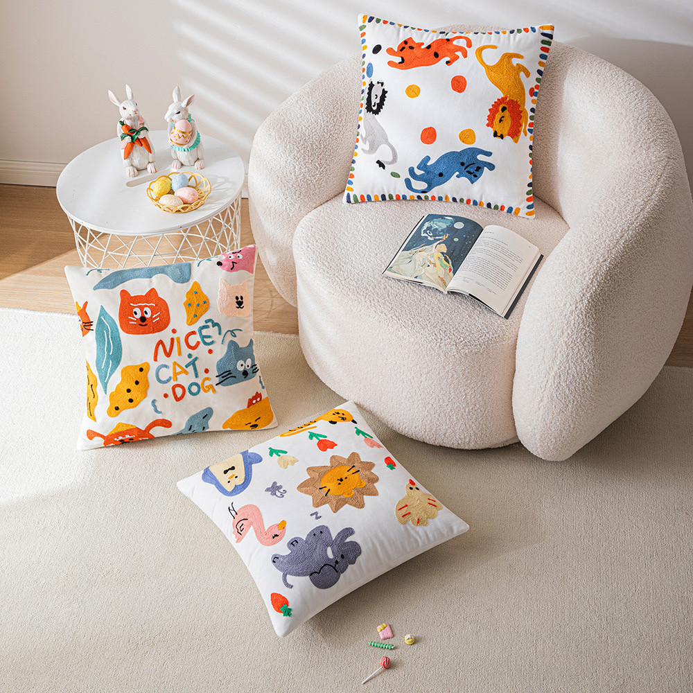 可爱卡通刺绣抱枕套客厅沙发儿童房床头靠垫靠枕动物元素猫咪抱枕