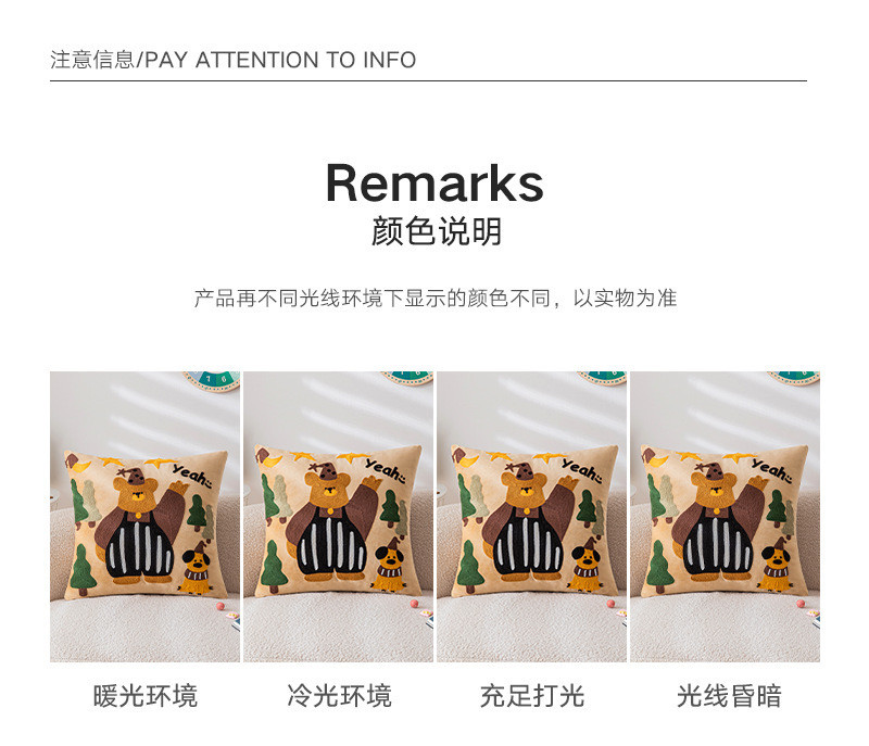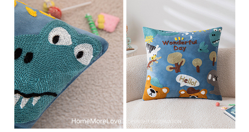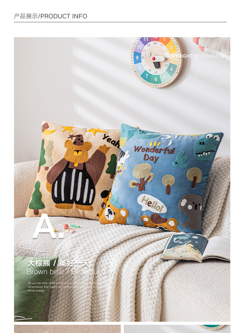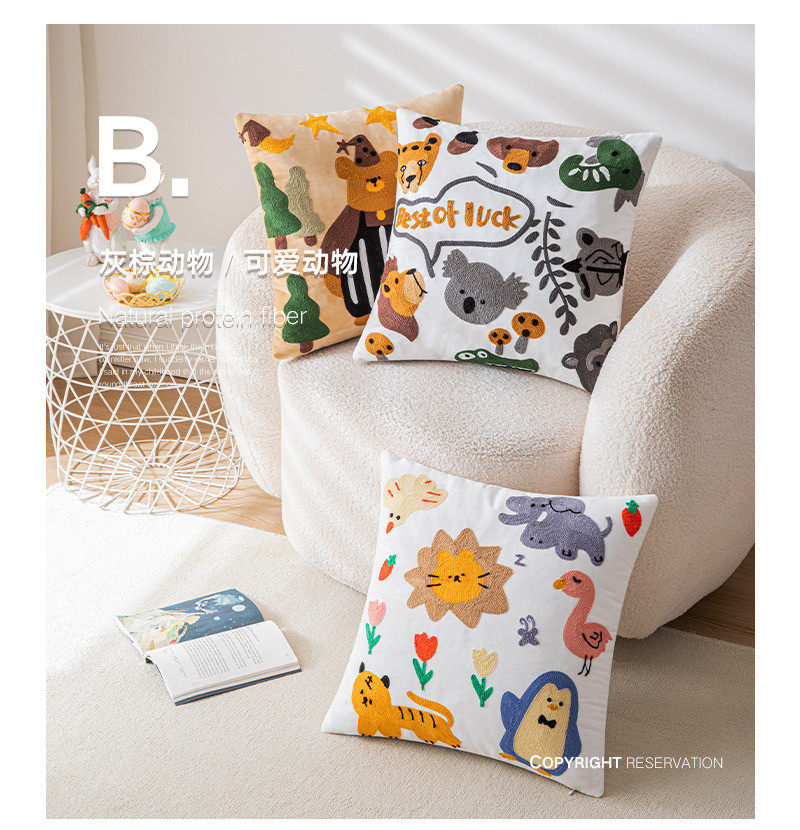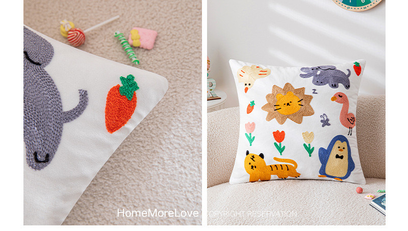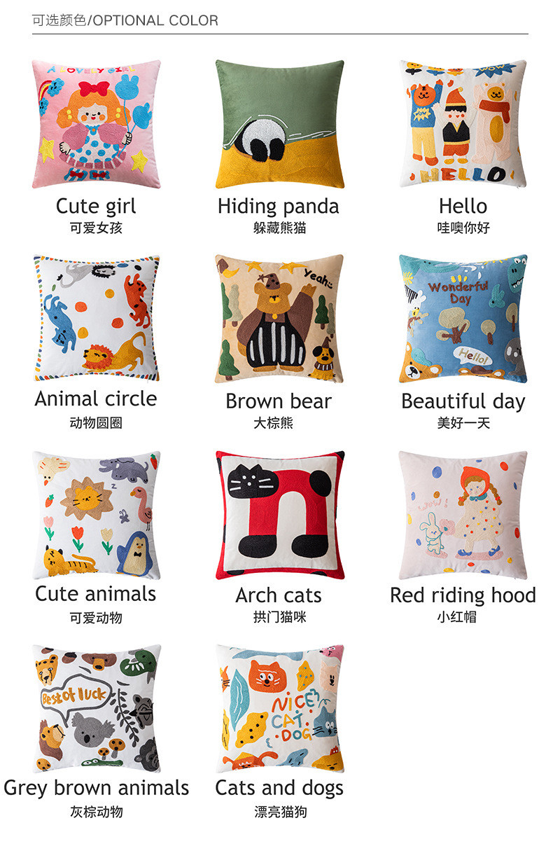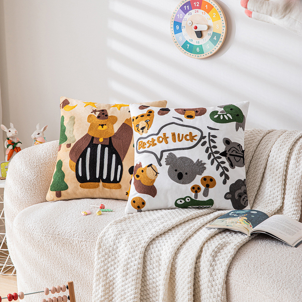 可爱卡通刺绣抱枕套客厅沙发儿童房床头靠垫靠枕动物元素猫咪抱枕