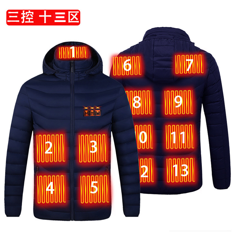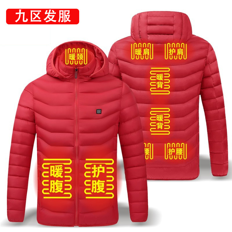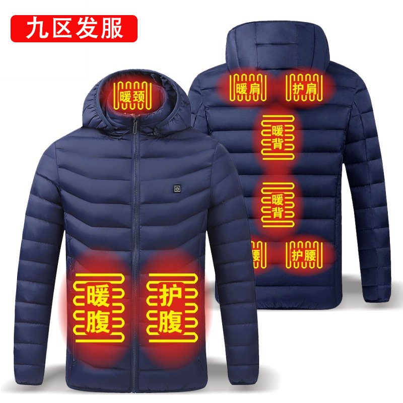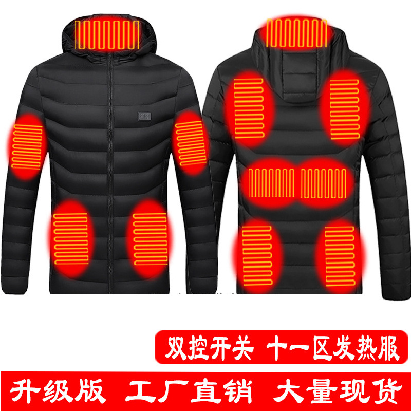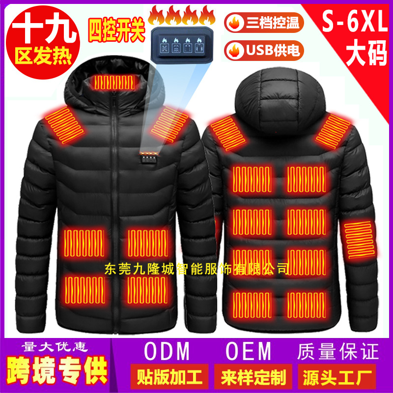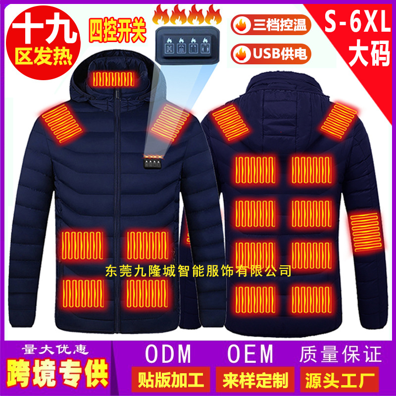 跨境智能发热衣服男女冬季充电控温加热棉衣保暖羽绒棉服电热外套