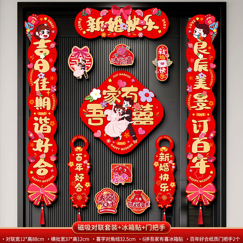 结婚对联磁吸喜字贴男方大门装饰婚礼女方喜联全套入户门出嫁布置