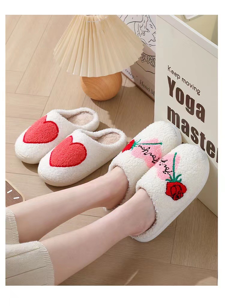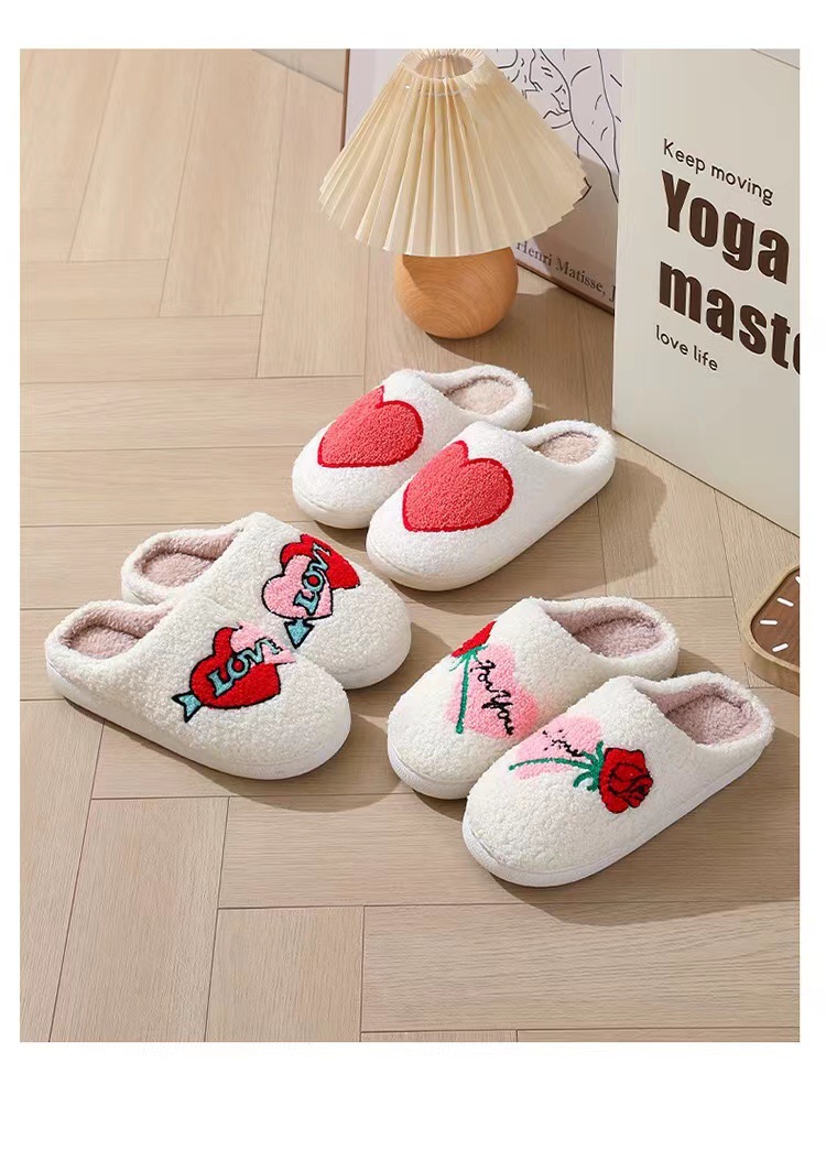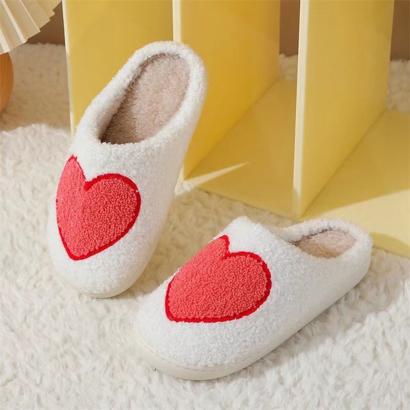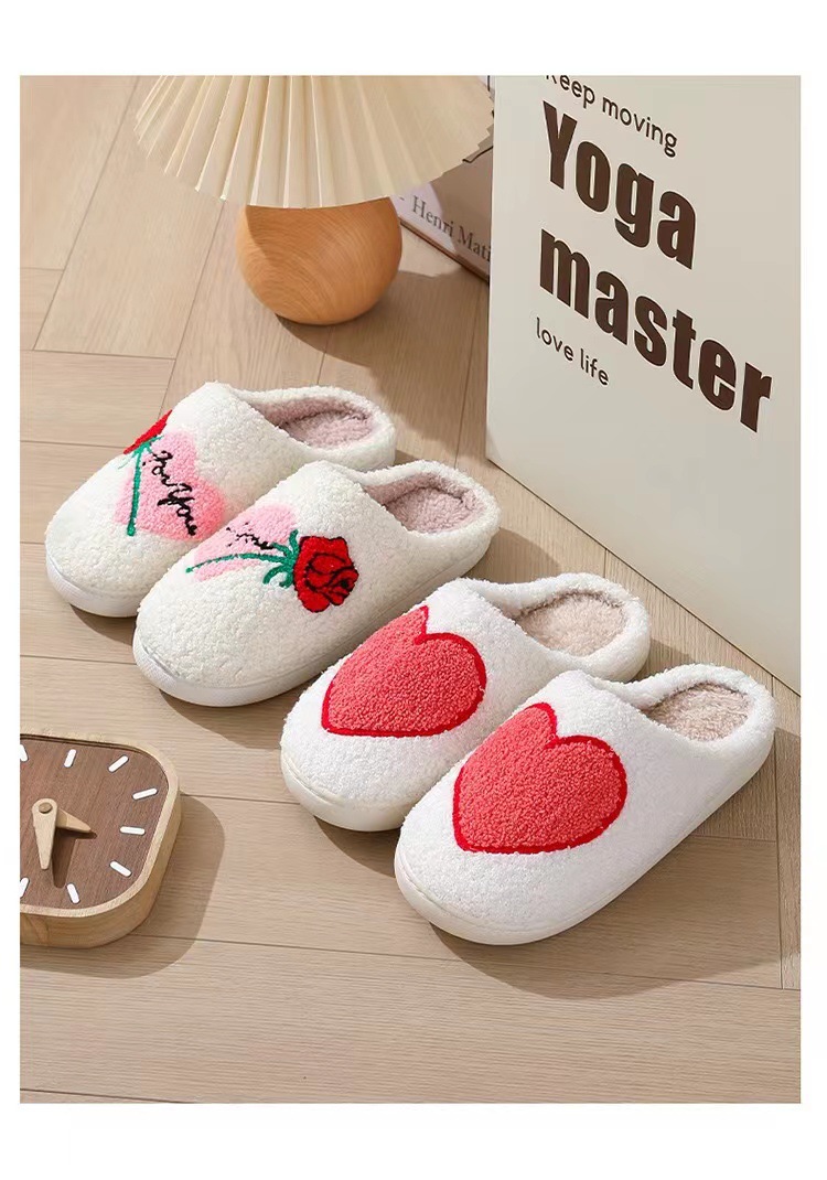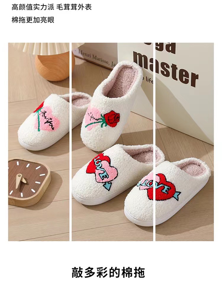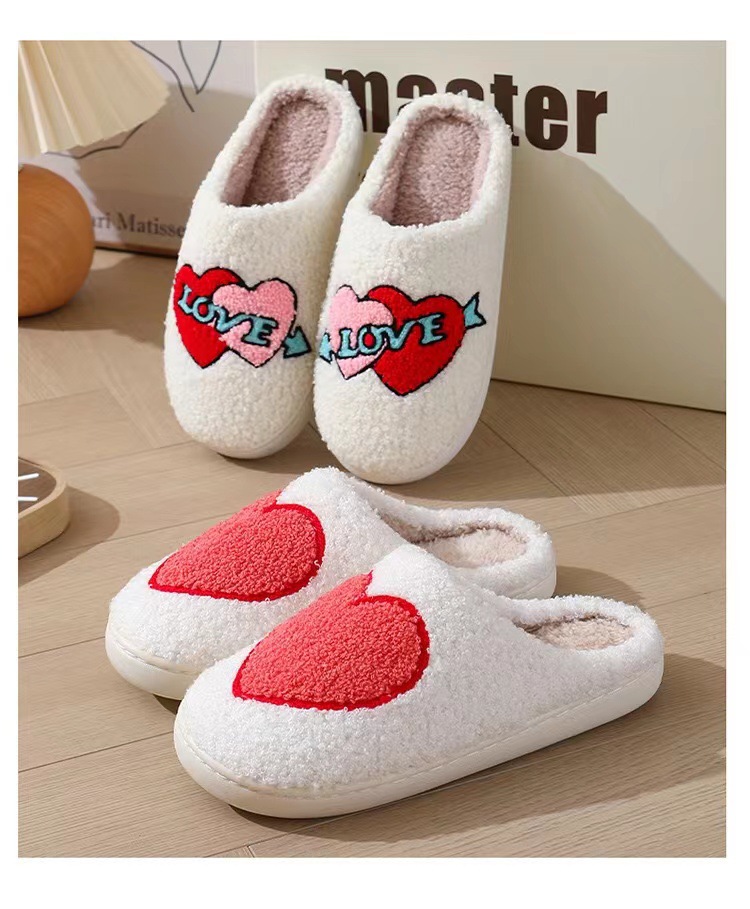 跨境情人节爆款冬季笑脸大爱心棉拖鞋女室内家居毛绒保暖拖鞋