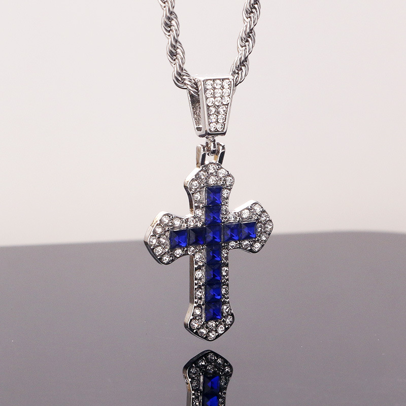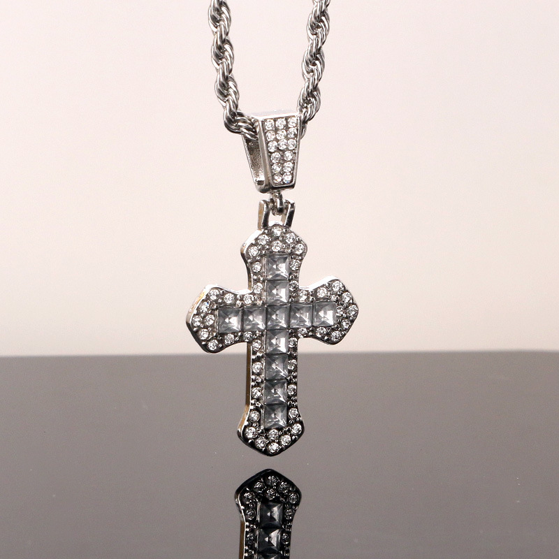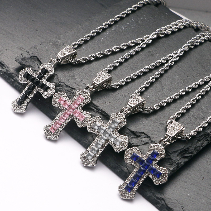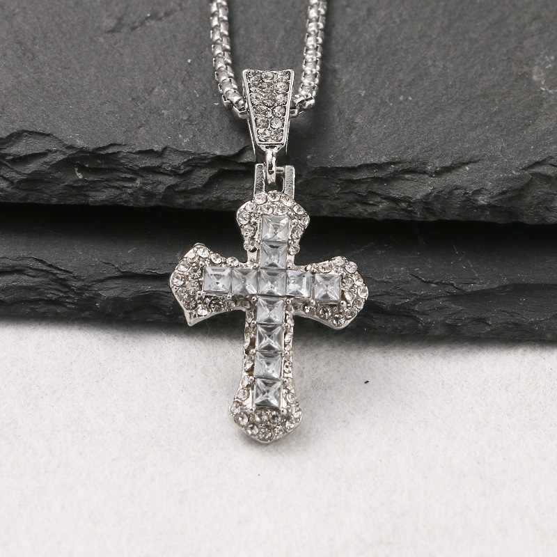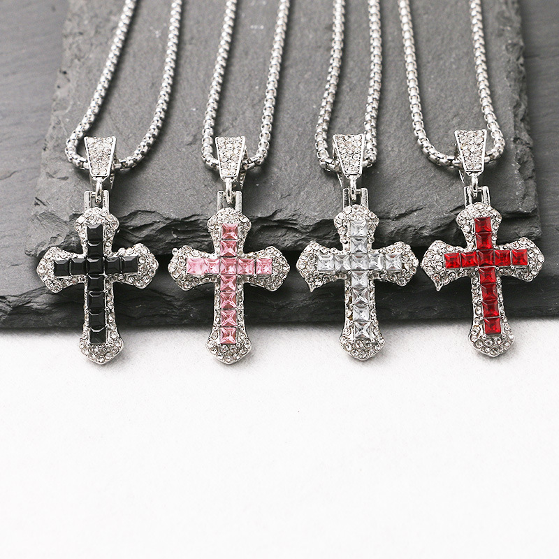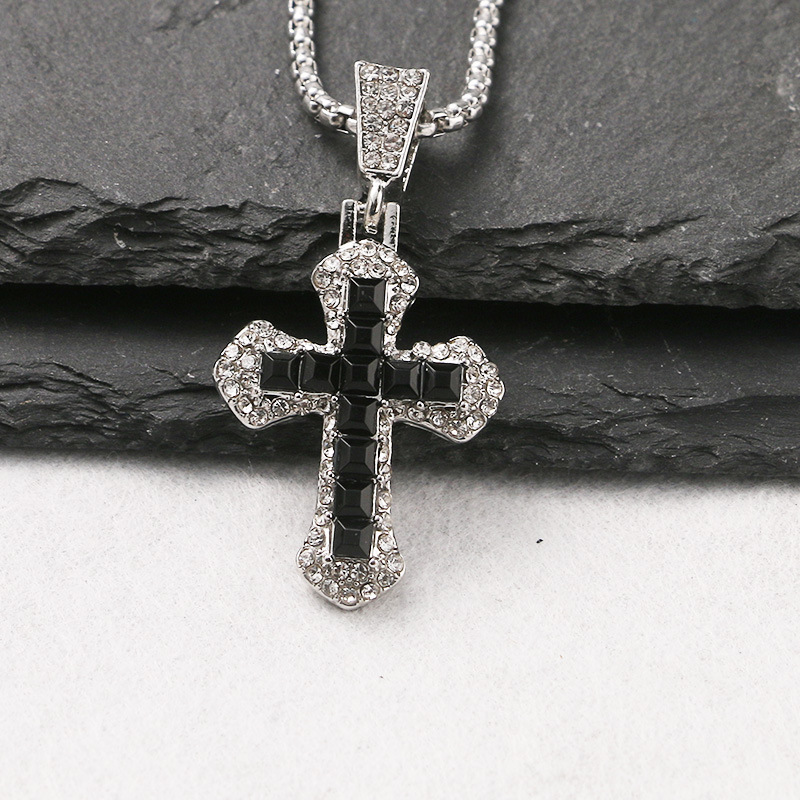 跨境欧美满钻十字架项链新款锆石吊坠嘻哈潮流个性百搭毛衣链饰品