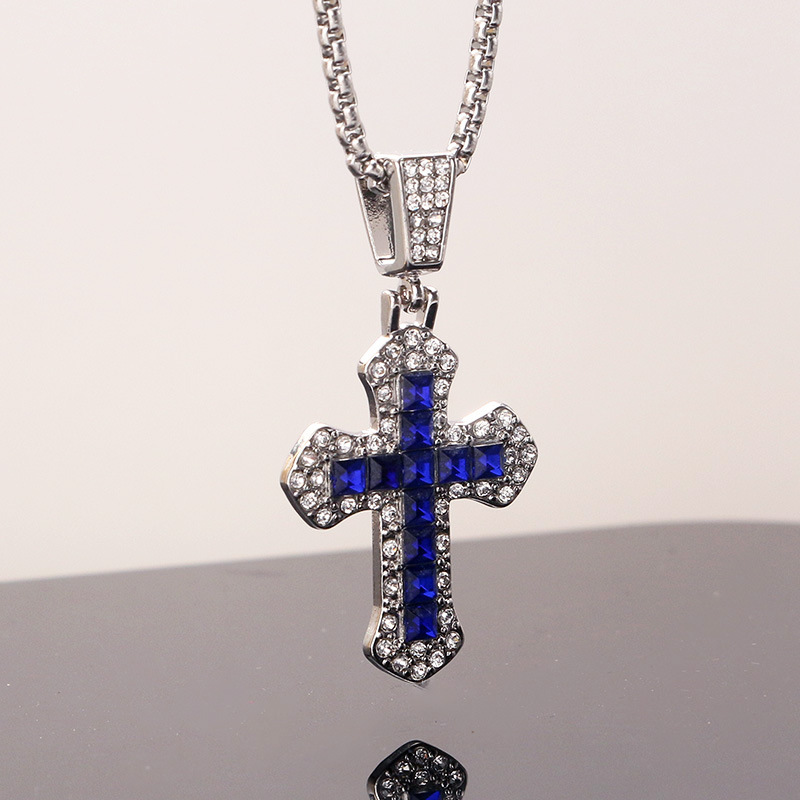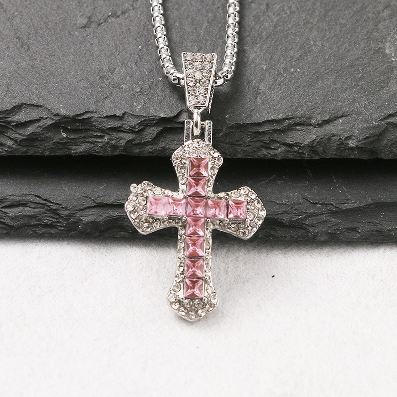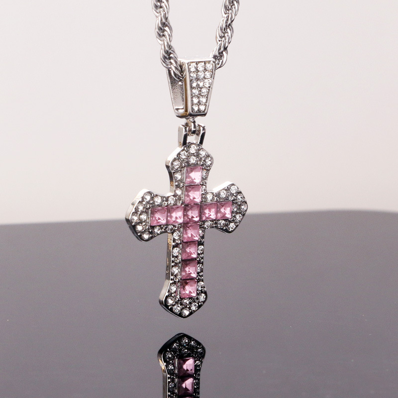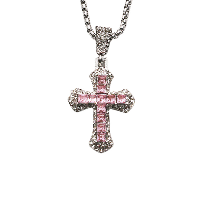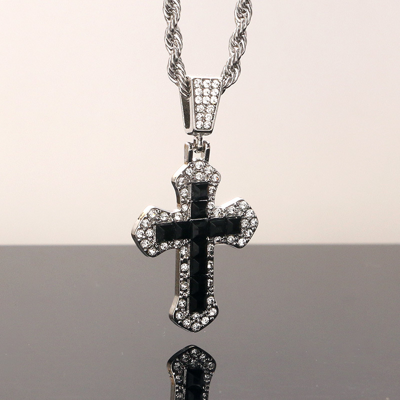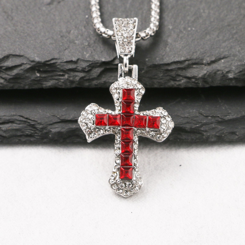 跨境欧美满钻十字架项链新款锆石吊坠嘻哈潮流个性百搭毛衣链饰品