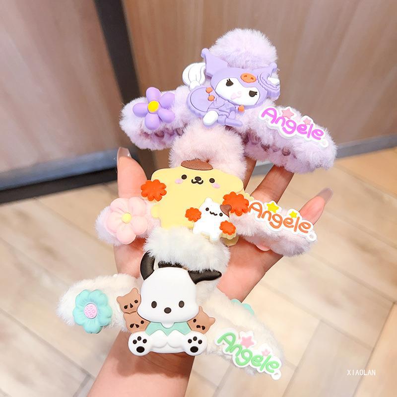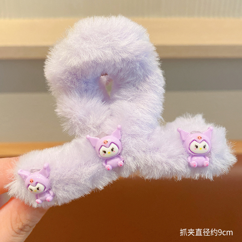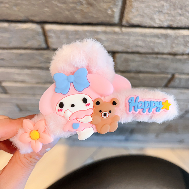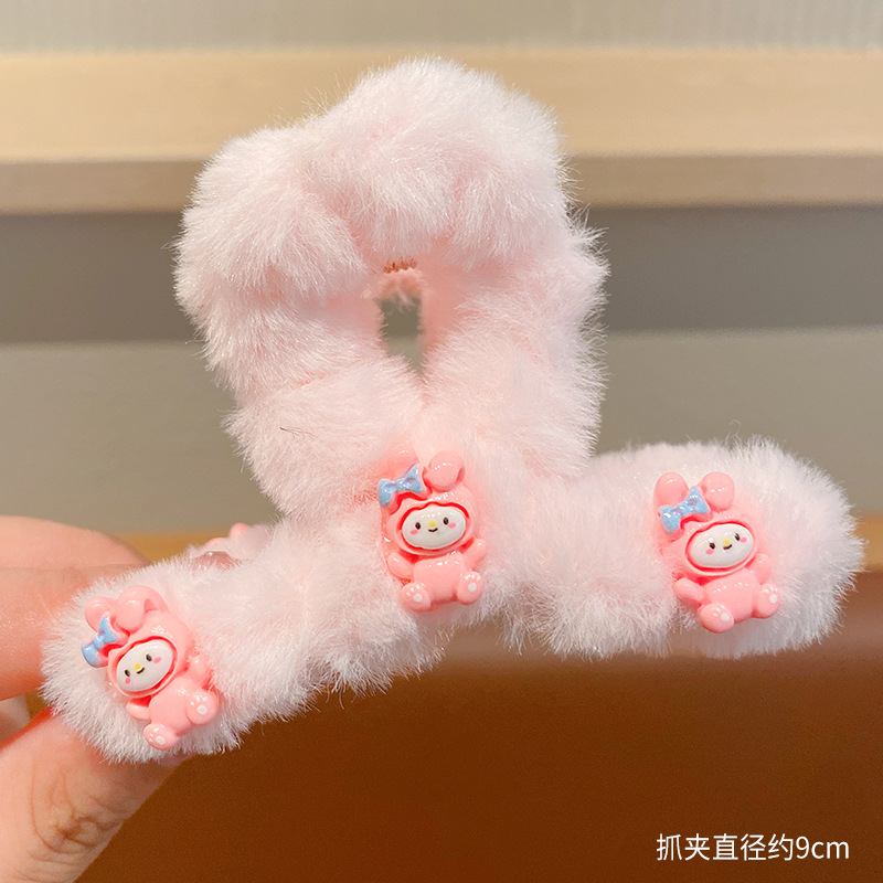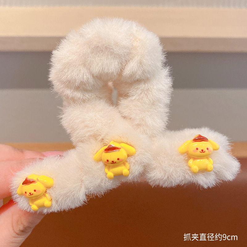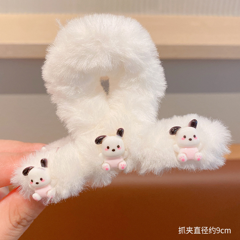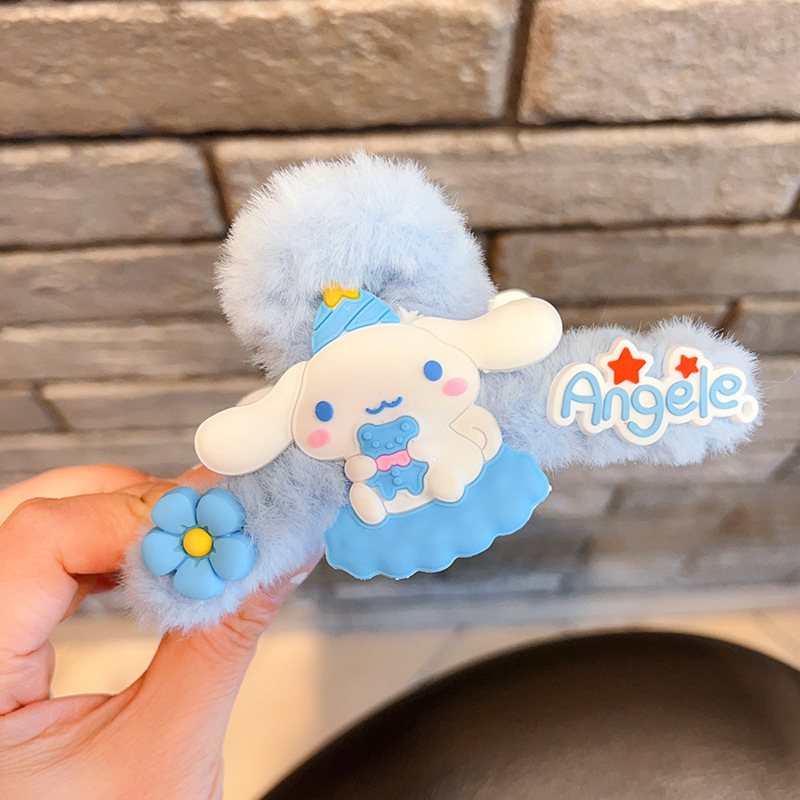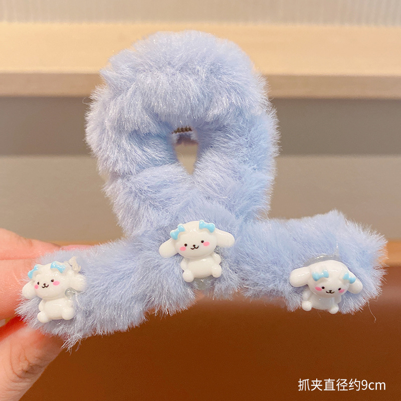 毛绒抓夹新款大号卡通鲨鱼夹玉桂狗毛绒绒发夹少女可爱发卡饰品小