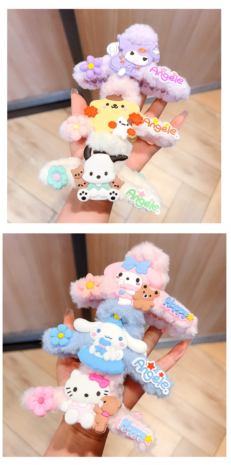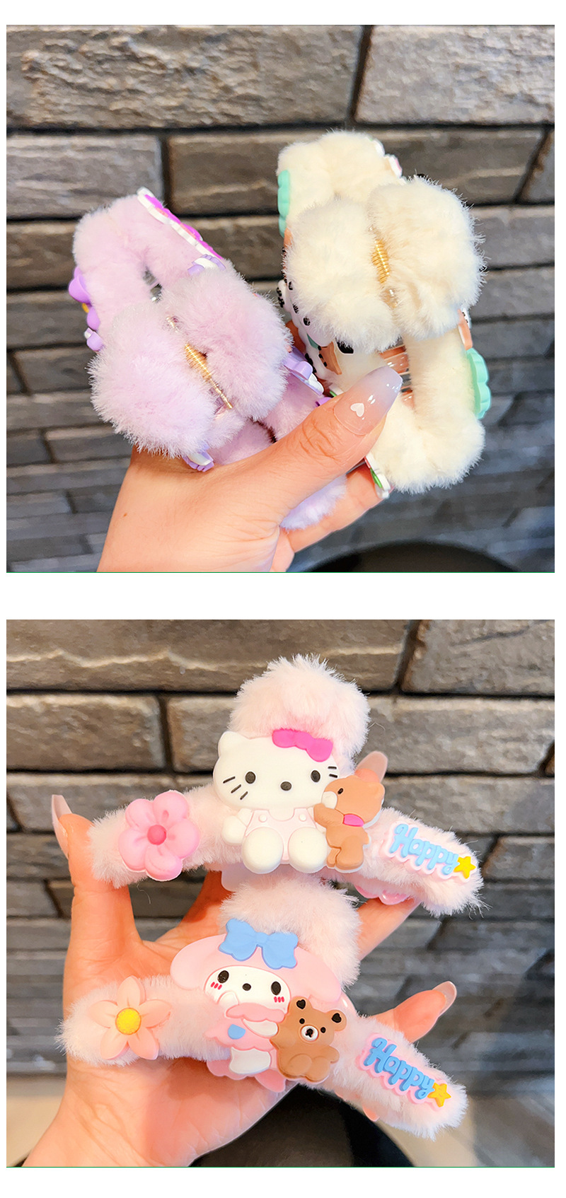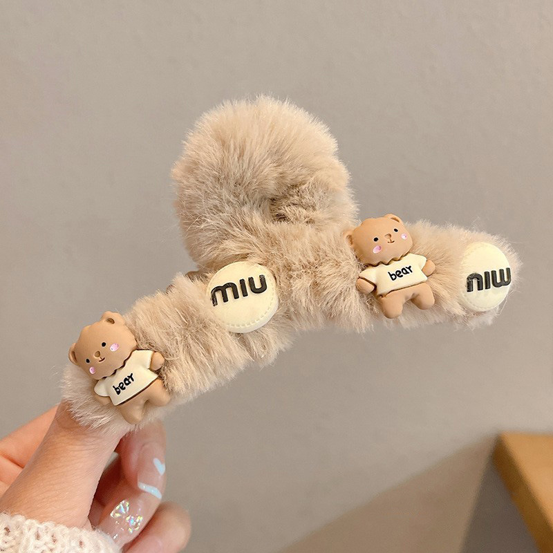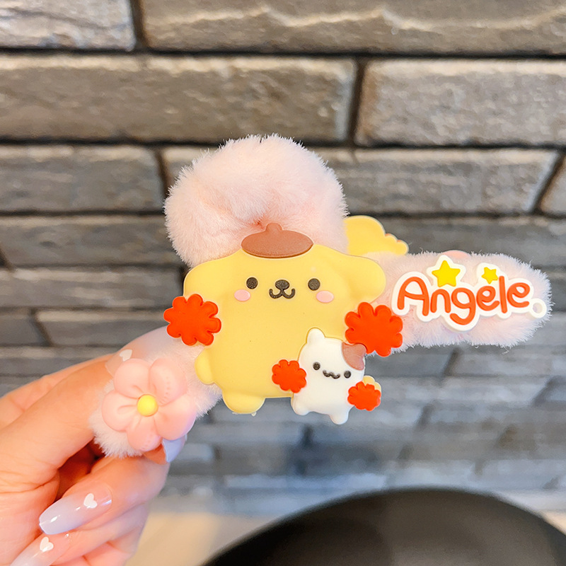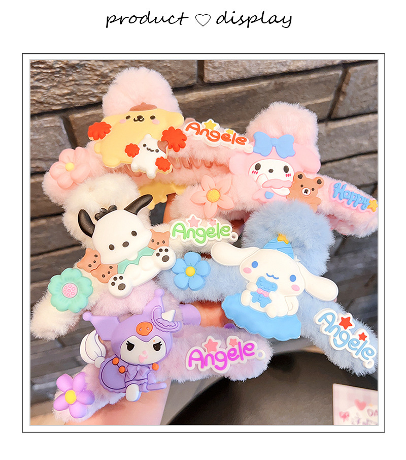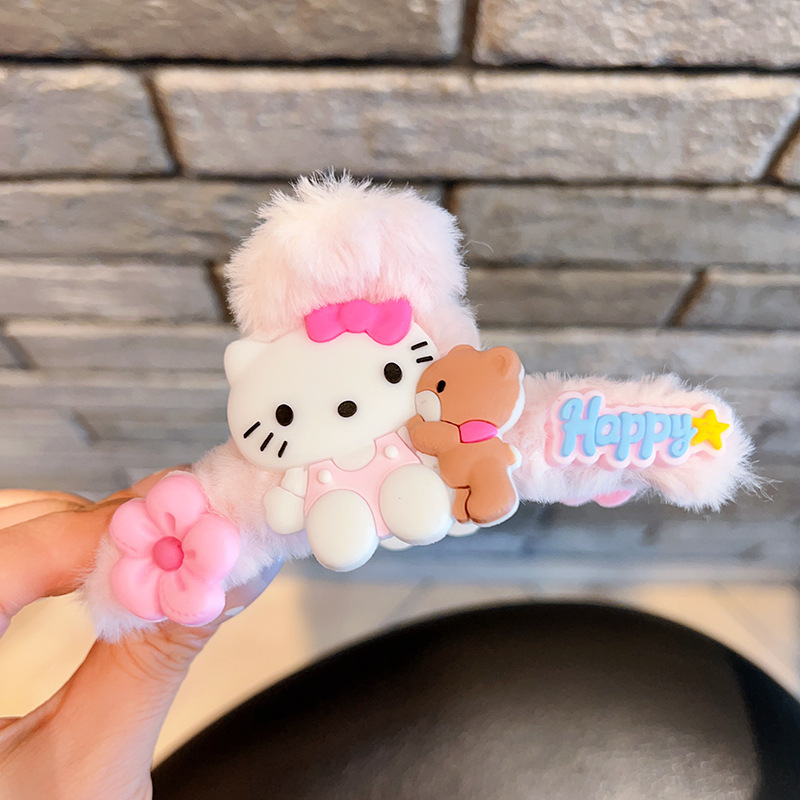 毛绒抓夹新款大号卡通鲨鱼夹玉桂狗毛绒绒发夹少女可爱发卡饰品小
